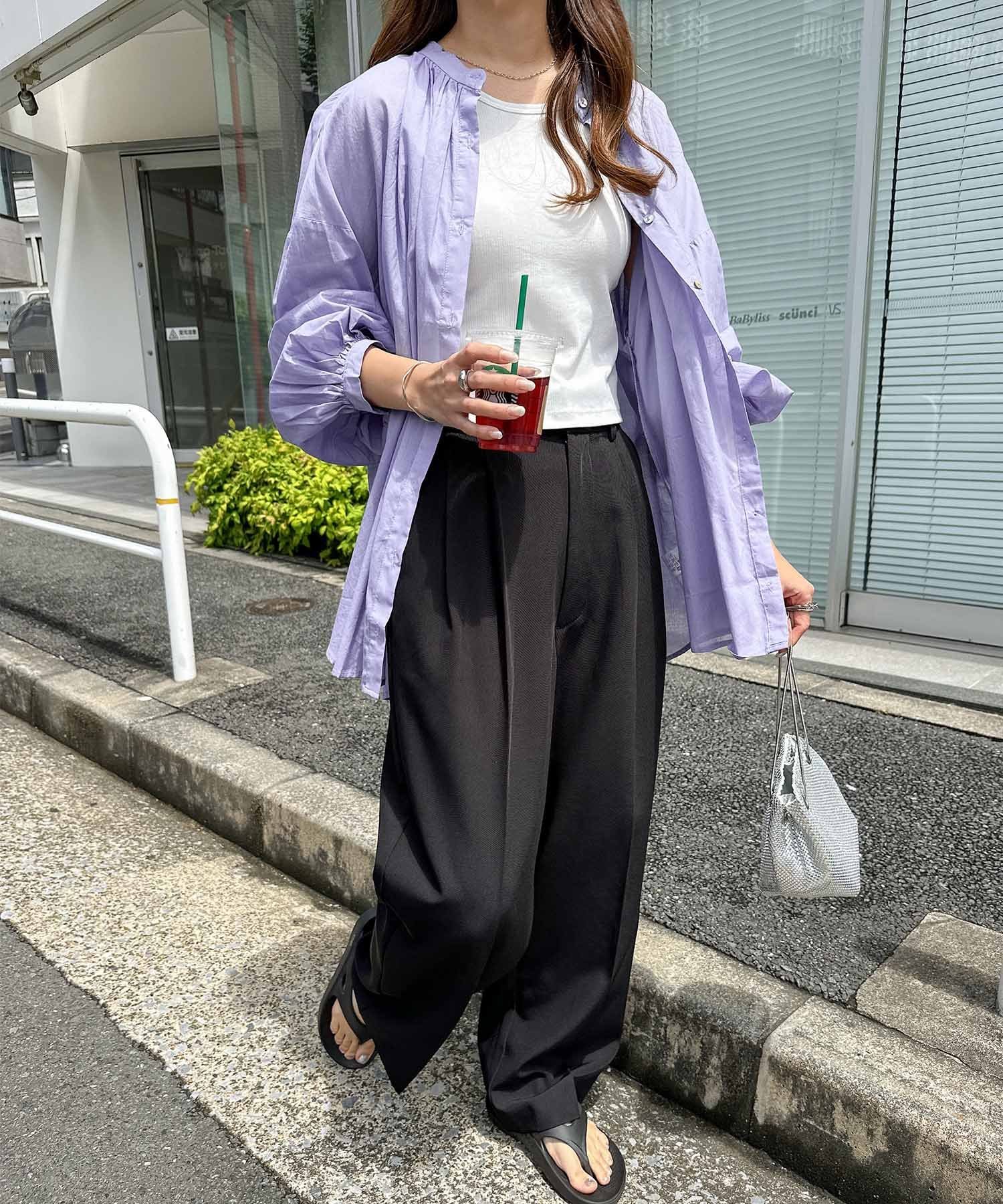 andme 薄手 コットン 長袖 バンドカラー シャツブラウス アンドミー トップス シャツ・ブラウス ホワイト グレー ネイビー パープル グリーン イエロー