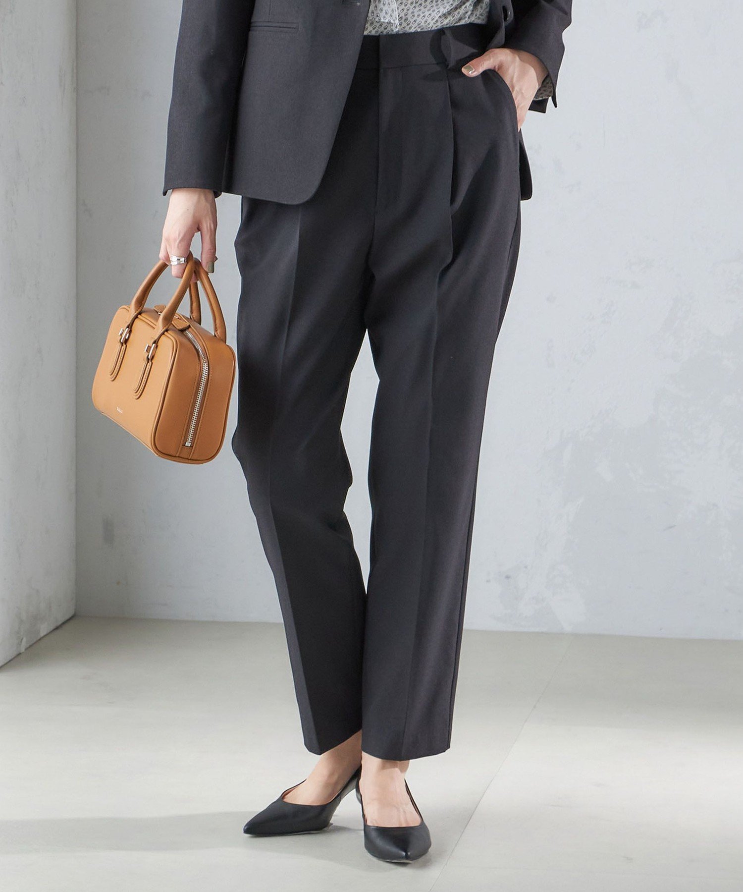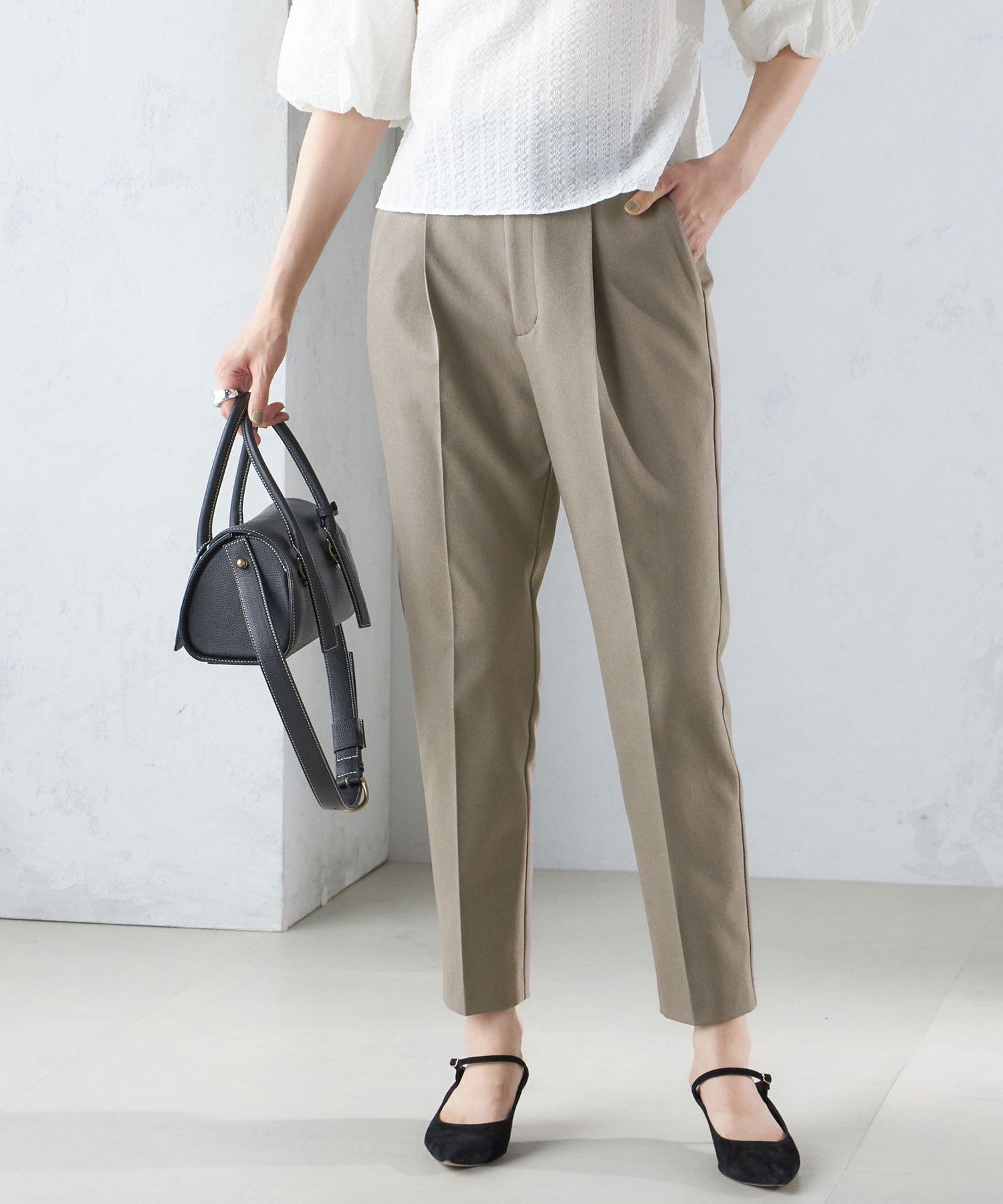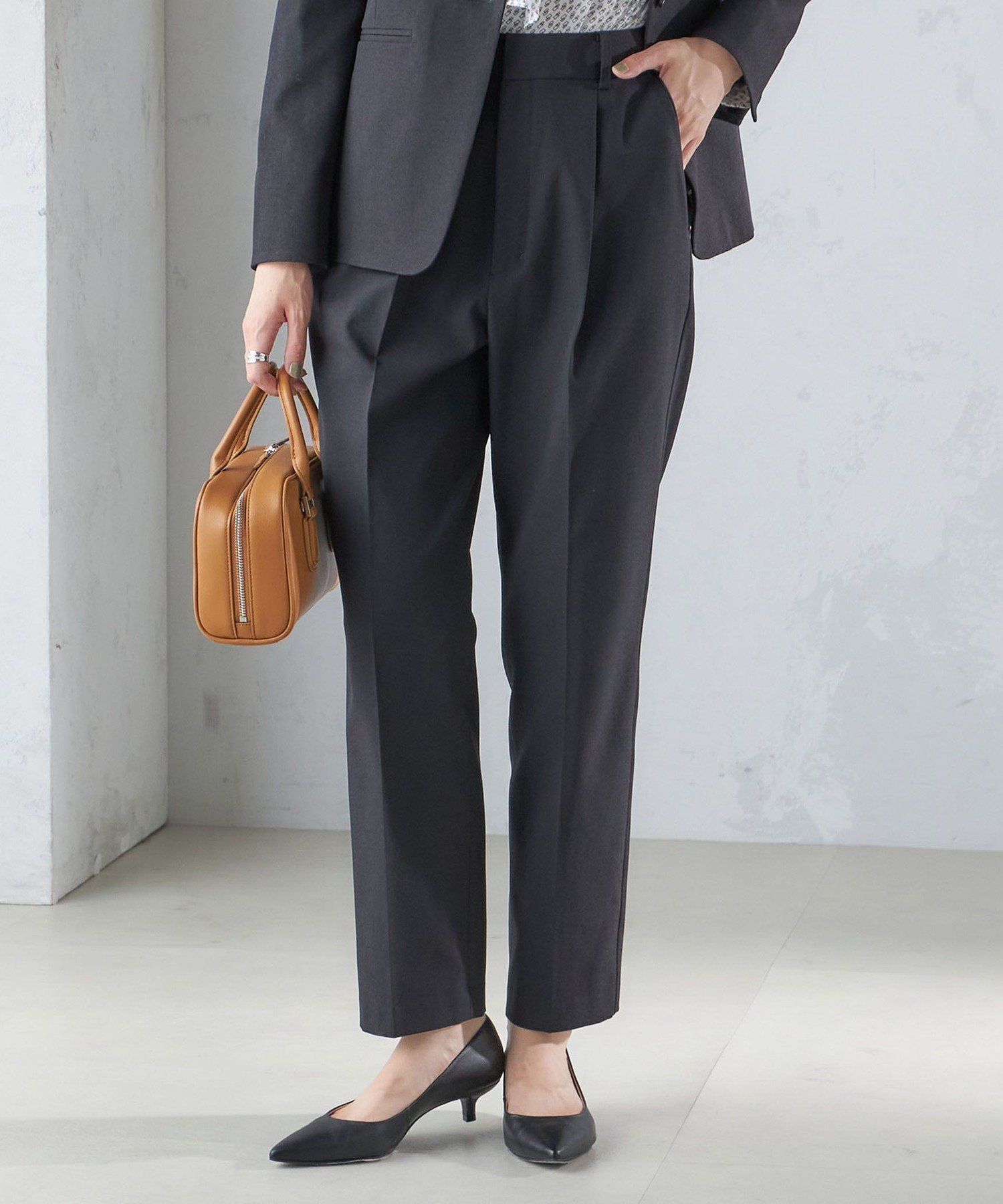 SHIPS WOMEN <手洗い可能>ツイル ストレッチ パンツ(セットアップ対応) シップス パンツ スラックス・ドレスパンツ ブラック ベージュ【送料無料】