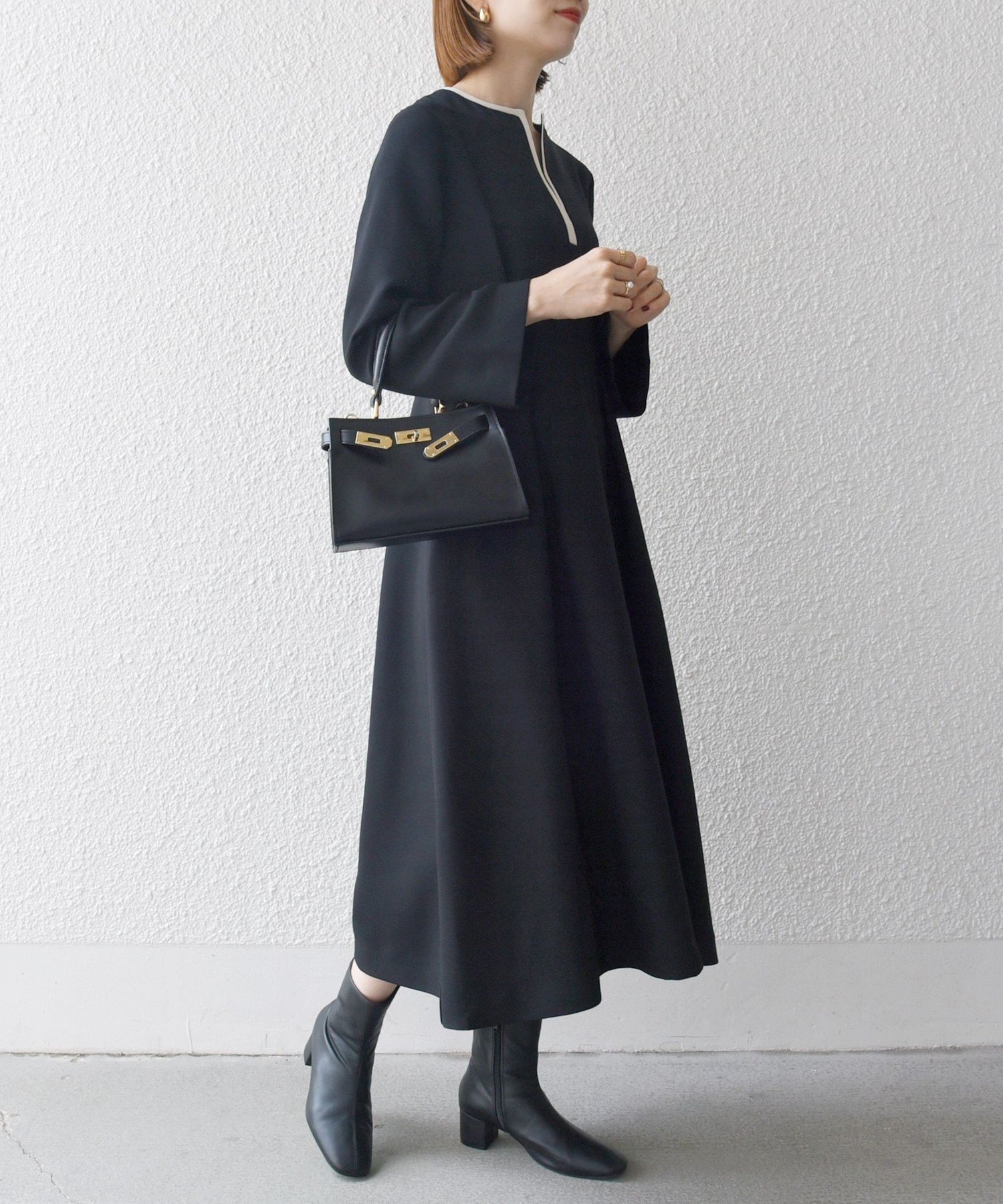 SHIPS any SHIPS any: ダブルクロス ウエスト タック Aライン ワンピース [NAVY BLUE] シップス ワンピース・ドレス ワンピース ブラック ブラウン【送料無料】