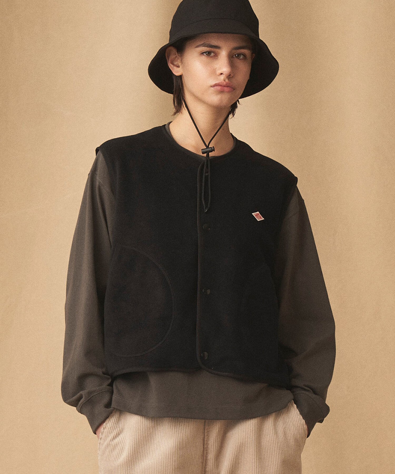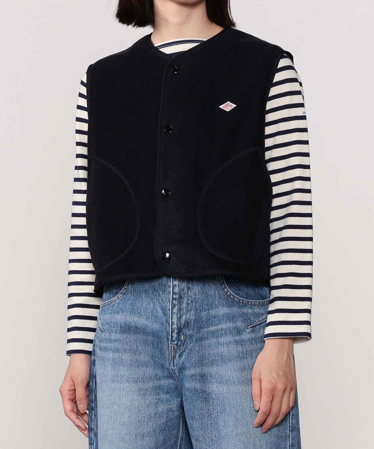 Bshop DANTON | フリース カラーレスベスト WOMEN ビショップ トップス その他のトップス ホワイト ブラック【送料無料】