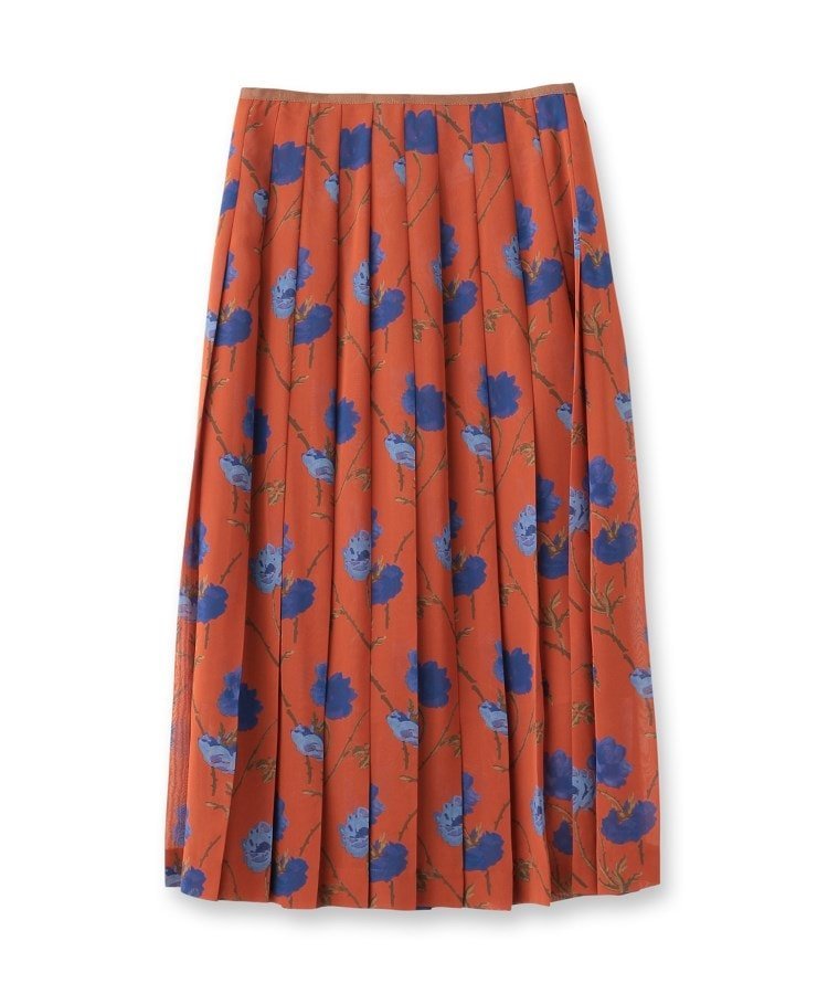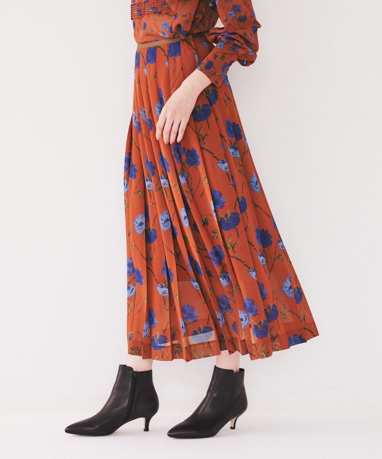 【SALE/70%OFF】UNTITLED 【セットアップ可能/洗える/柄スカート】フラワーシフォンプリーツスカート アンタイトル スカート ロング・マキシスカート オレンジ ブラック【送料無料】
