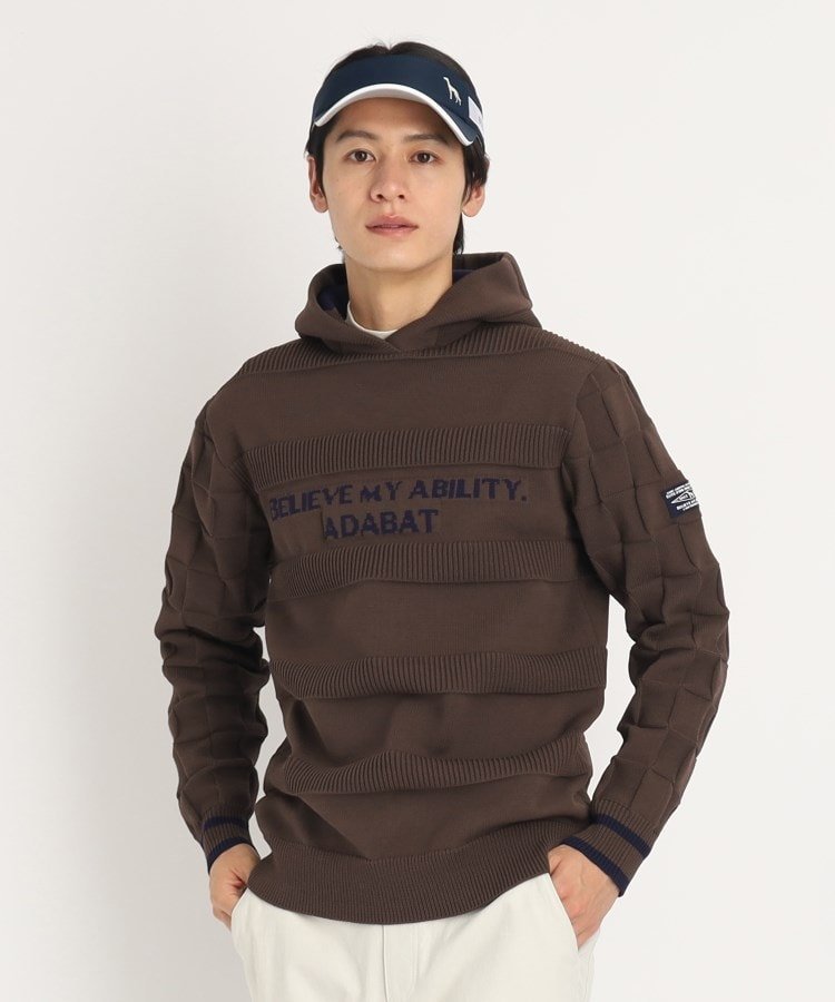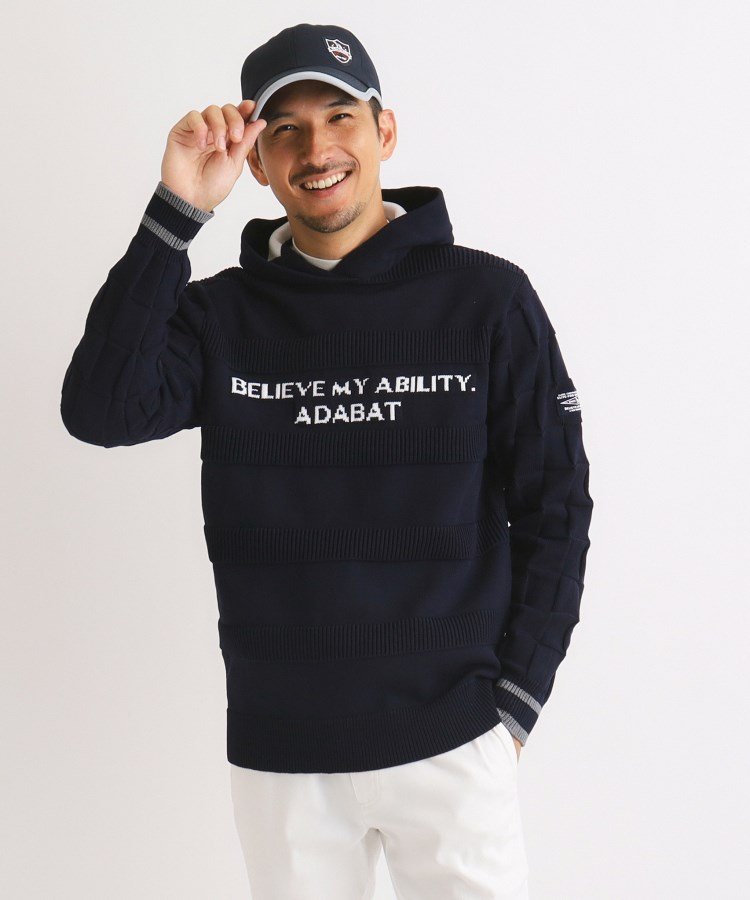 adabat ロゴデザイン 長袖フーディ アダバット トップス ニット グレー ブラウン ネイビー【送料無料】
