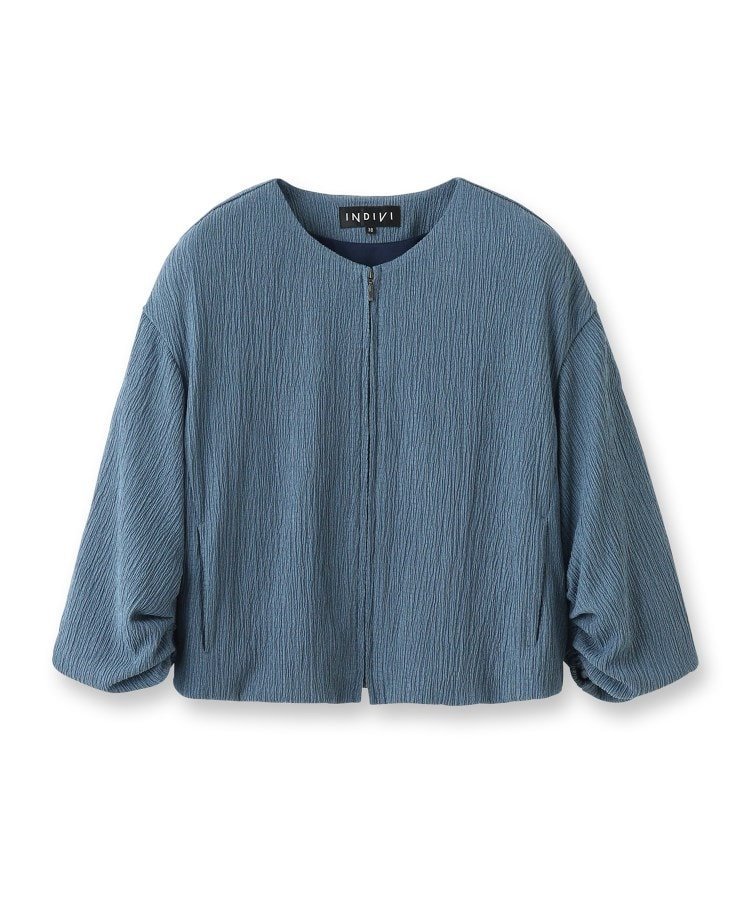 【SALE/30%OFF】INDIVI 【洗える/UVケア/SETUP可能】バルーンスリーブブルゾン インディヴィ ジャケット・アウター ブルゾン・ジャンパー ブラック ブルー ホワイト【送料無料】