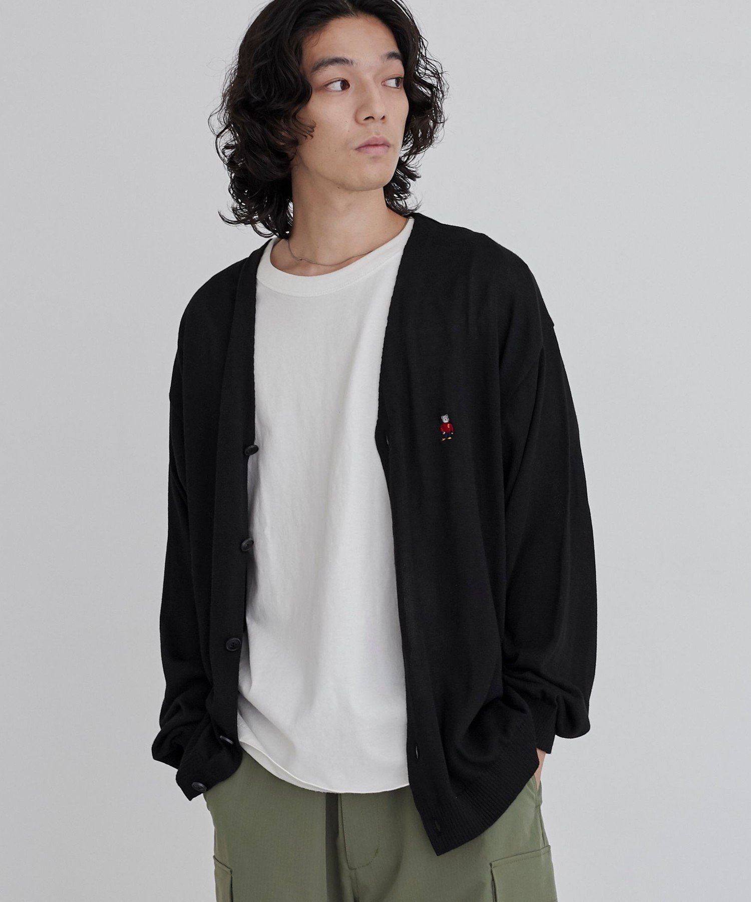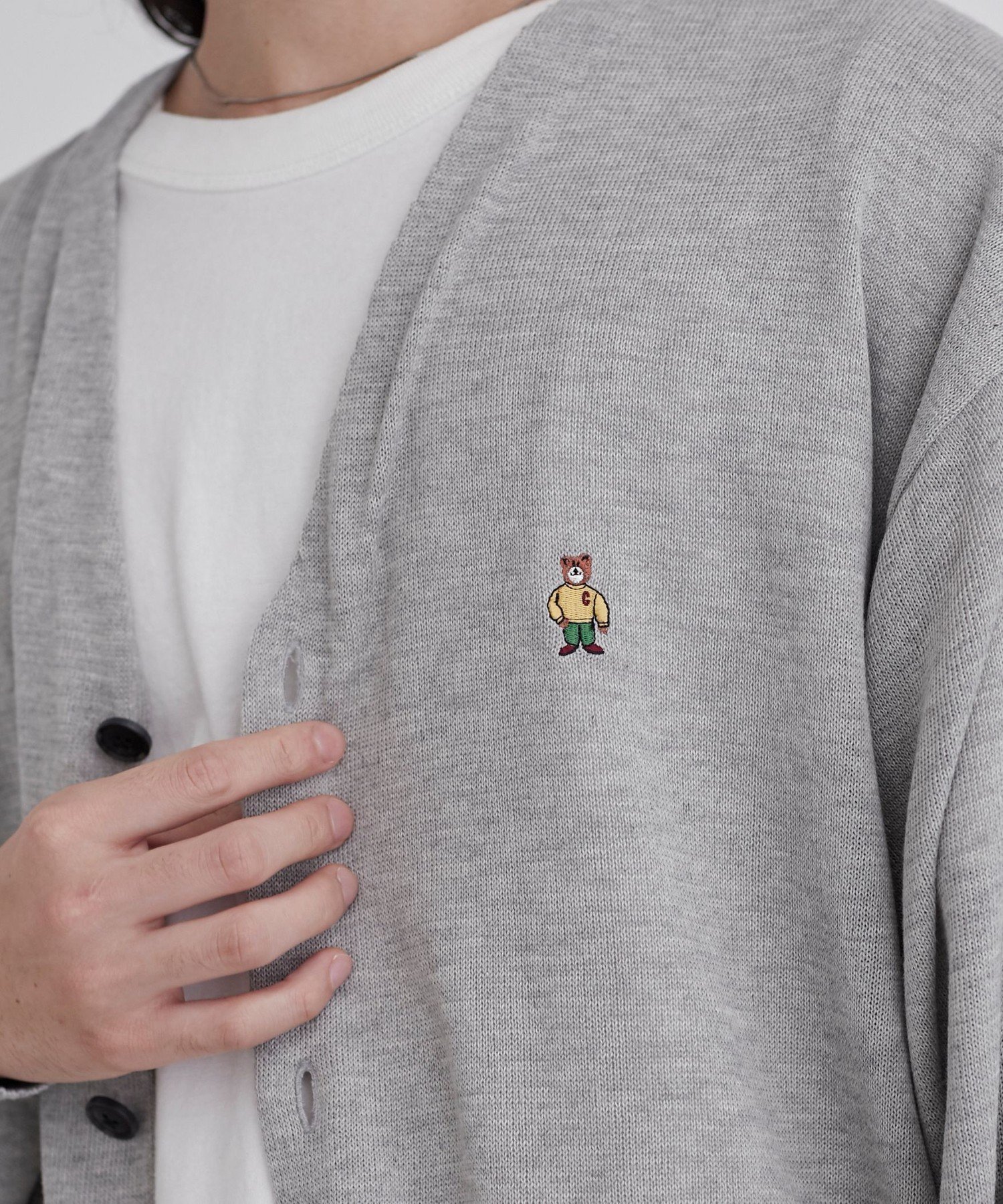 coen ワンポイントベア刺繍ニットカーディガン コーエン トップス カーディガン ブラック グレー【送料無料】