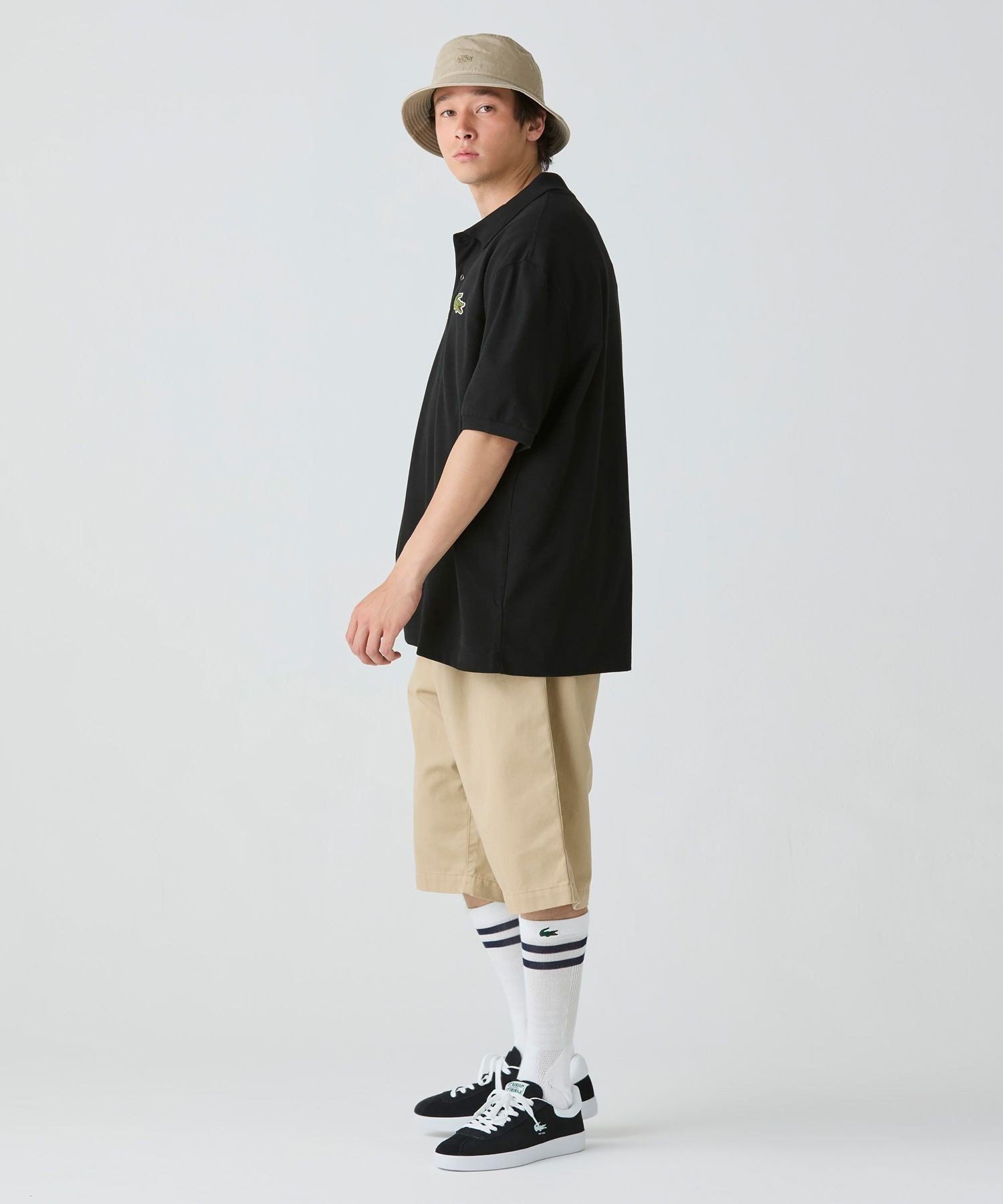 LACOSTE L.12.12ルーズフィット ドロップショルダー 鹿の子半袖ポロシャツ ラコステ トップス ポロシャツ ブラック ホワイト カーキ ブルー【送料無料】
