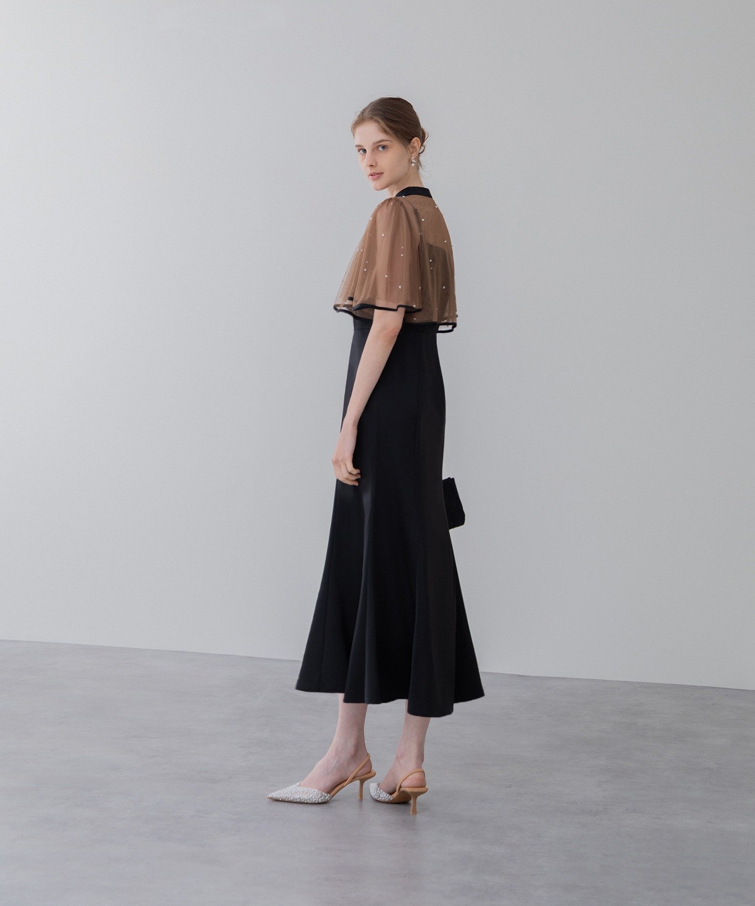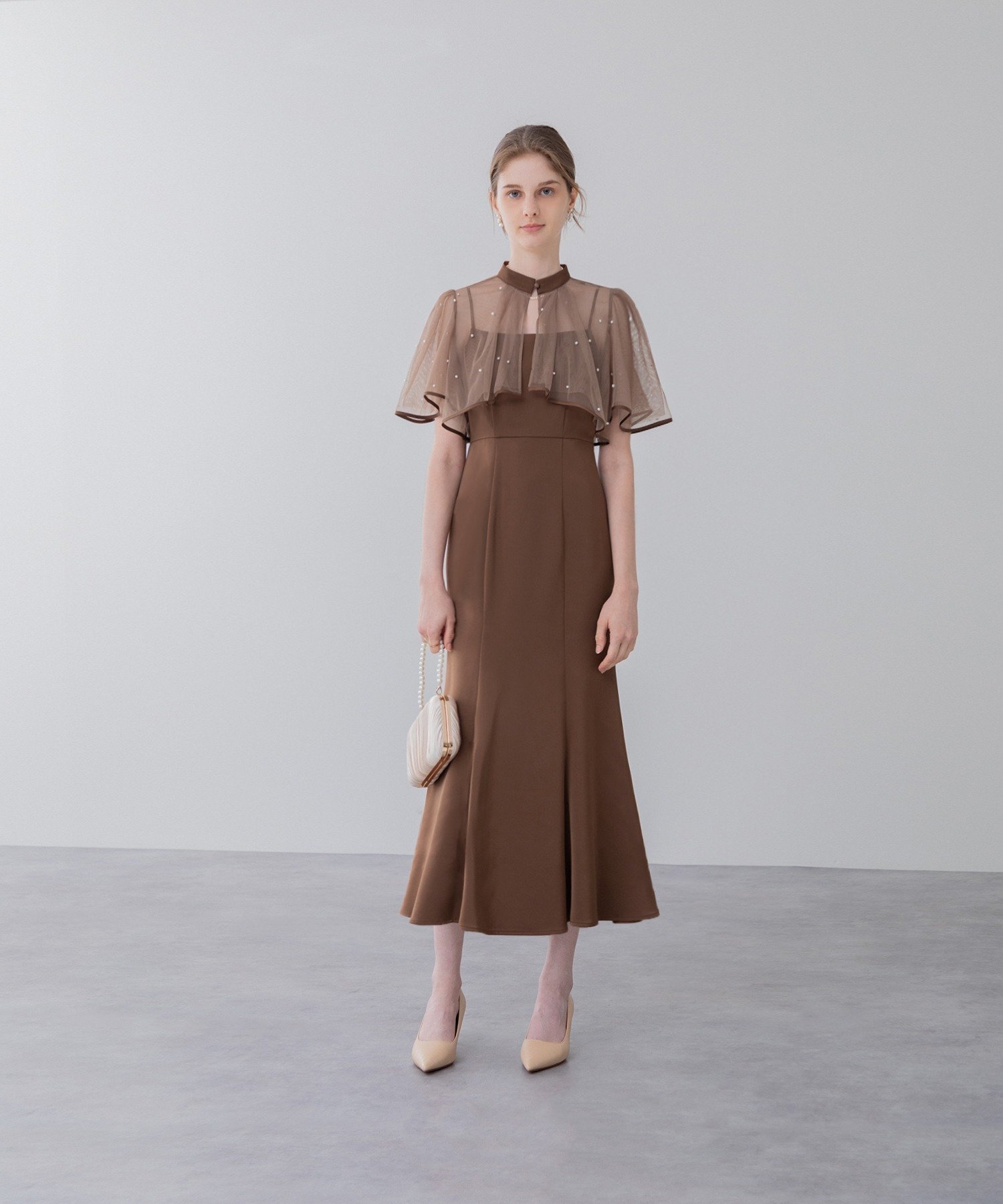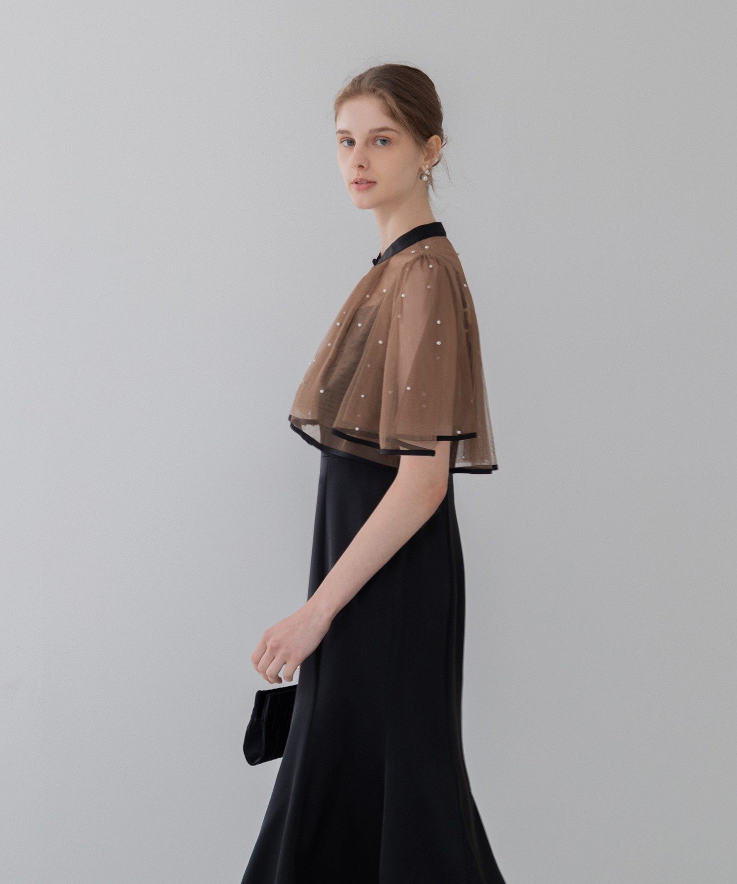 Leja ストーンパイピングボレロ付き2wayマーメイドフレアロングドレス レジャ ワンピース・ドレス ドレス ブラック ブルー ブラウン【送料無料】