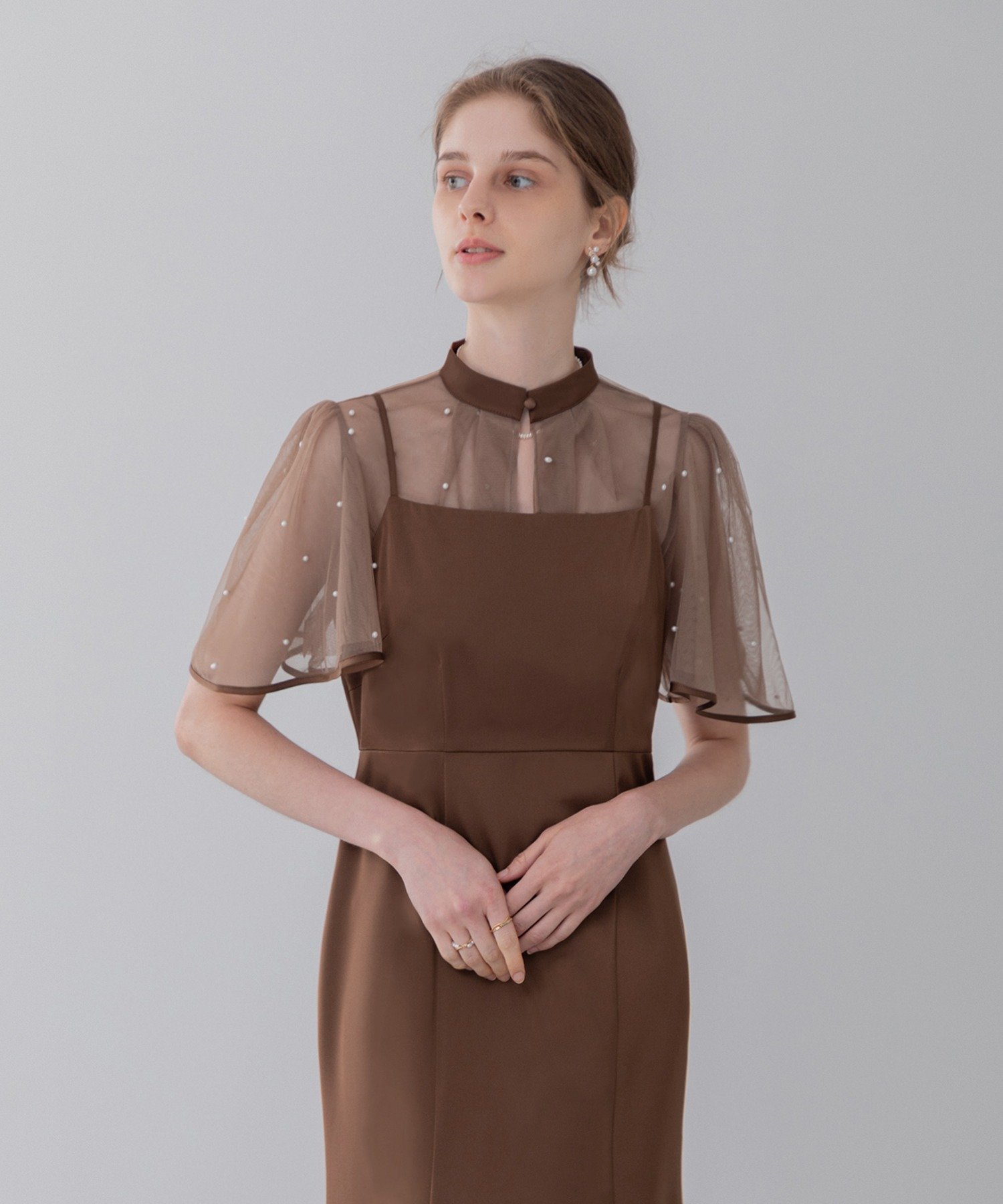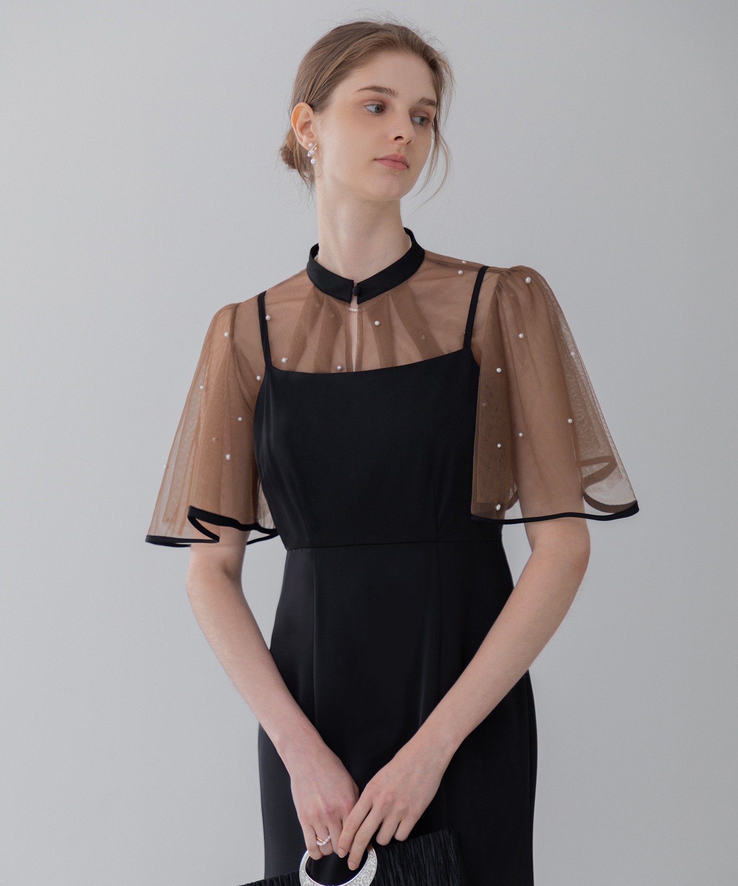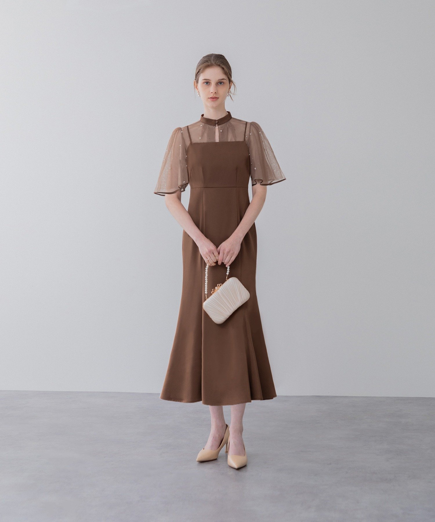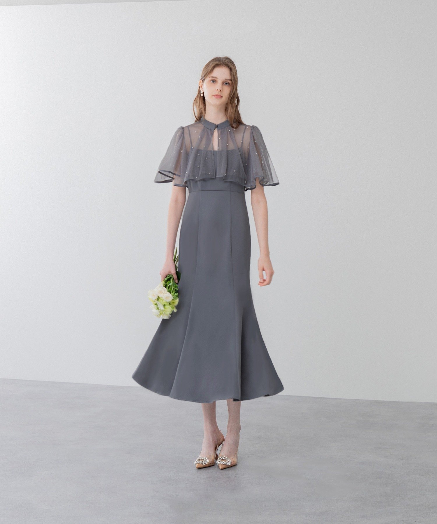 Leja ストーンパイピングボレロ付き2wayマーメイドフレアロングドレス レジャ ワンピース・ドレス ドレス ブラック ブルー ブラウン【送料無料】