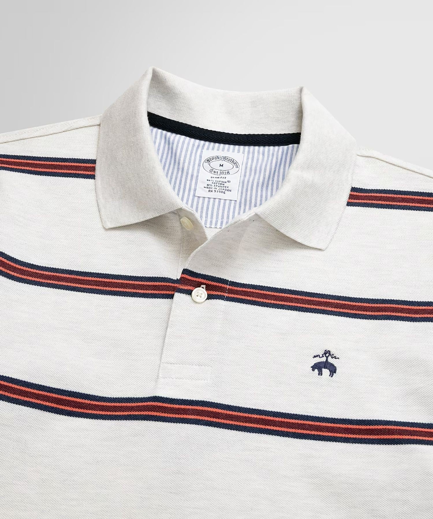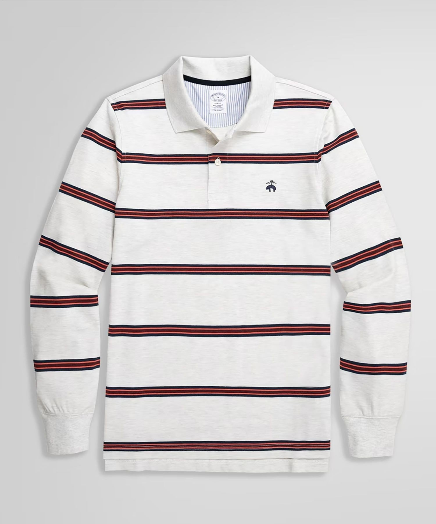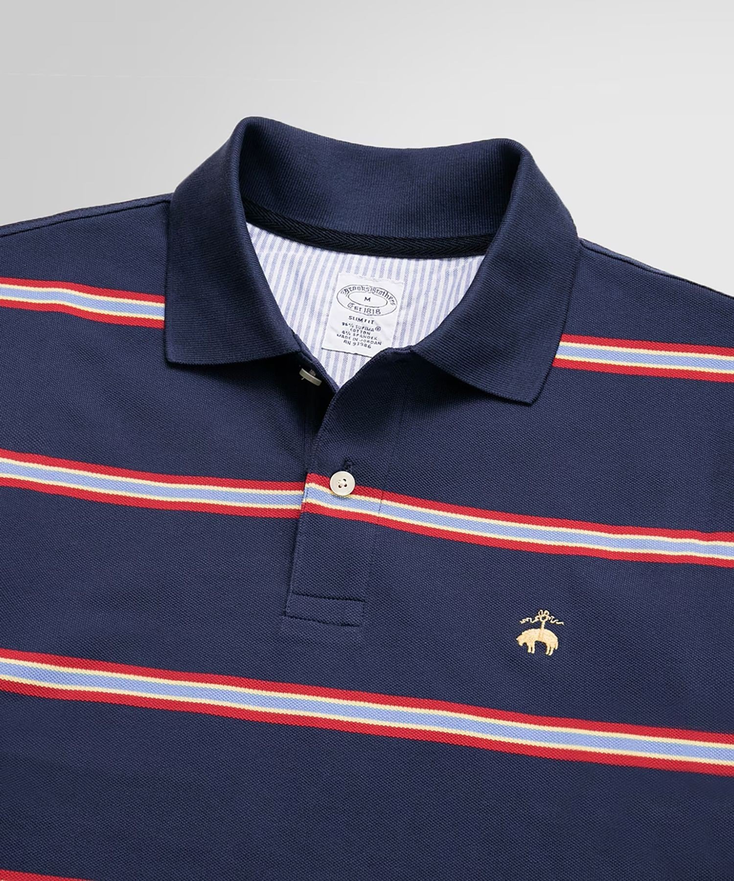 BROOKS BROTHERS スーピマコットン ストレッチピケ GFロゴ マルチストライプ ロングスリーブポロシャツ Slim Fit ブルックス ブラザーズ トップス ポロシャツ ブルー ホワイト【送料無料】