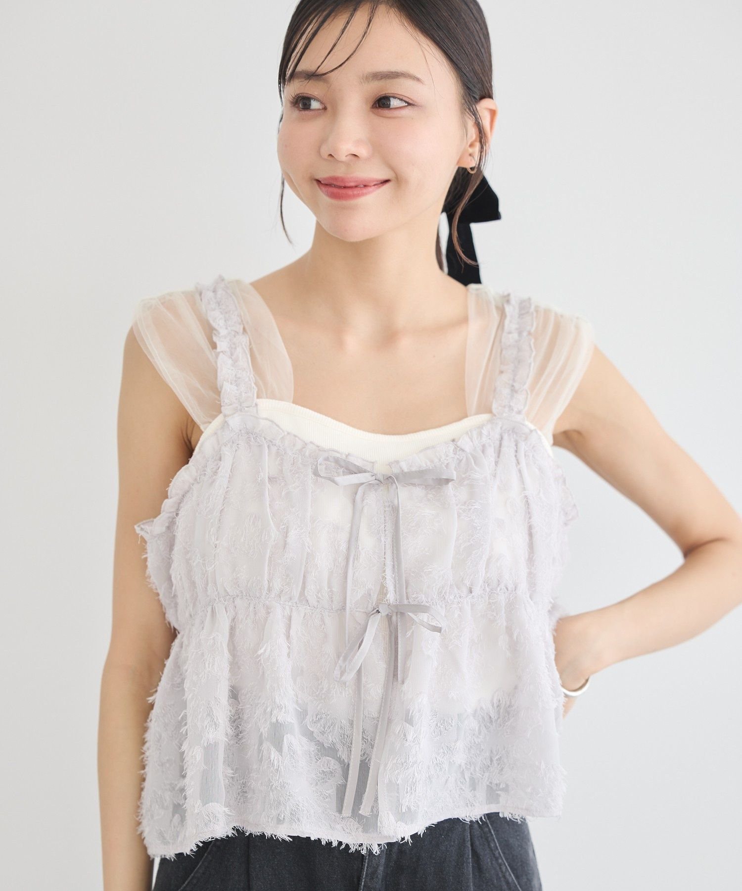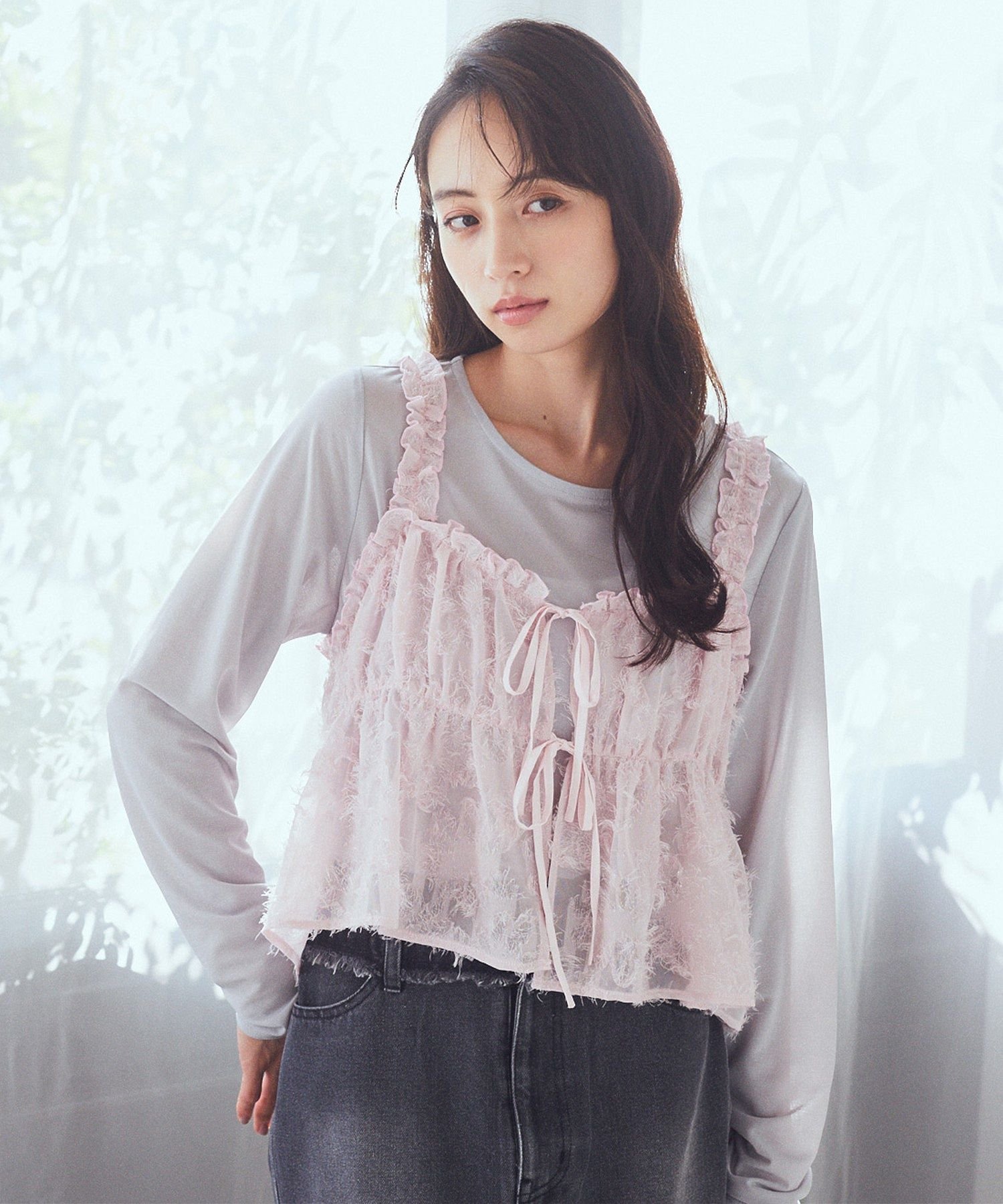 【SALE/20%OFF】earth music&ecology フラワージャガードキャミビスチェ アースミュージック&エコロジー トップス ベスト・ジレ グレー ピンク