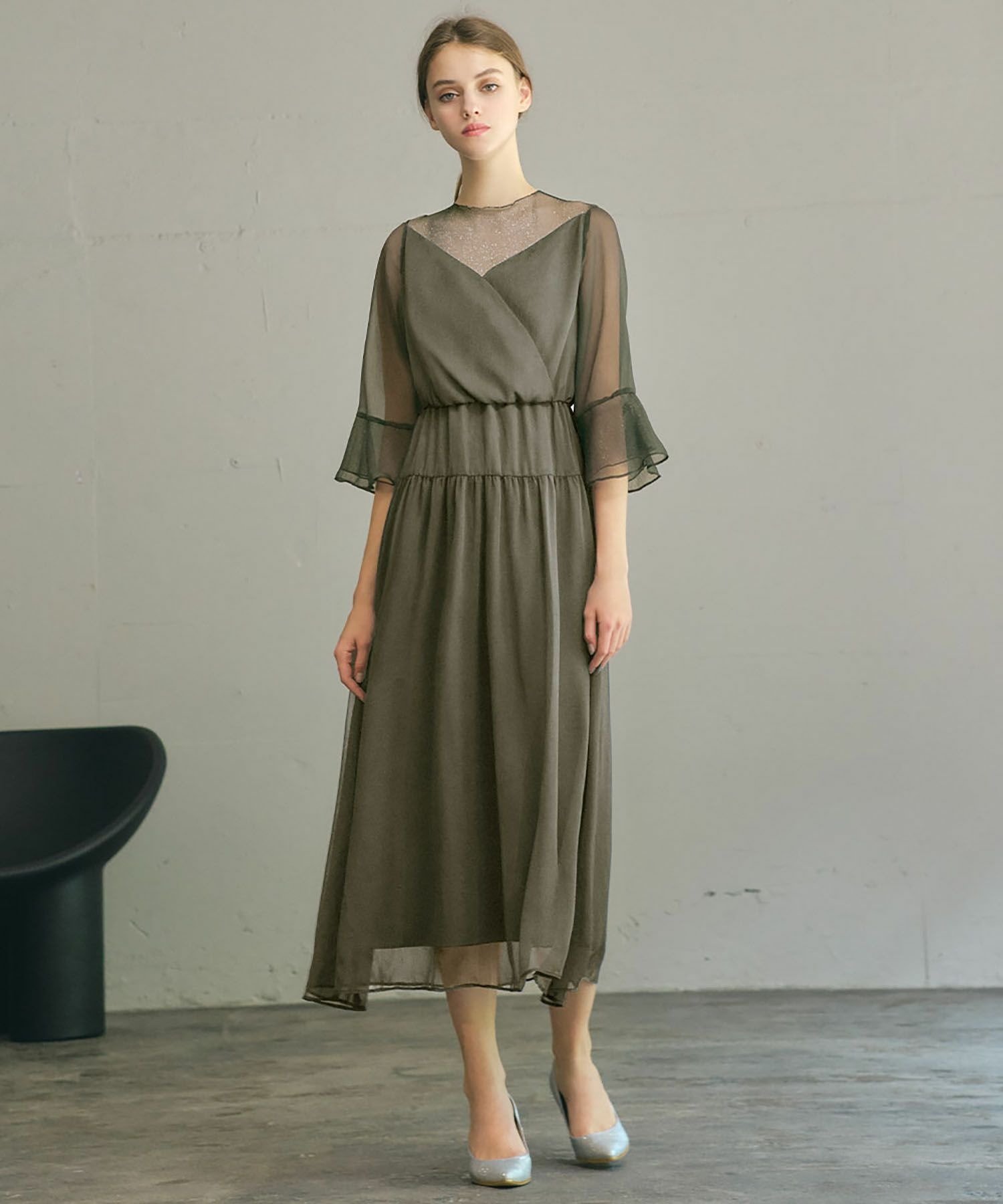 GIRL シフォン&ラメチュールフレアロング丈 結婚式 ワンピース パーティードレス ガール ワンピース・ドレス ドレス ブラック グレー カーキ ベージュ【送料無料】