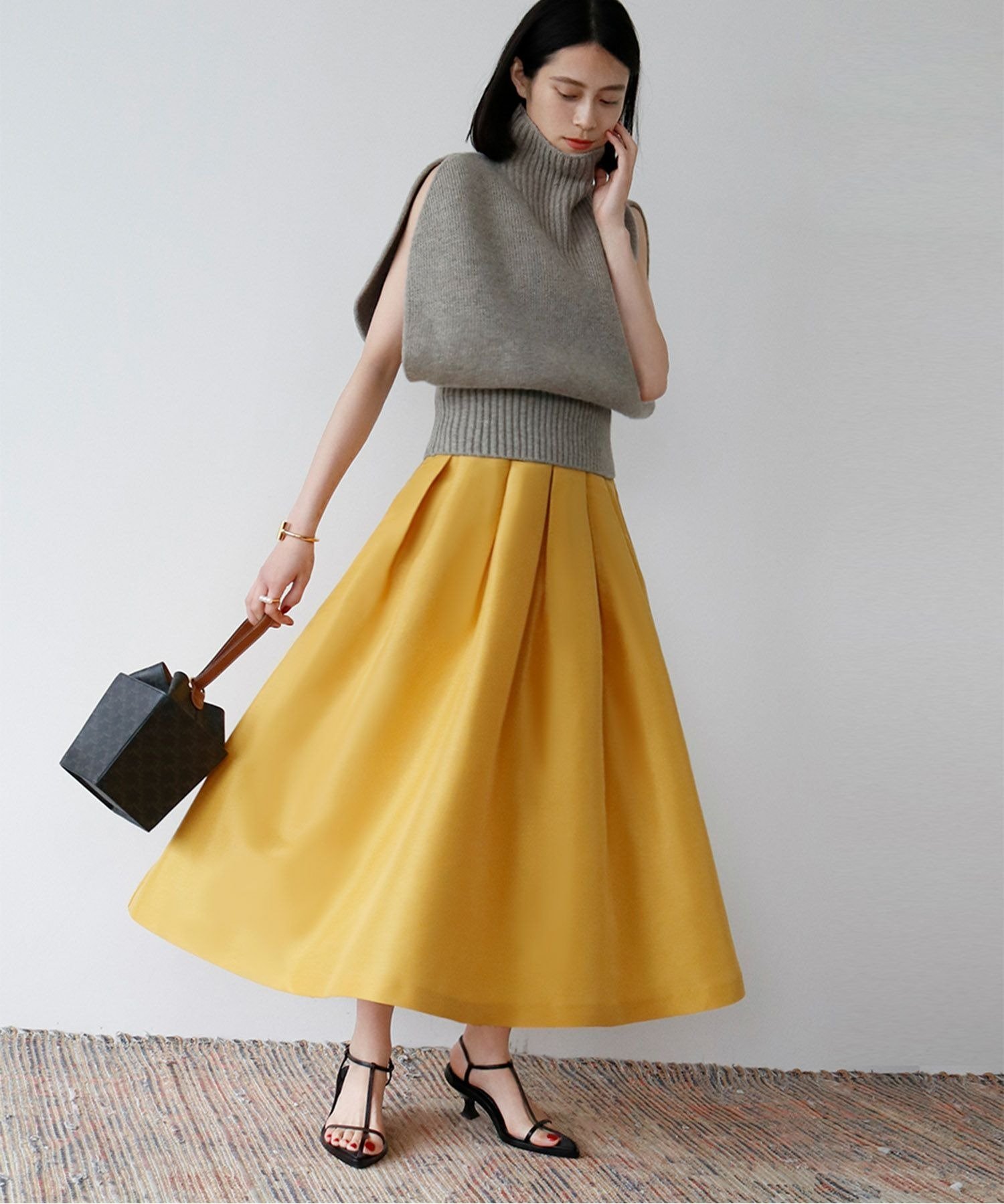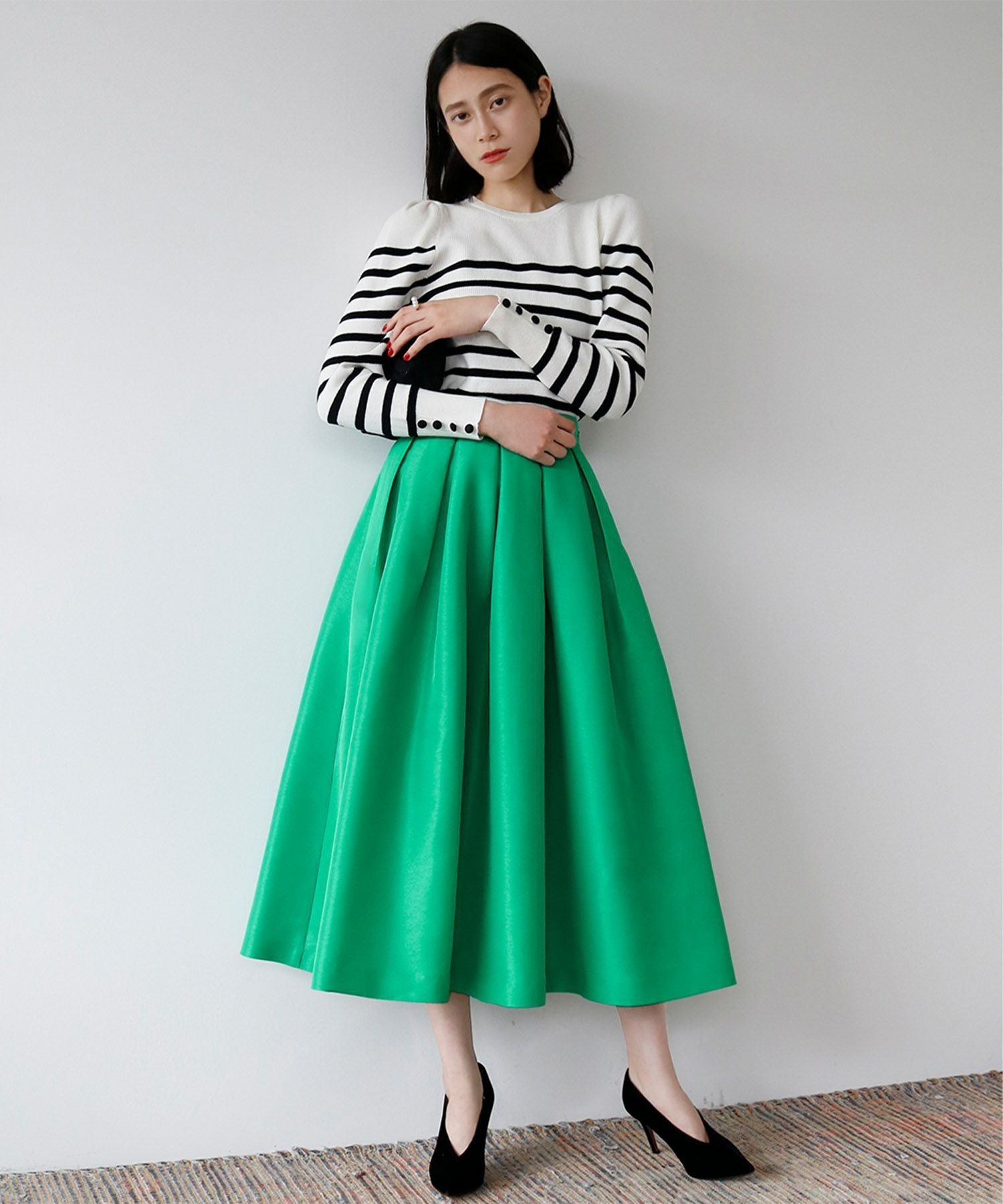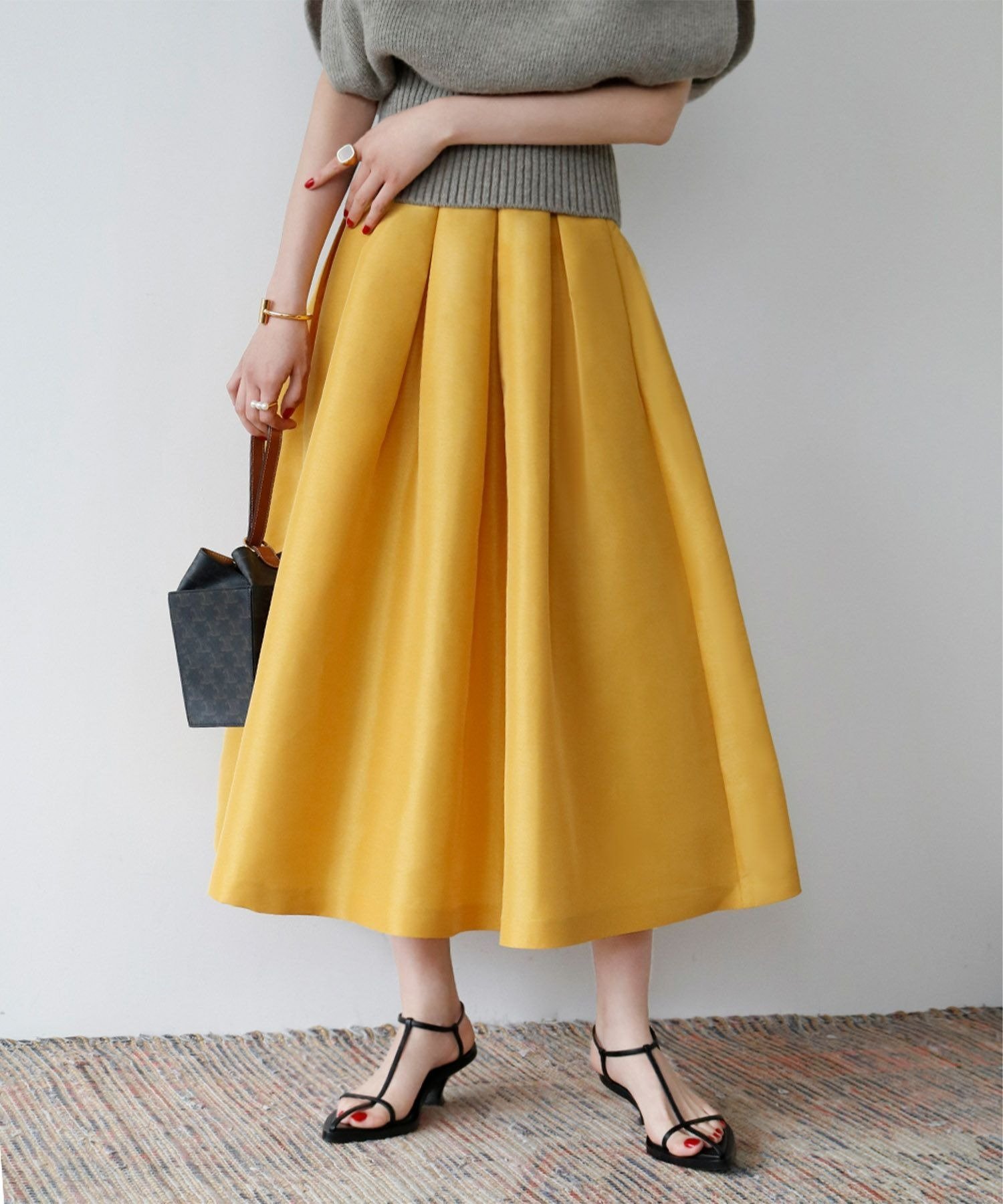 ELFRANK グログランボックスタックフレアロングスカート ガール スカート ロング・マキシスカート ブラック ホワイト イエロー ベージュ レッド【送料無料】