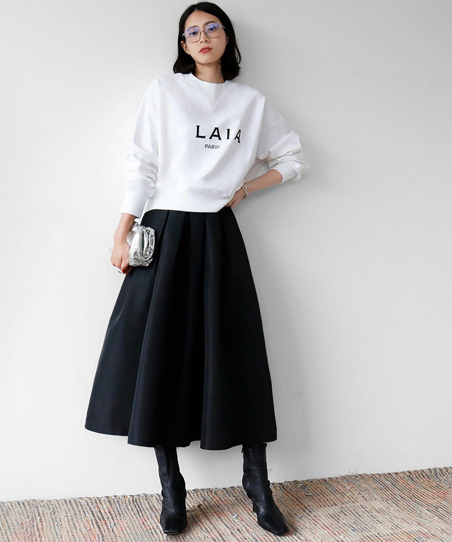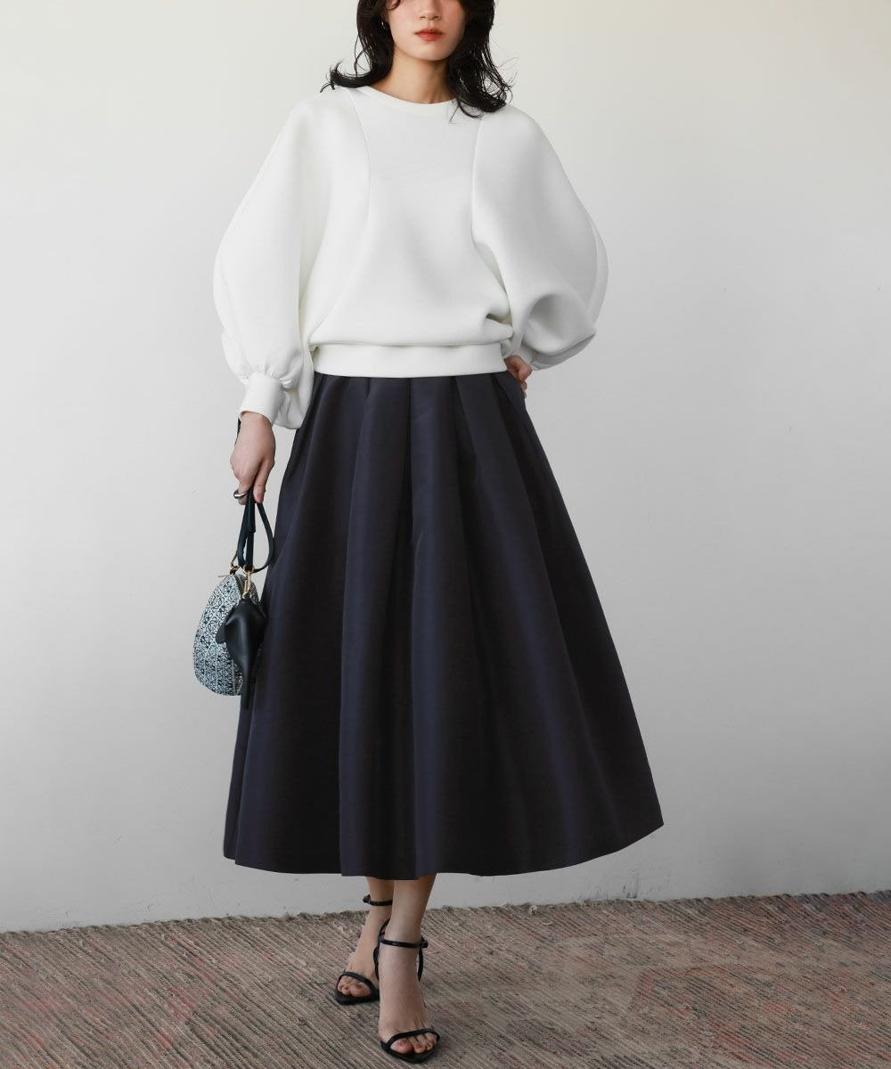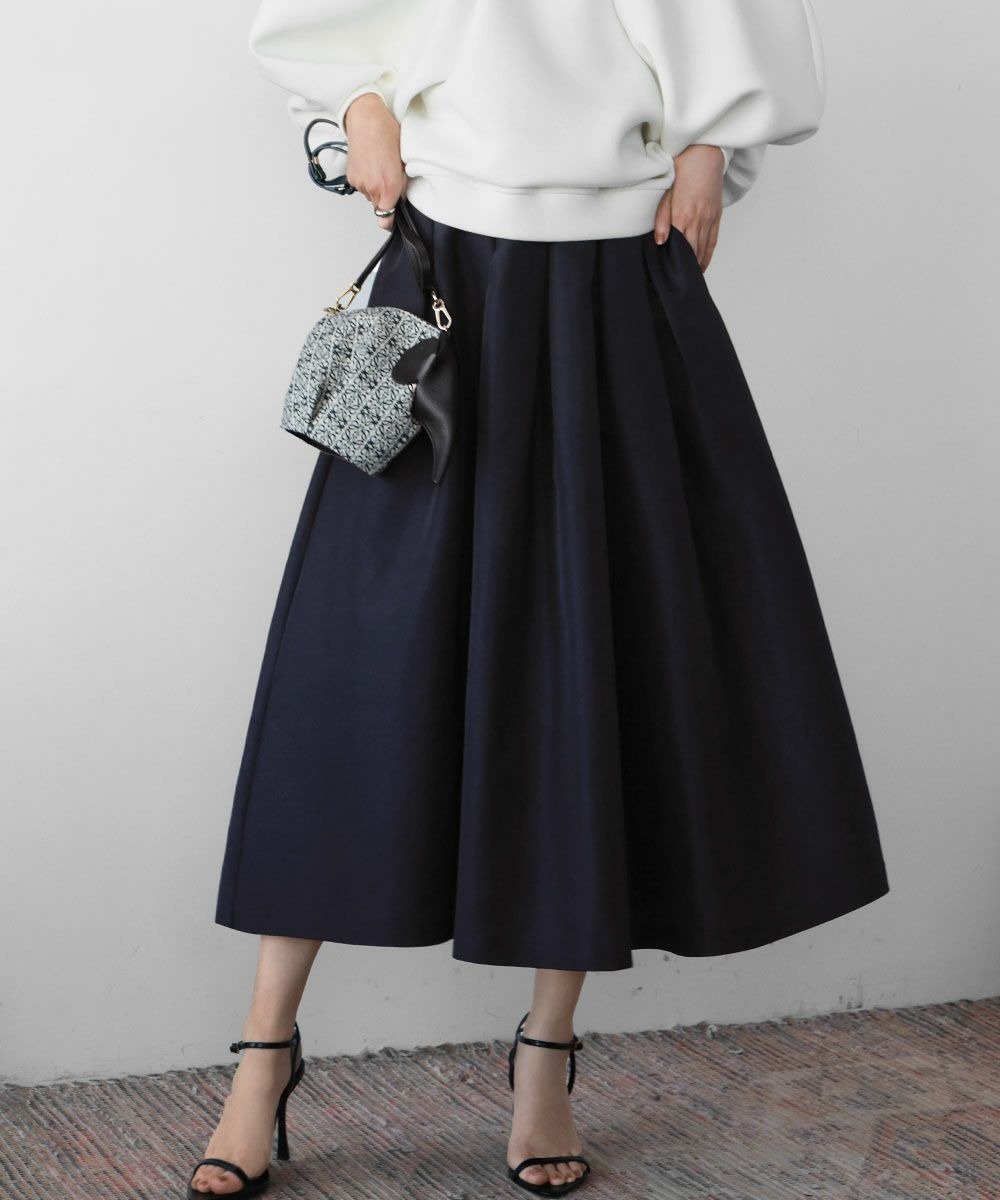 ELFRANK グログランボックスタックフレアロングスカート ガール スカート ロング・マキシスカート ブラック ホワイト イエロー ベージュ レッド【送料無料】
