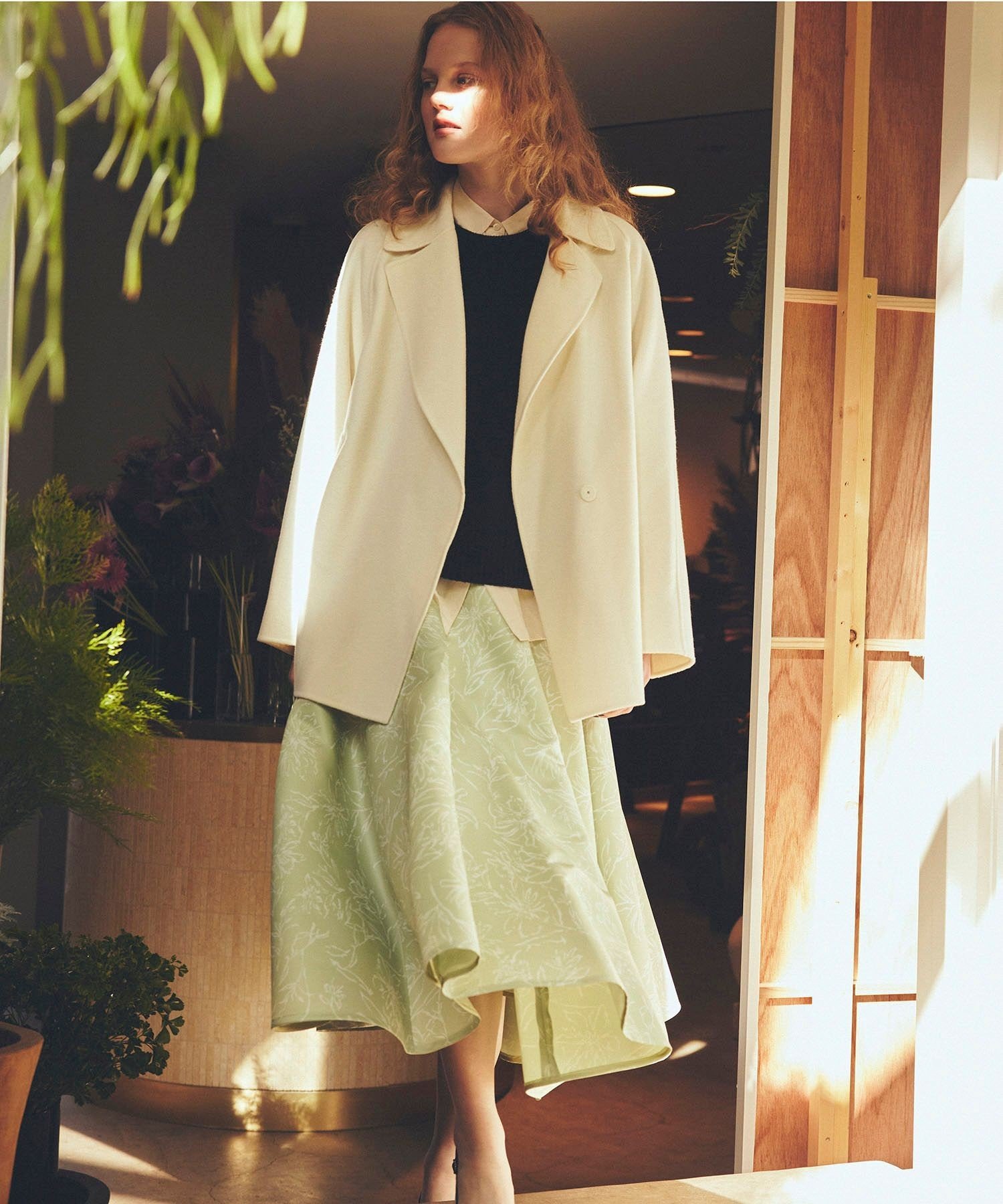 【SALE/30%OFF】ROPE' ラムウールリバーミドルコート【Sサイズフェア対象】 ロペ ジャケット・アウター ピーコート ベージュ グリーン グレー ホワイト【送料無料】