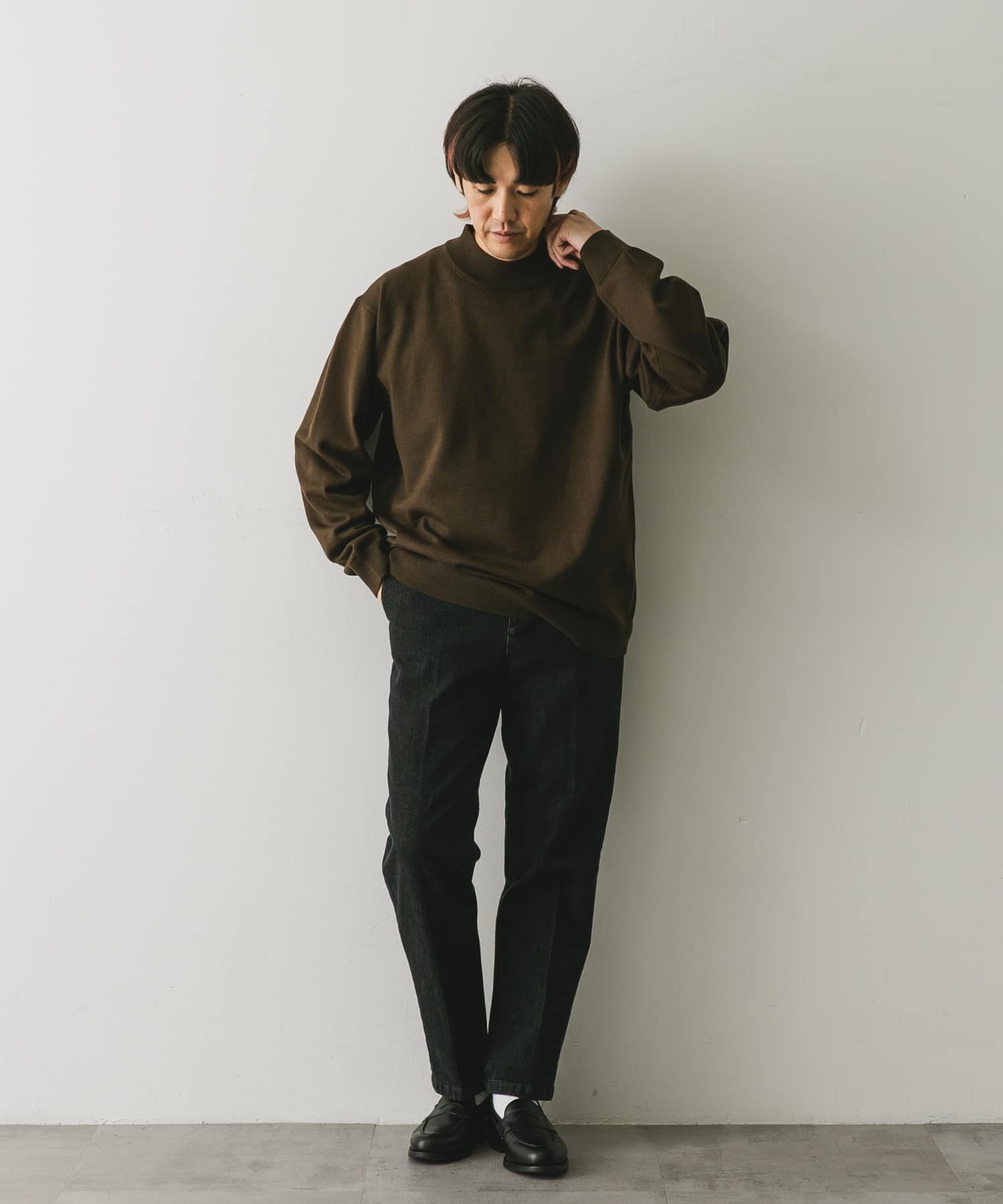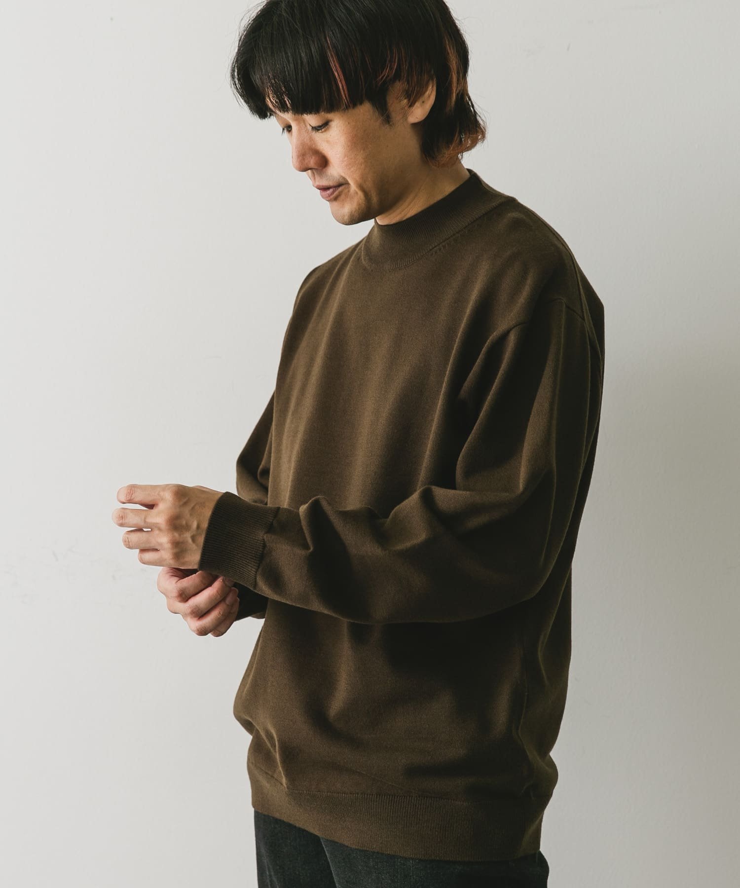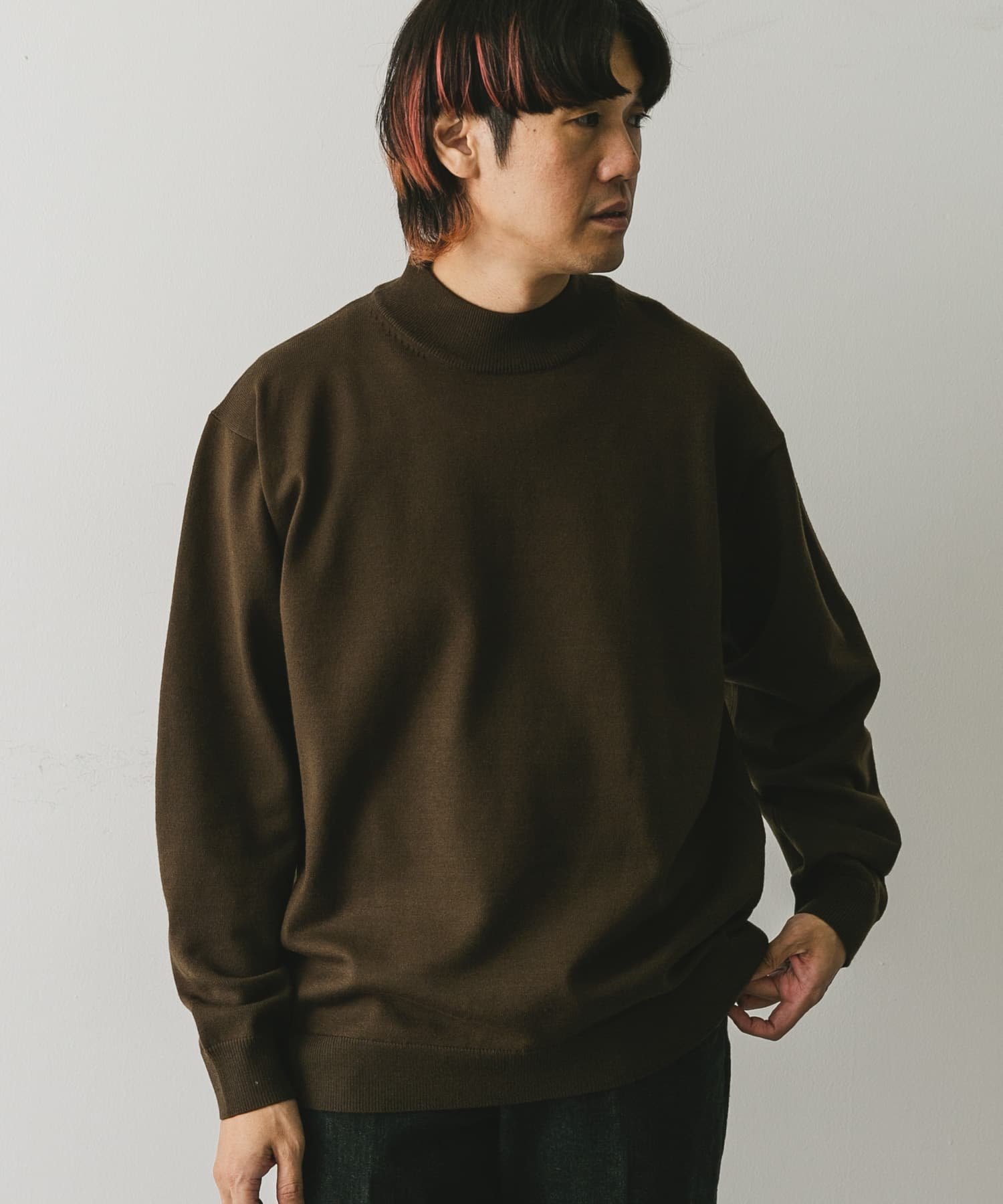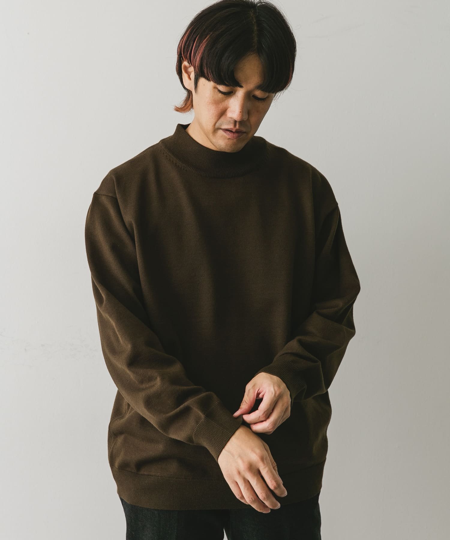 URBAN RESEARCH DOORS 『UR TECH 200日ニット』モックネックプルオーバー アーバンリサーチドアーズ トップス ニット ホワイト ブラウン グリーン ブラック【送料無料】