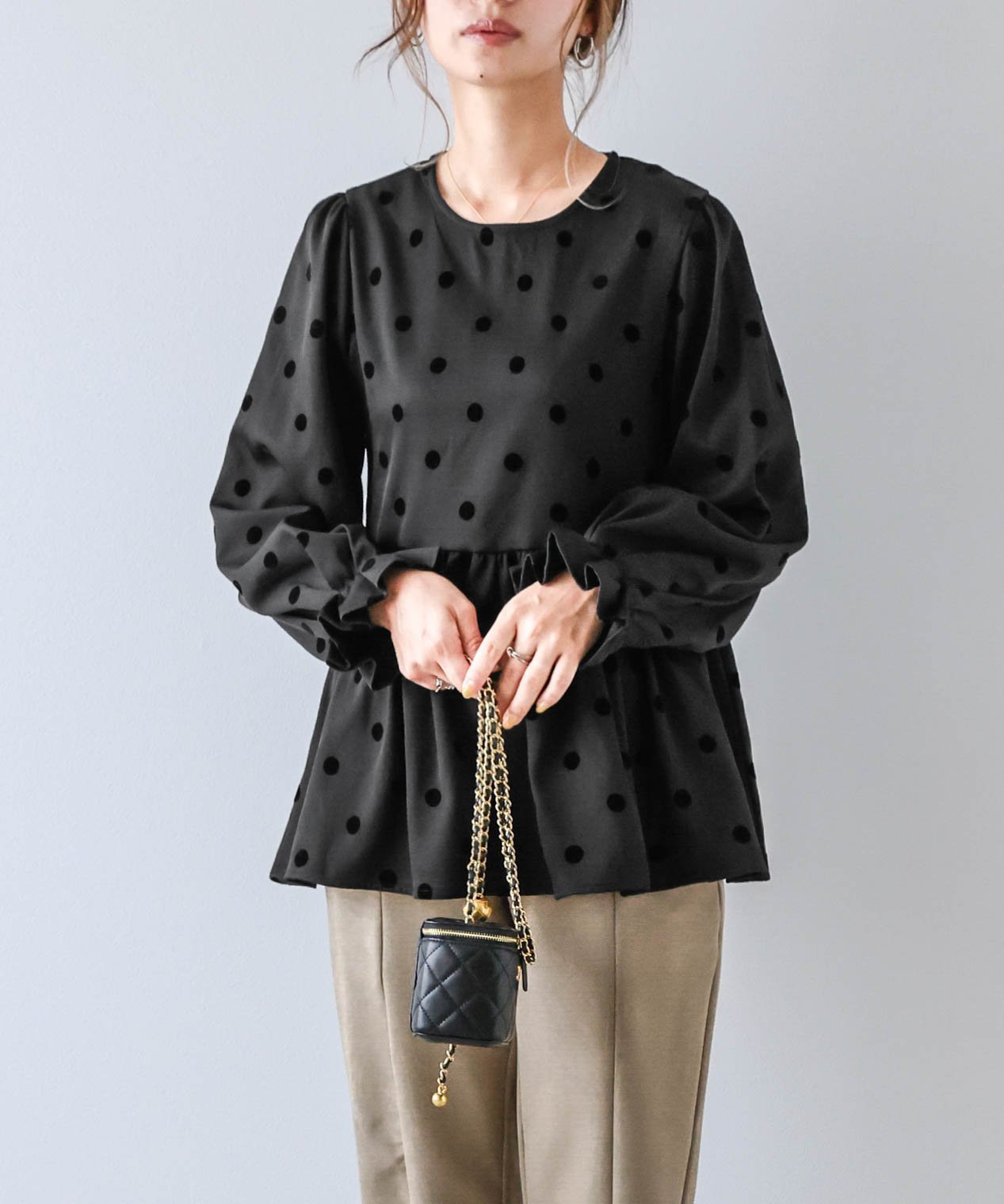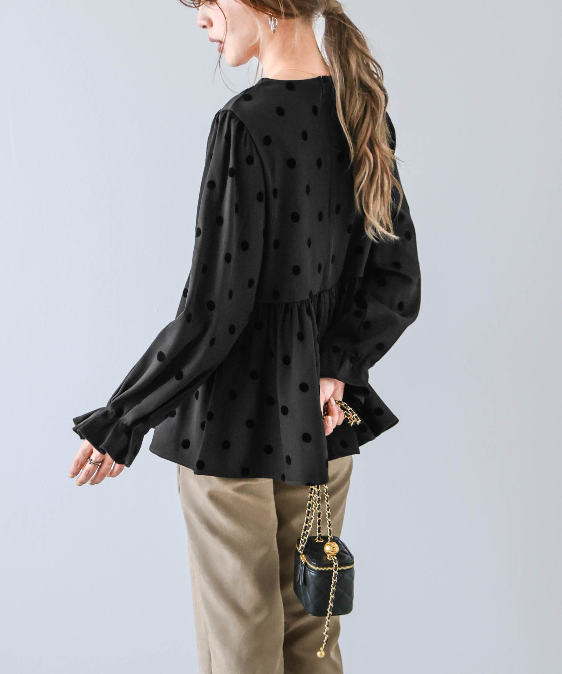 【SALE/45%OFF】La-gemme フロッキードット ペプラムトップス ラジュール トップス その他のトップス ブラック