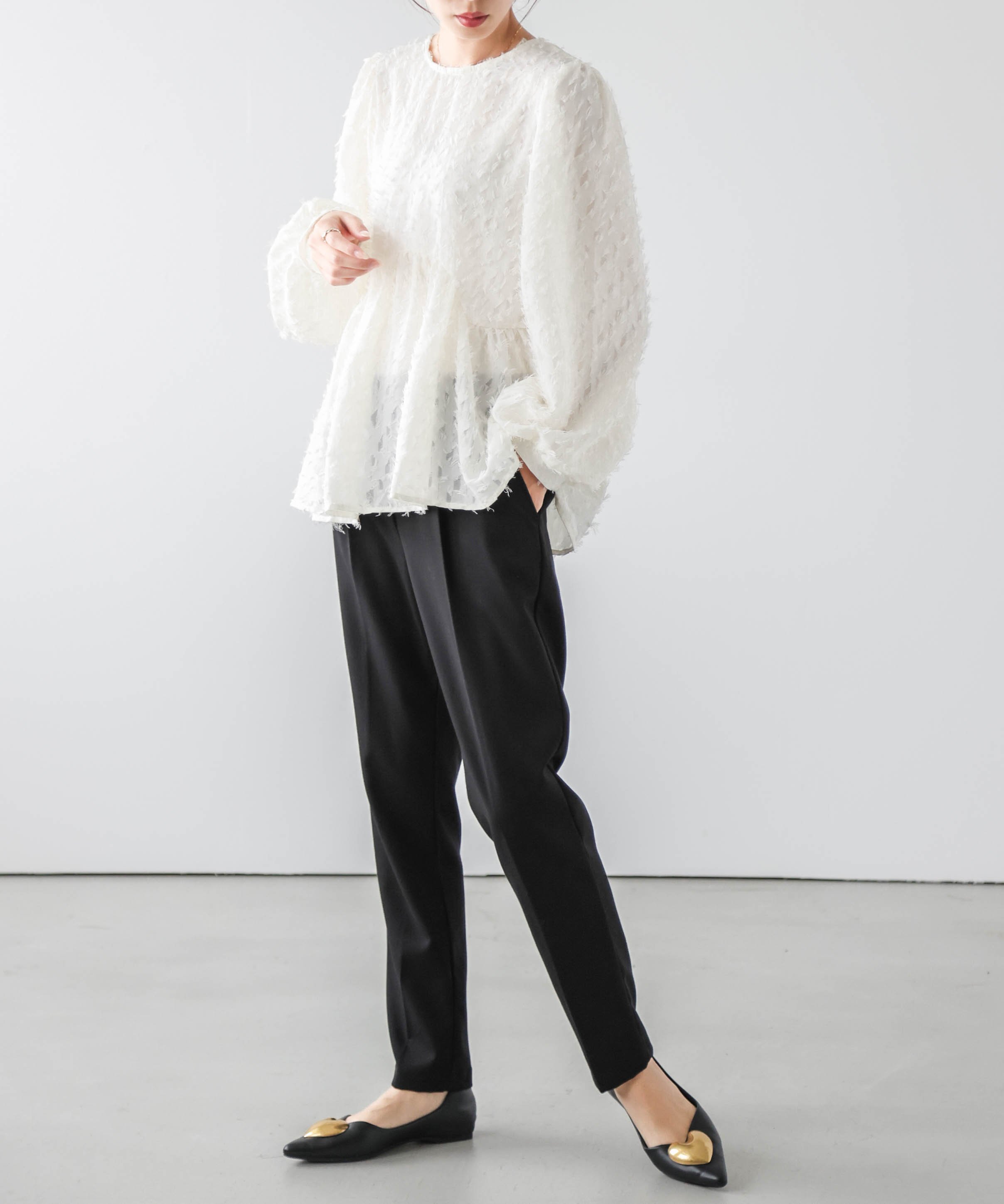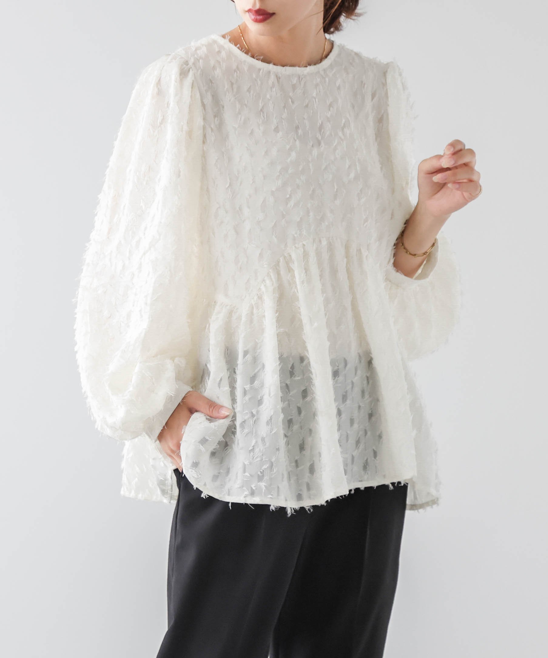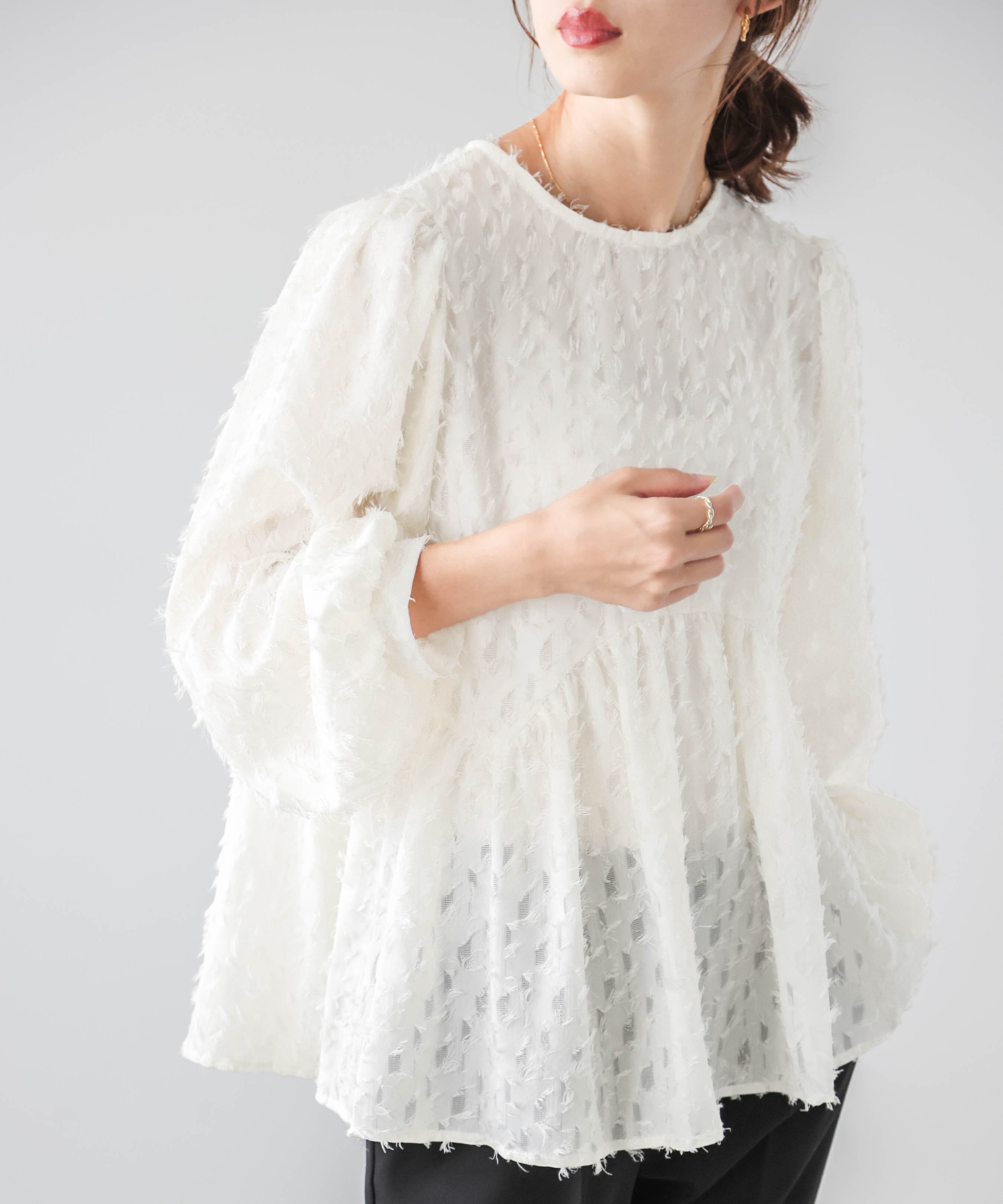 【SALE/42%OFF】La-gemme フェザーペプラムトップス ラジュール トップス その他のトップス ブラック ホワイト