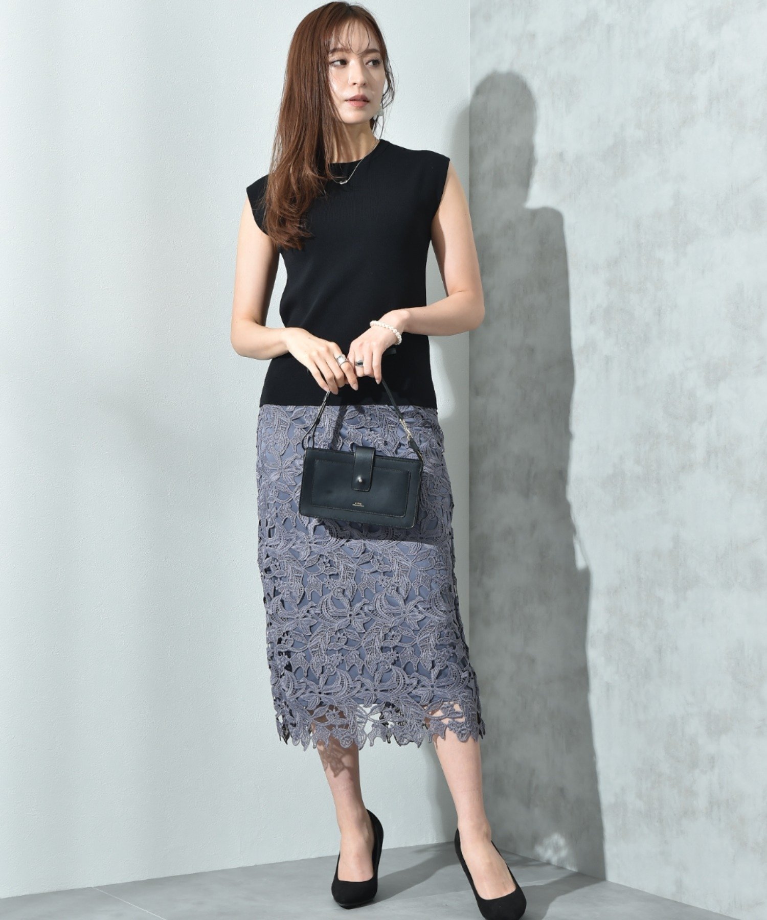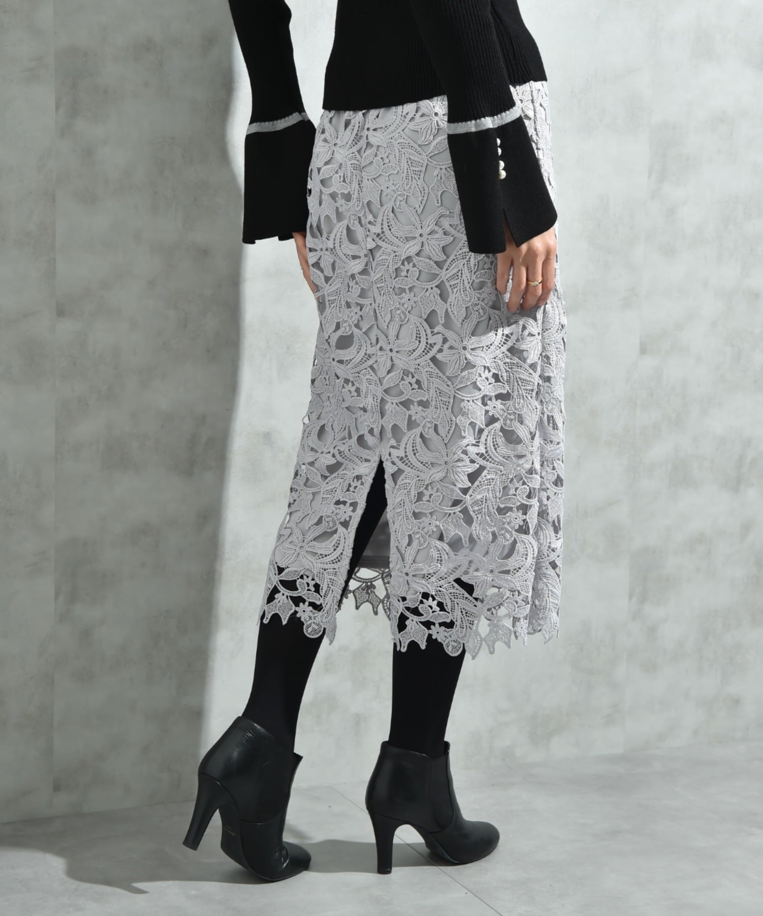 【SALE/40%OFF】INTERPLANET ケミカルレースBACKファスナータイトスカート インタープラネット スカート ロング・マキシスカート ネイビー パープル グレー【送料無料】