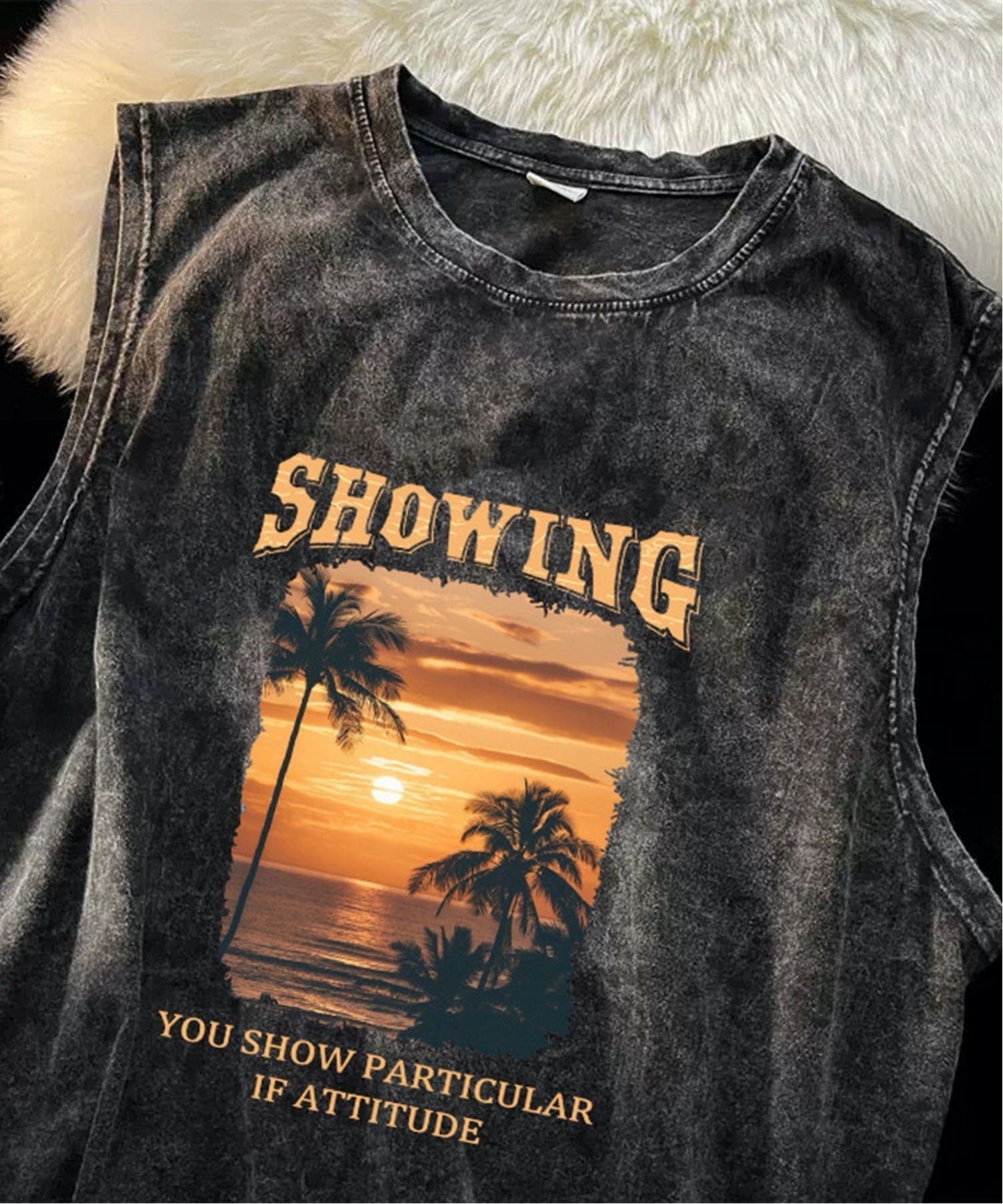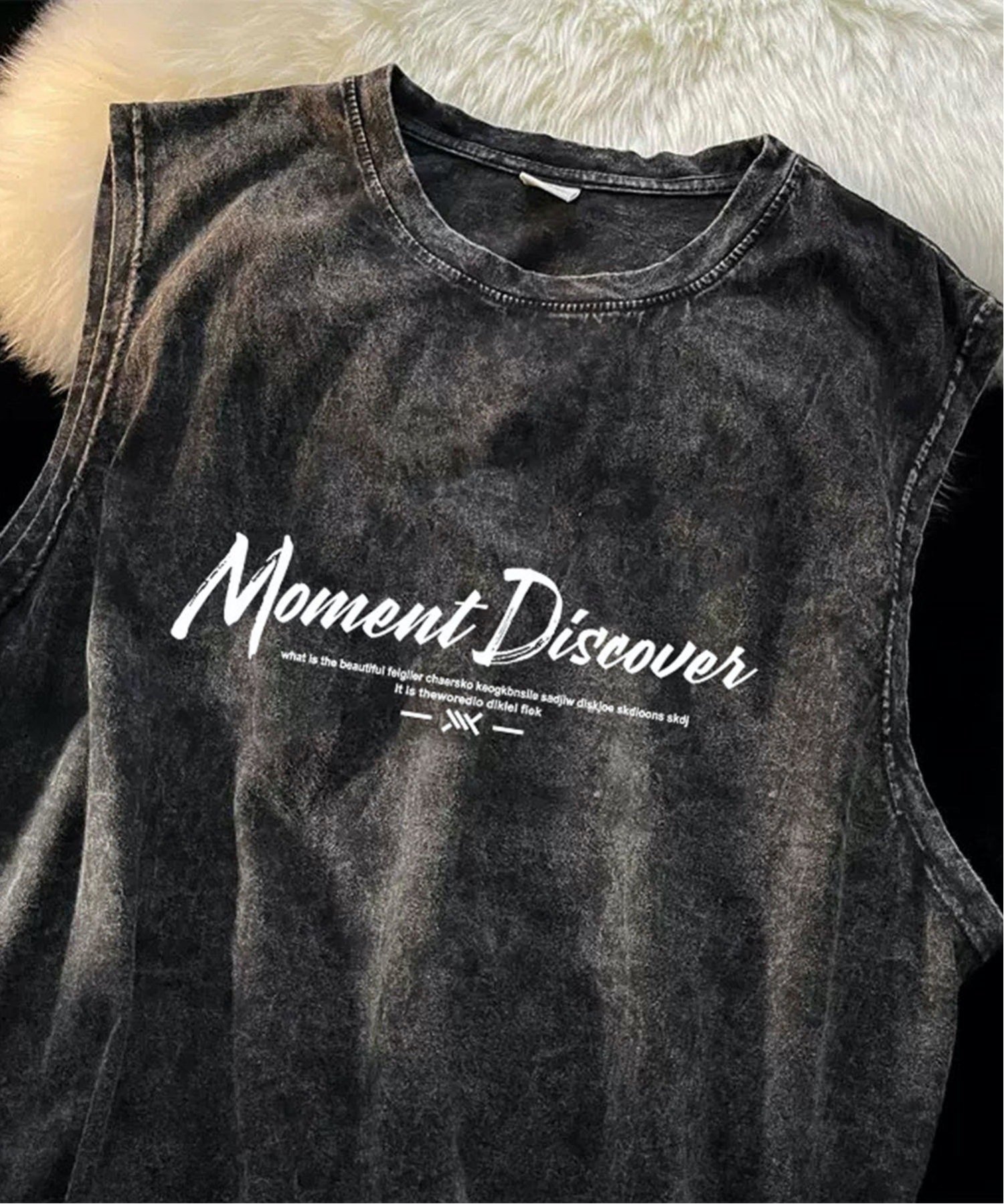 【SALE/85%OFF】NOWLE NOWLE/(M)【NOWLE】ヴィンテージ加工 フロント プリント ロック ノースリーブ チェルカ トップス ノースリーブ・タンクトップ ブラック