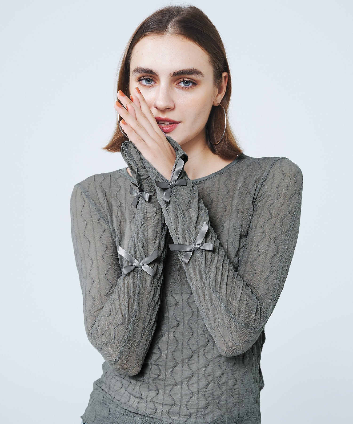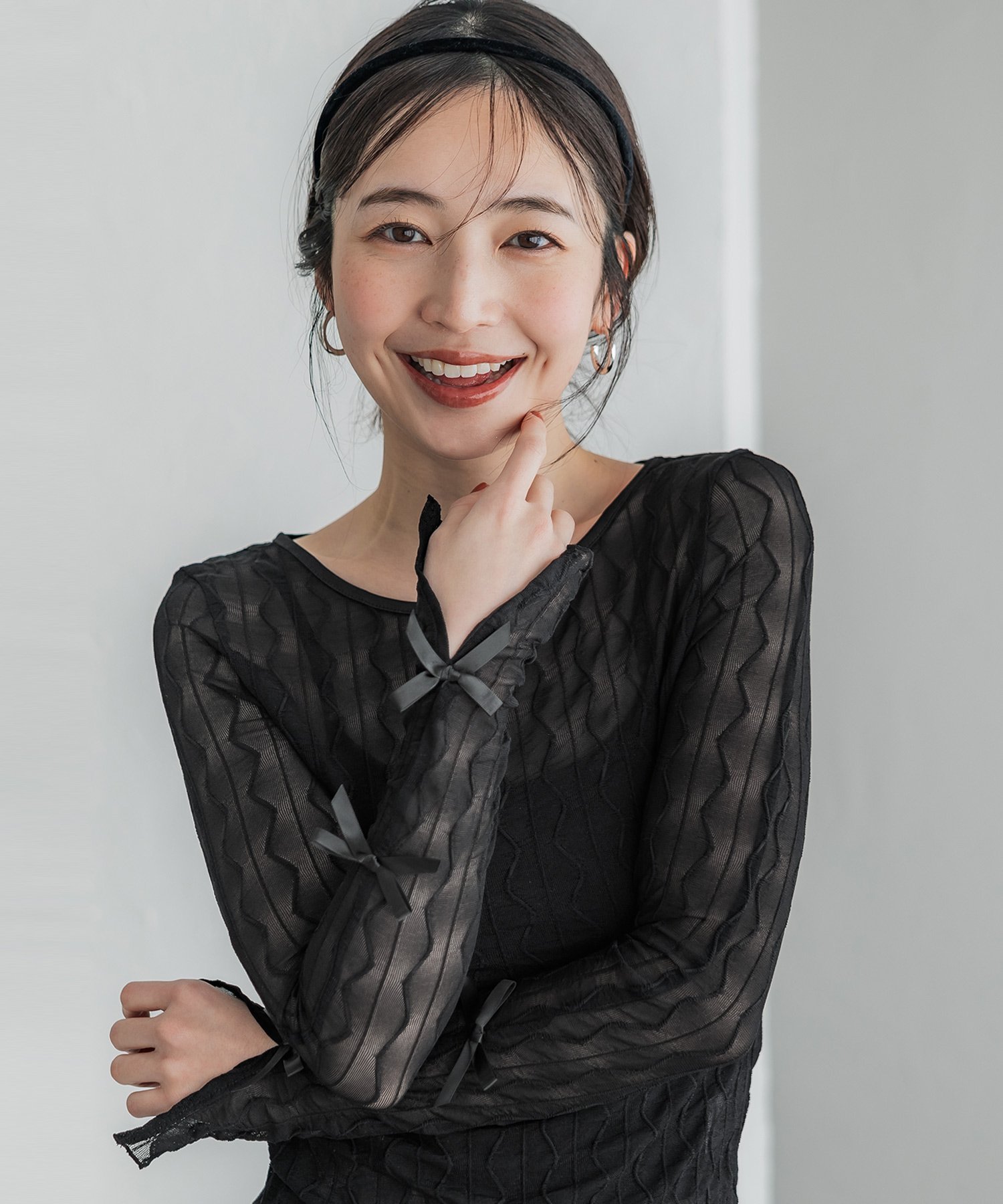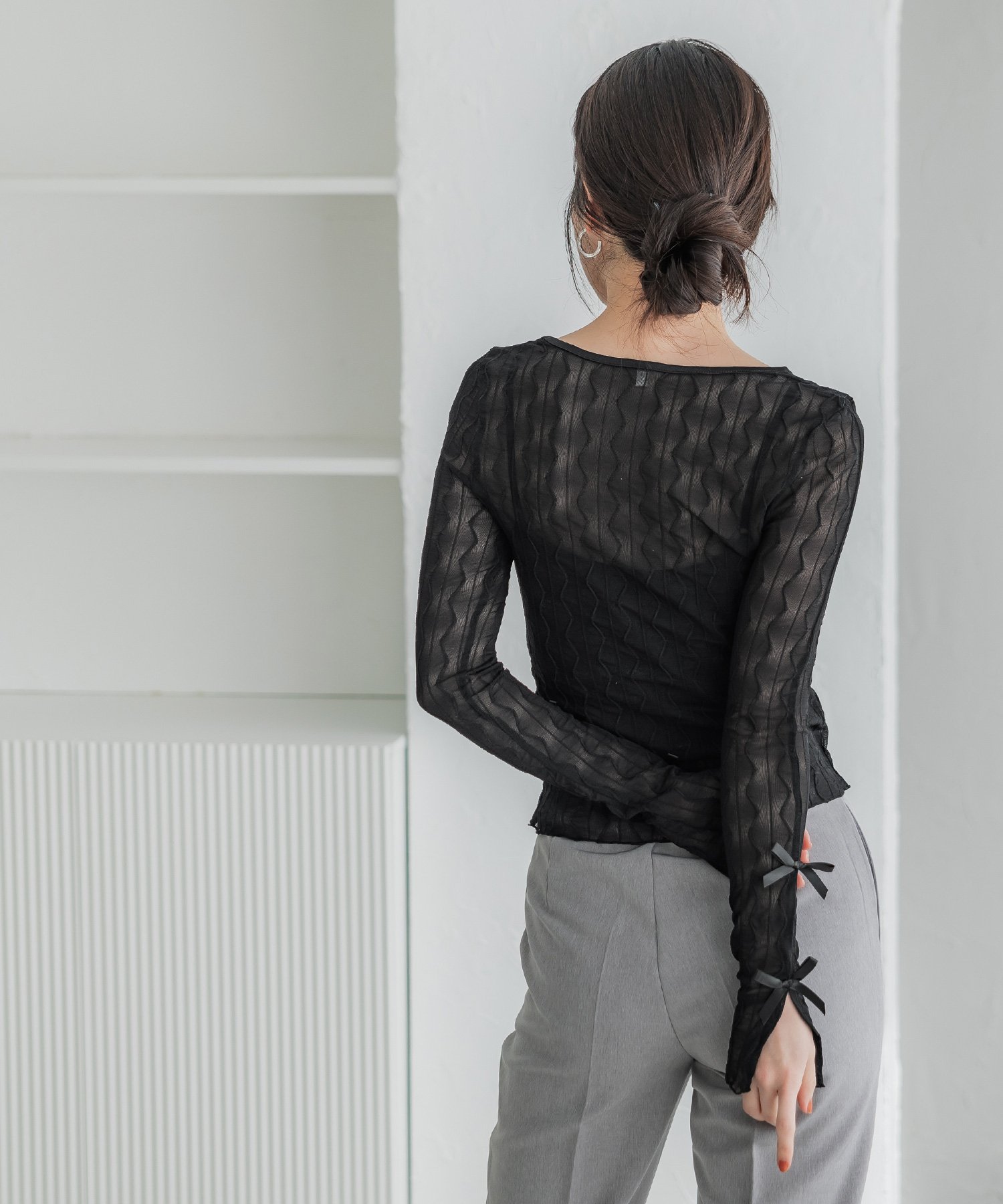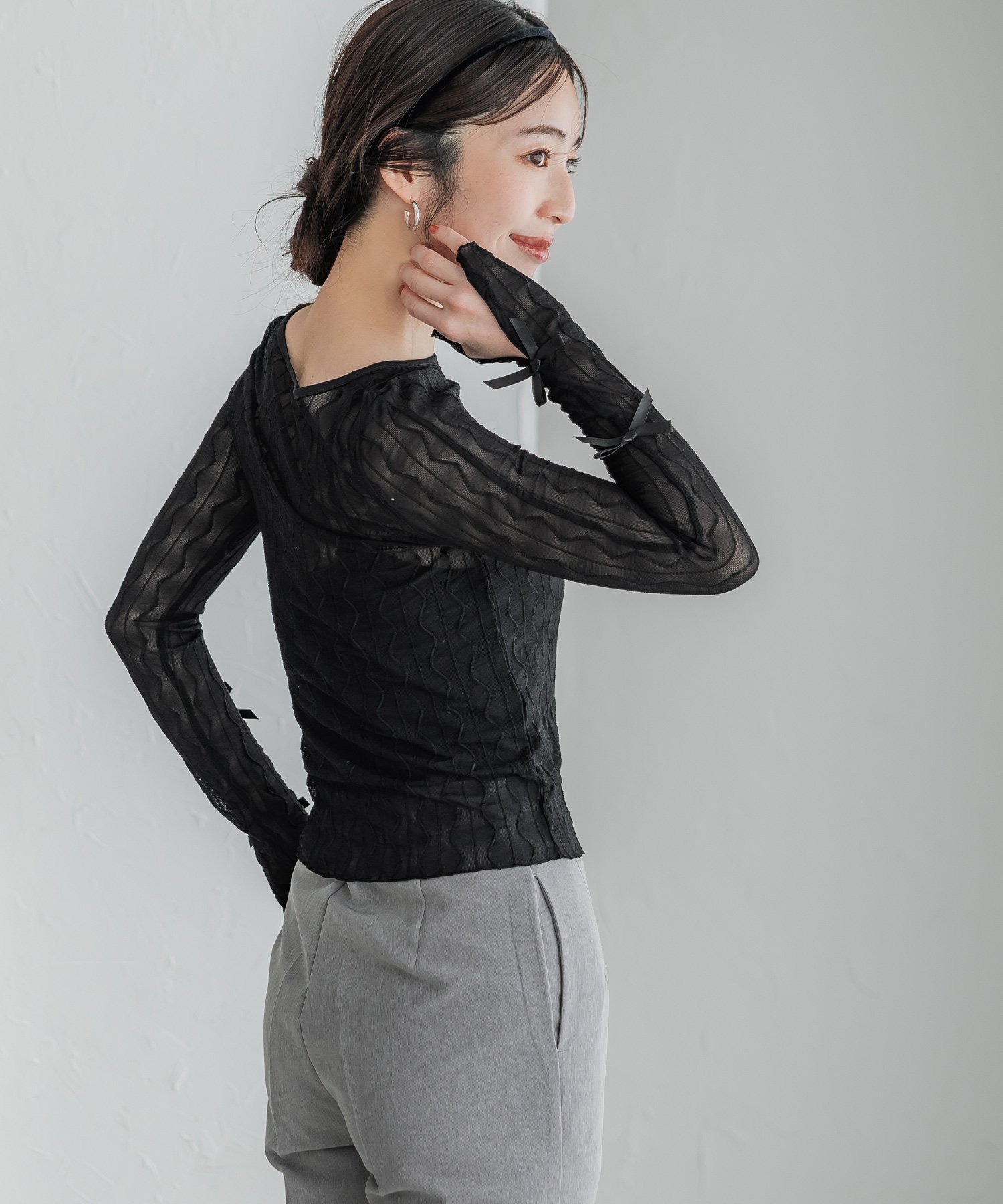 coca メッシュリボントップス コカ トップス その他のトップス グレー ブラック