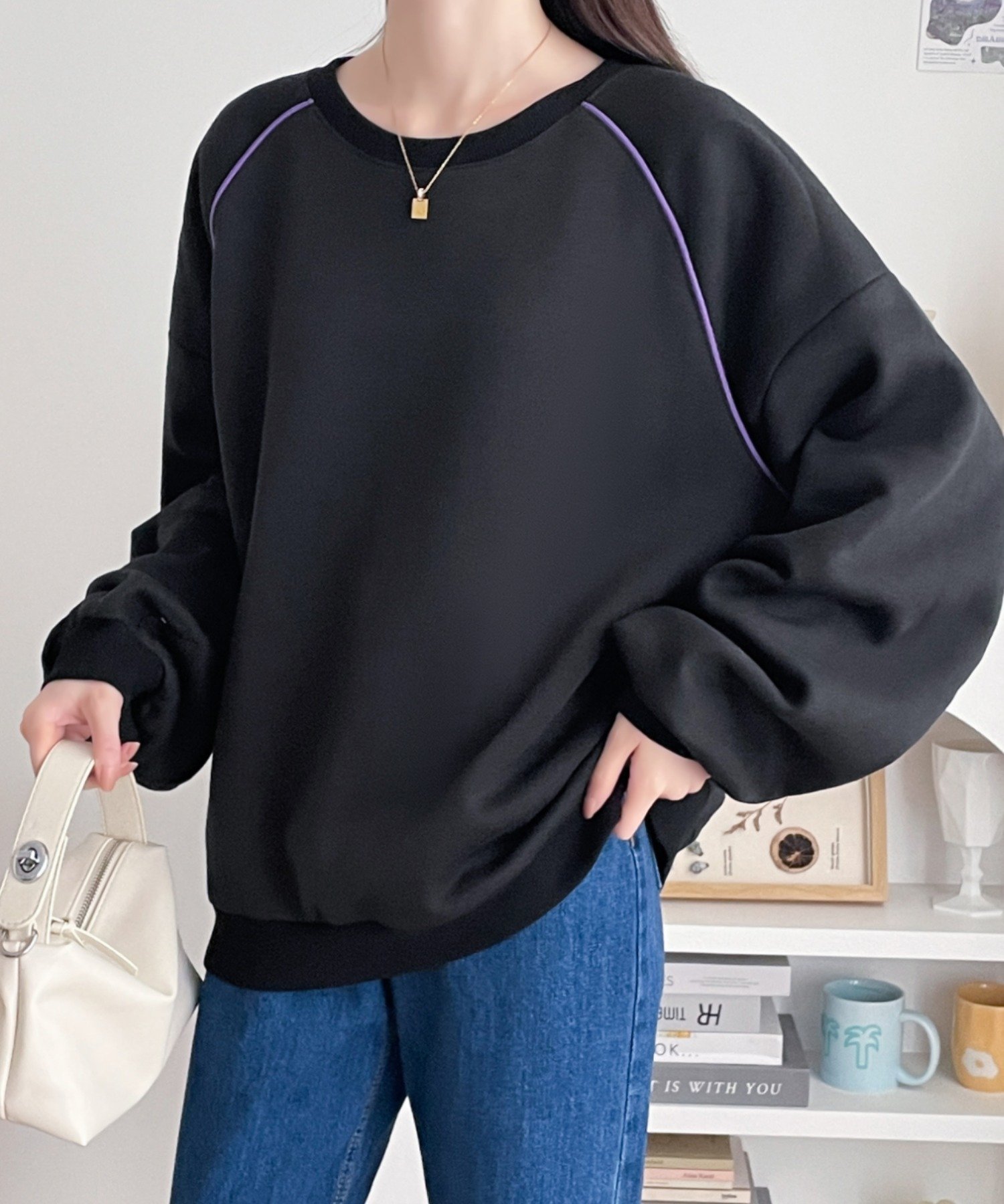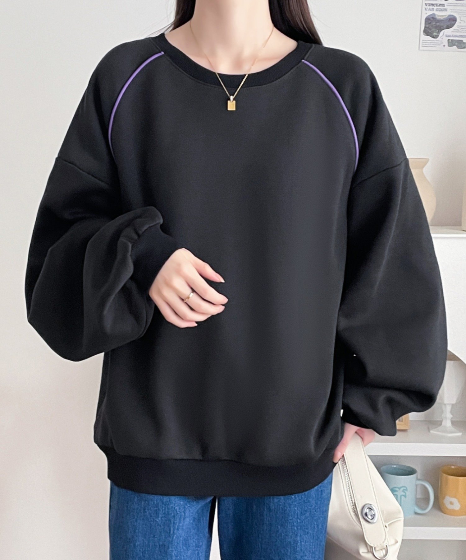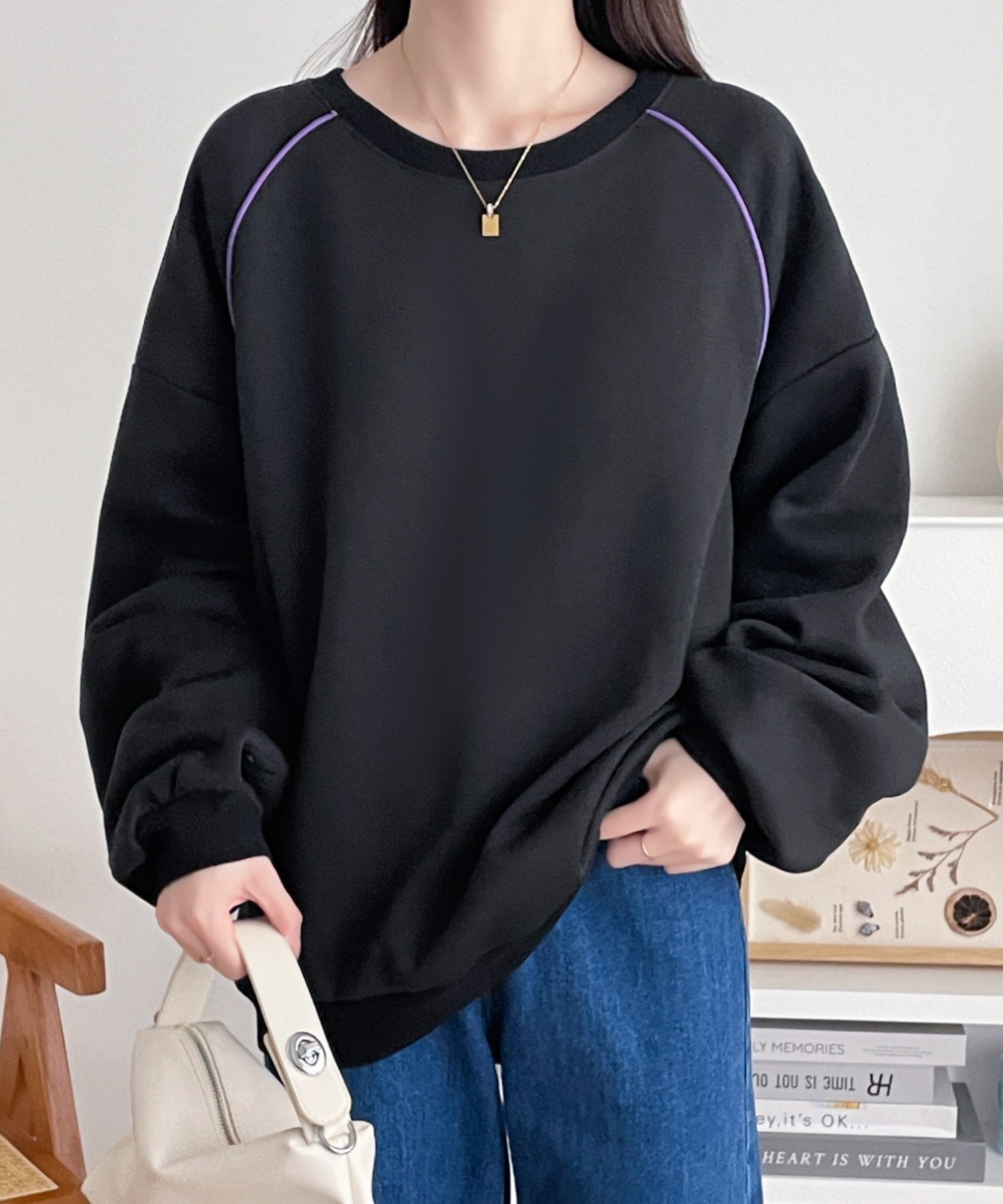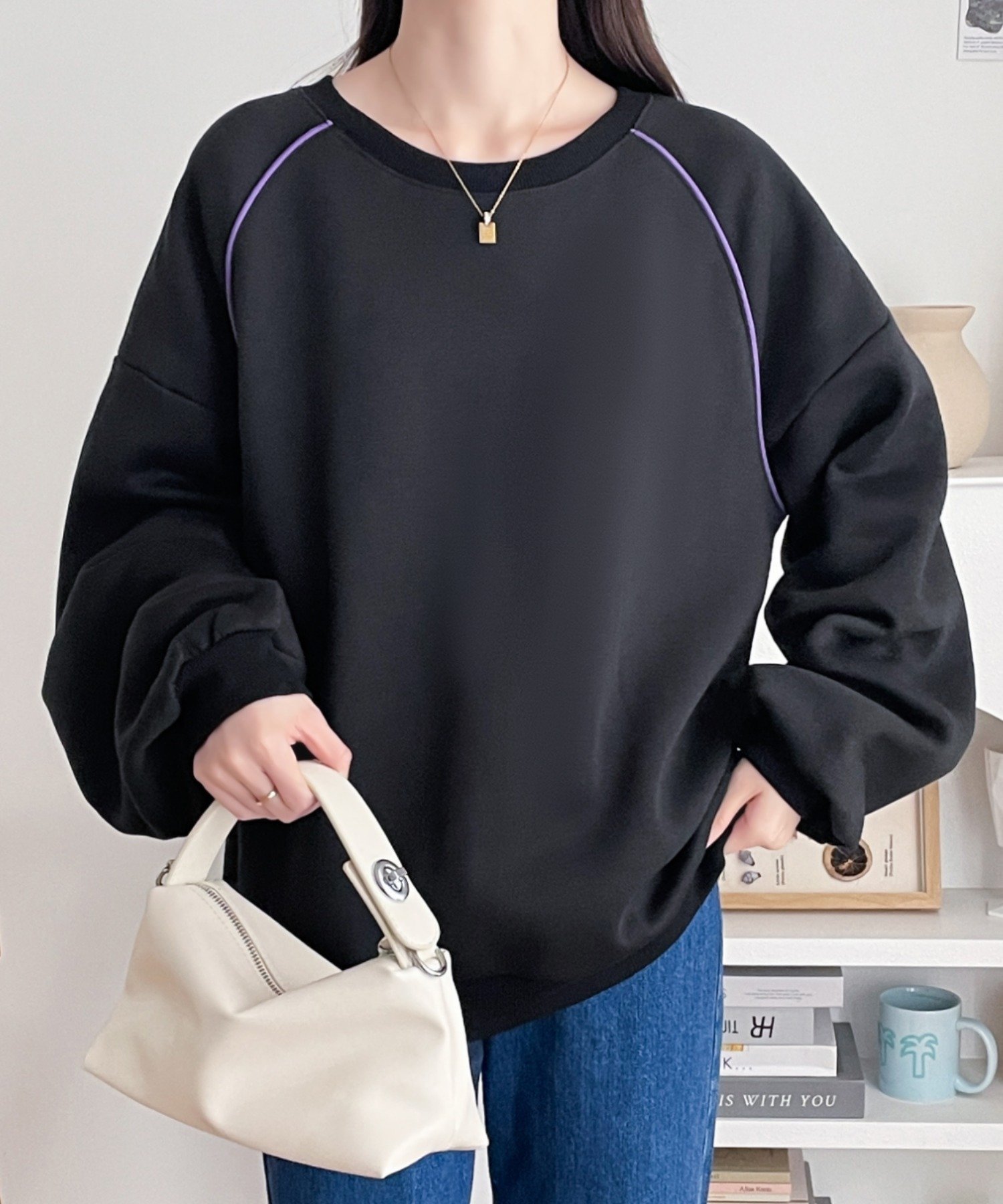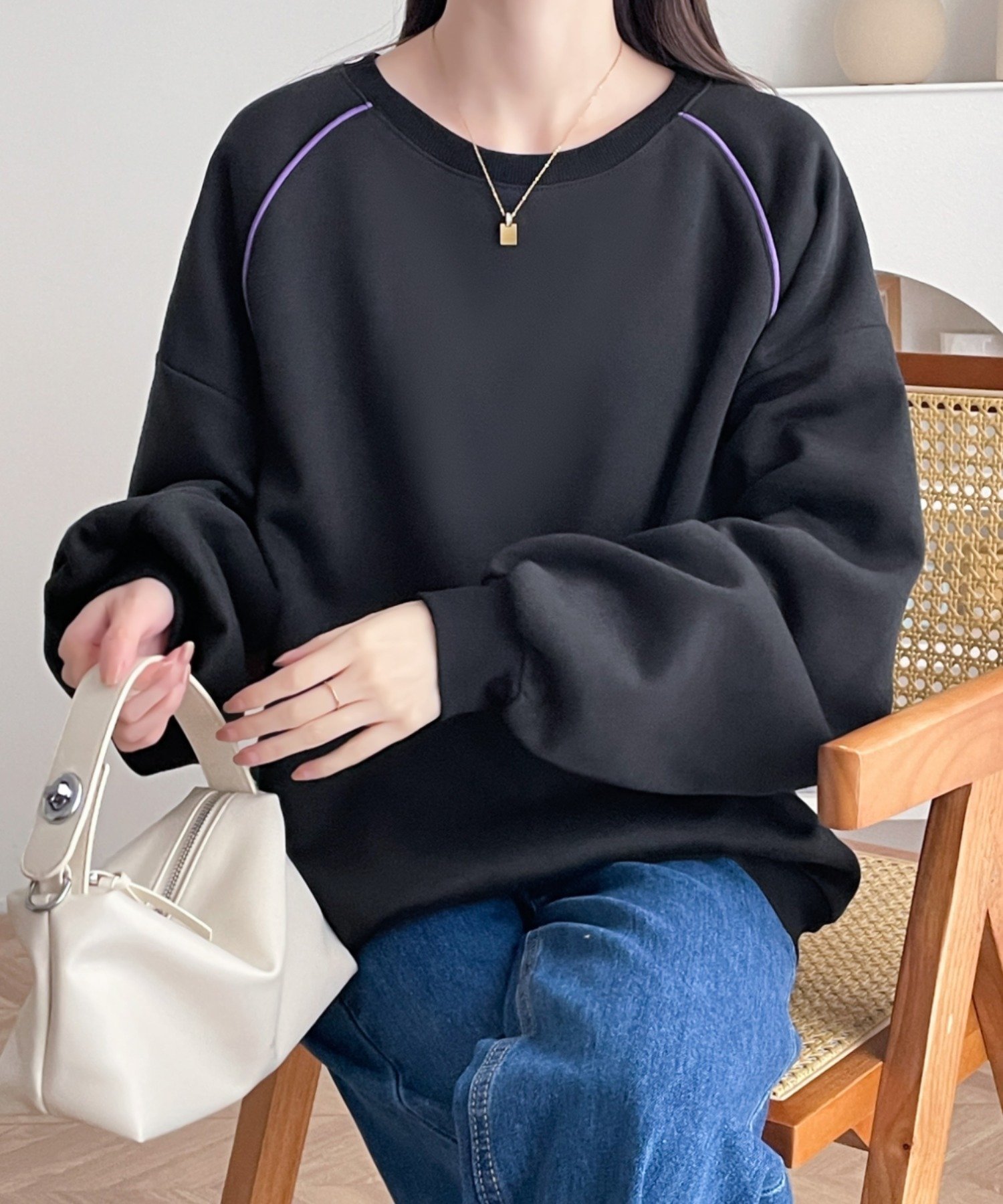 【SALE/21%OFF】ABITOKYO 配色パイピングBIGシルエット裏起毛スウェットプルオーバー アビトーキョー トップス スウェット・トレーナー ベージュ ブラウン パープル【送料無料】