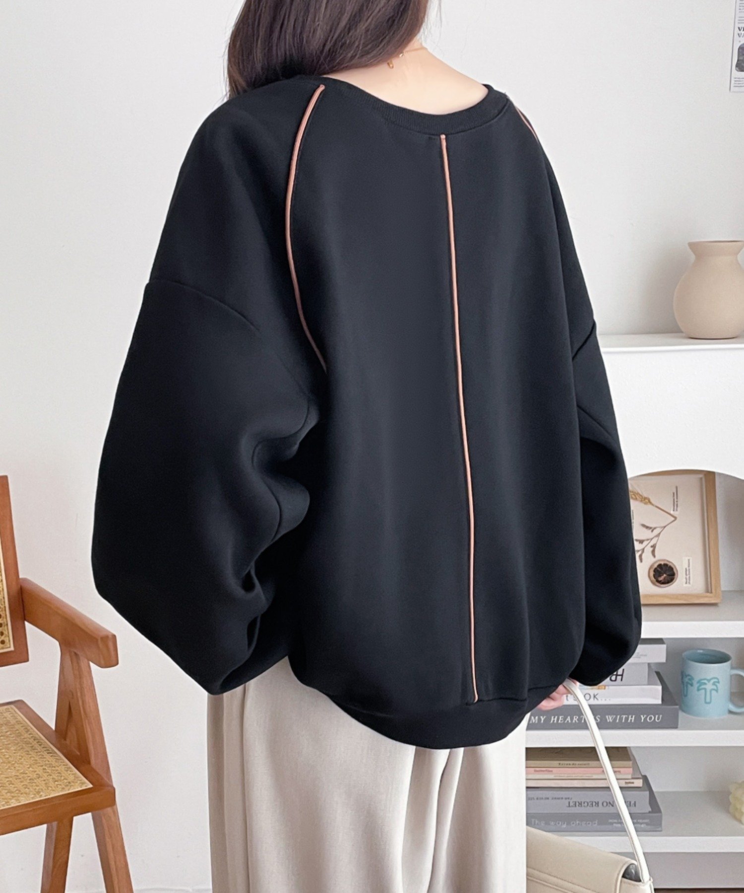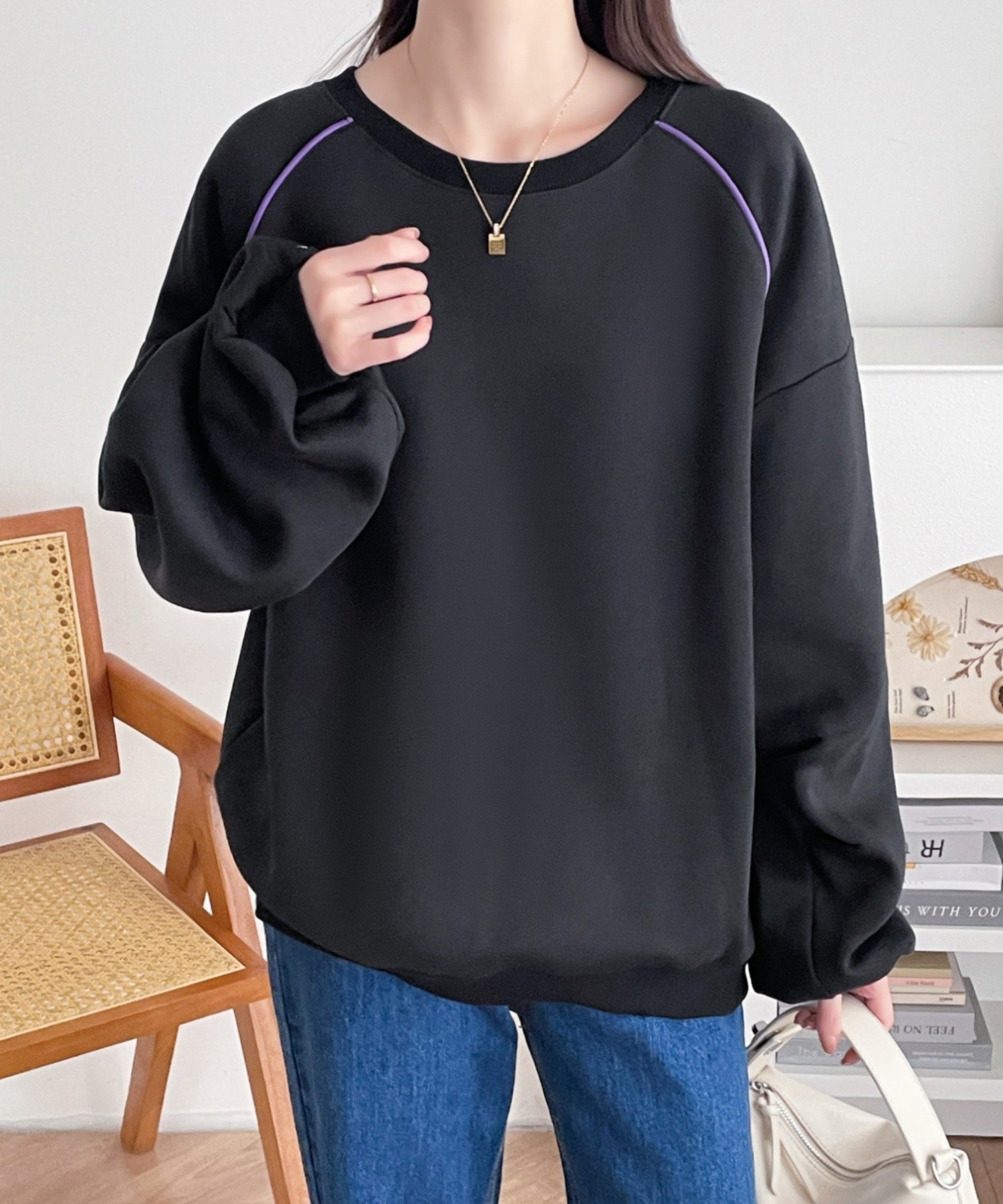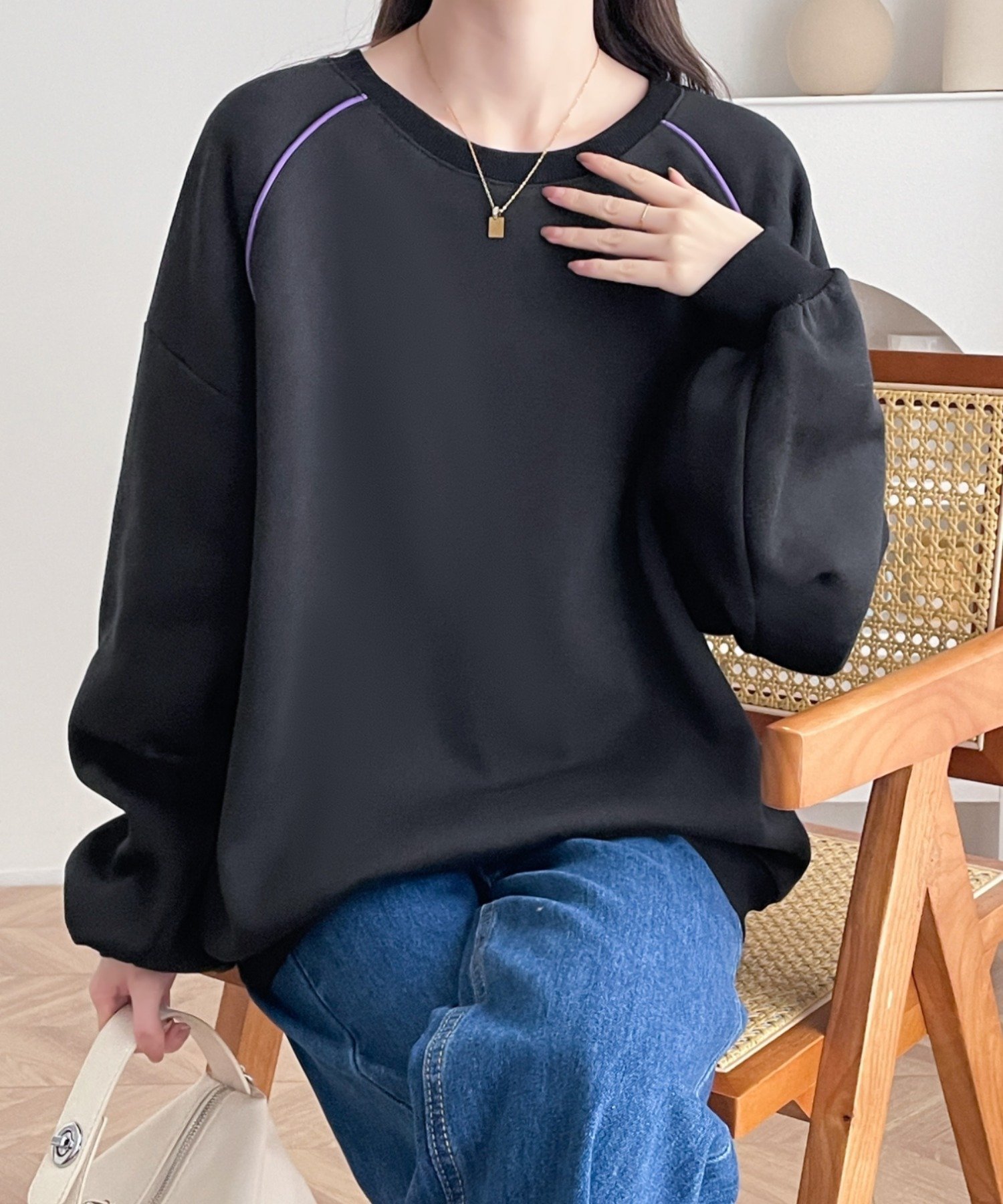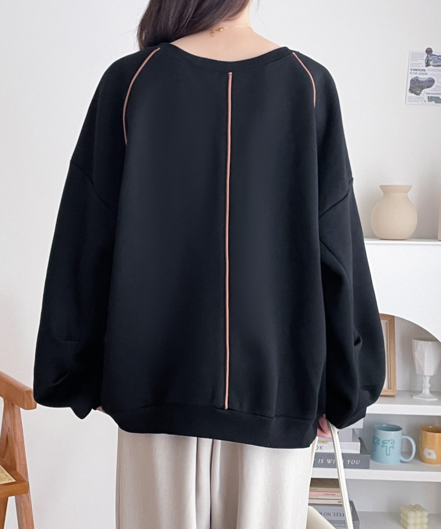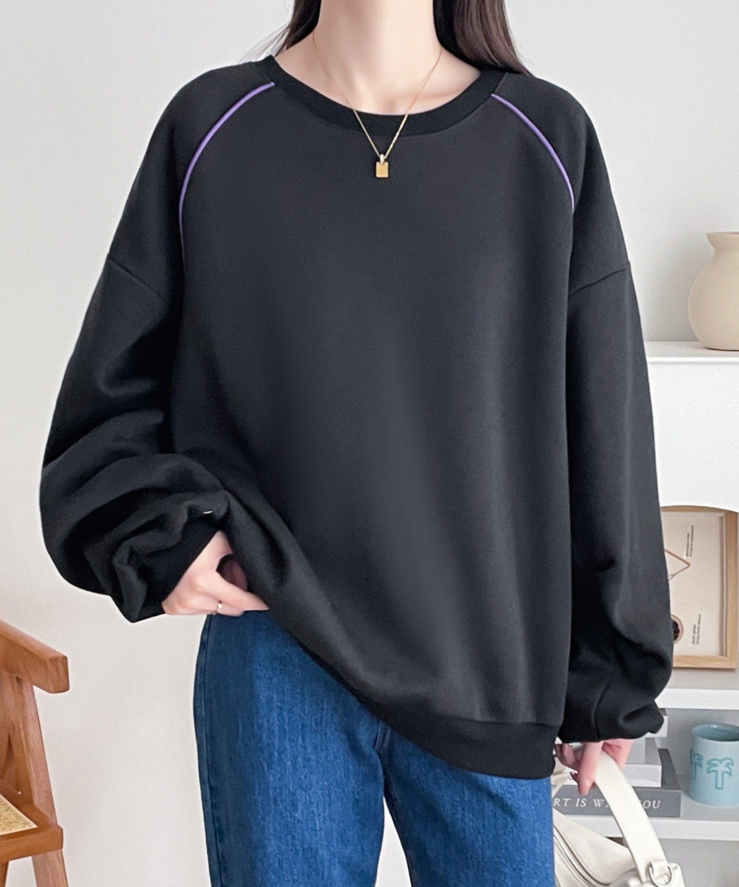 【SALE/21%OFF】ABITOKYO 配色パイピングBIGシルエット裏起毛スウェットプルオーバー アビトーキョー トップス スウェット・トレーナー ベージュ ブラウン パープル【送料無料】