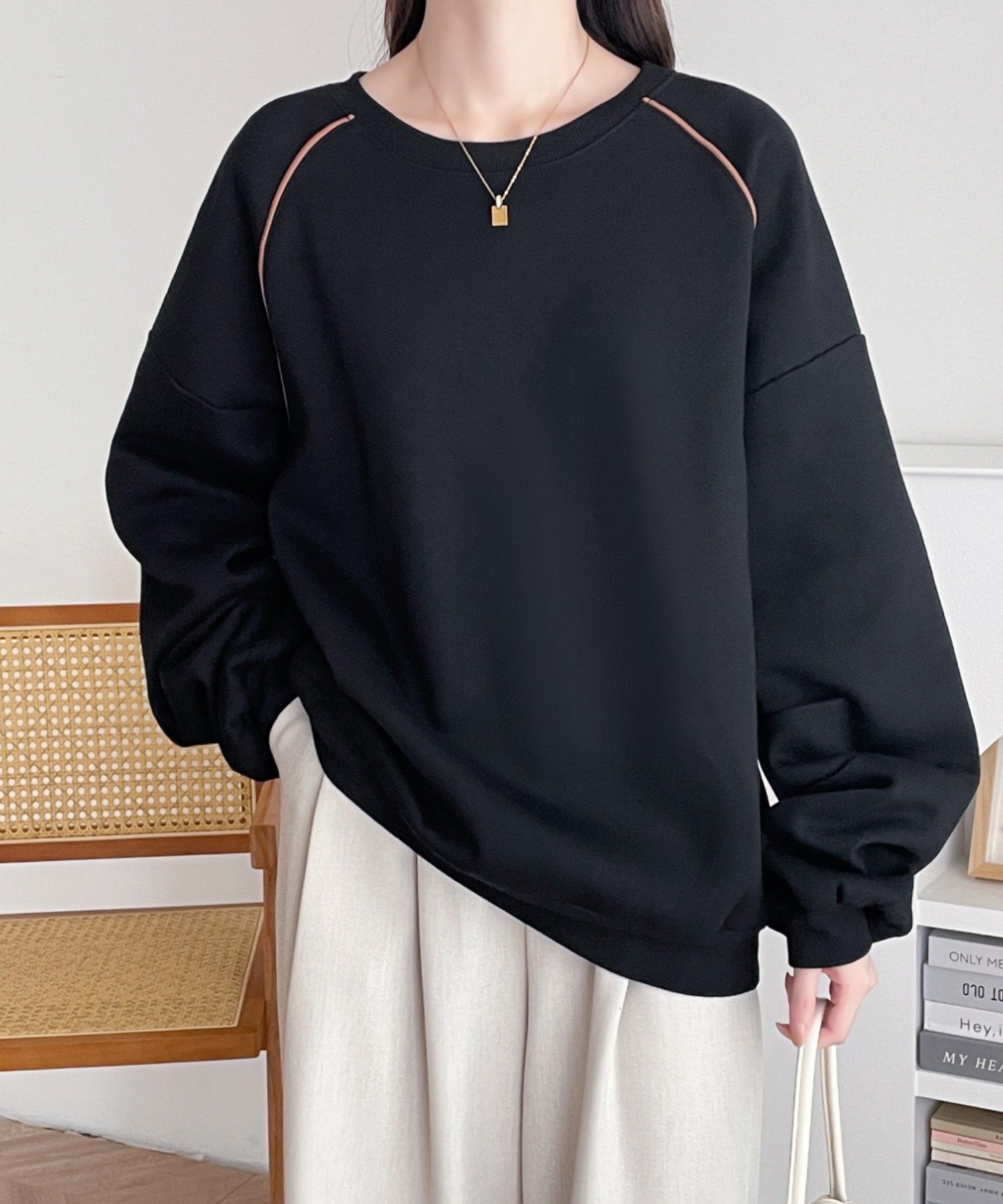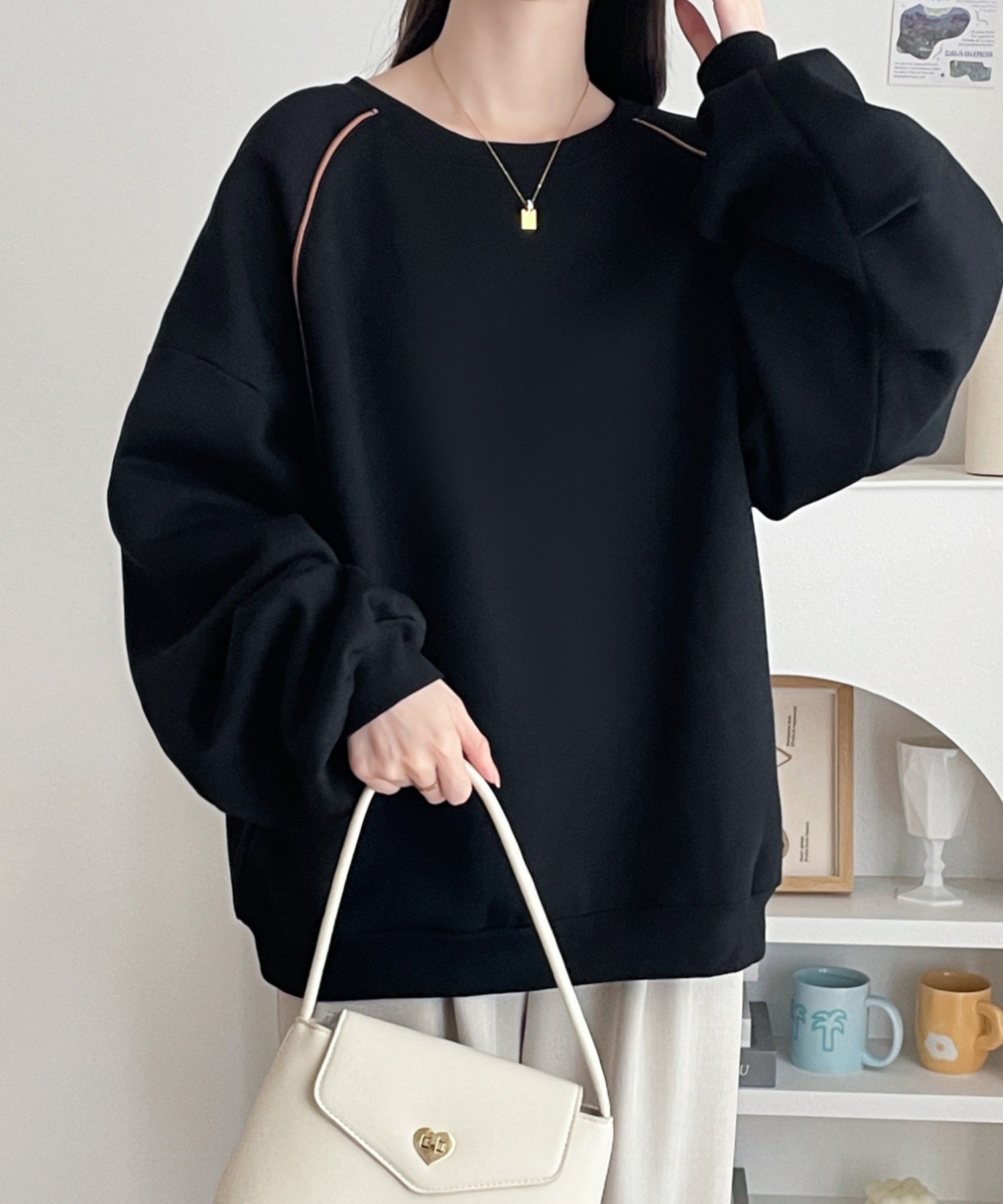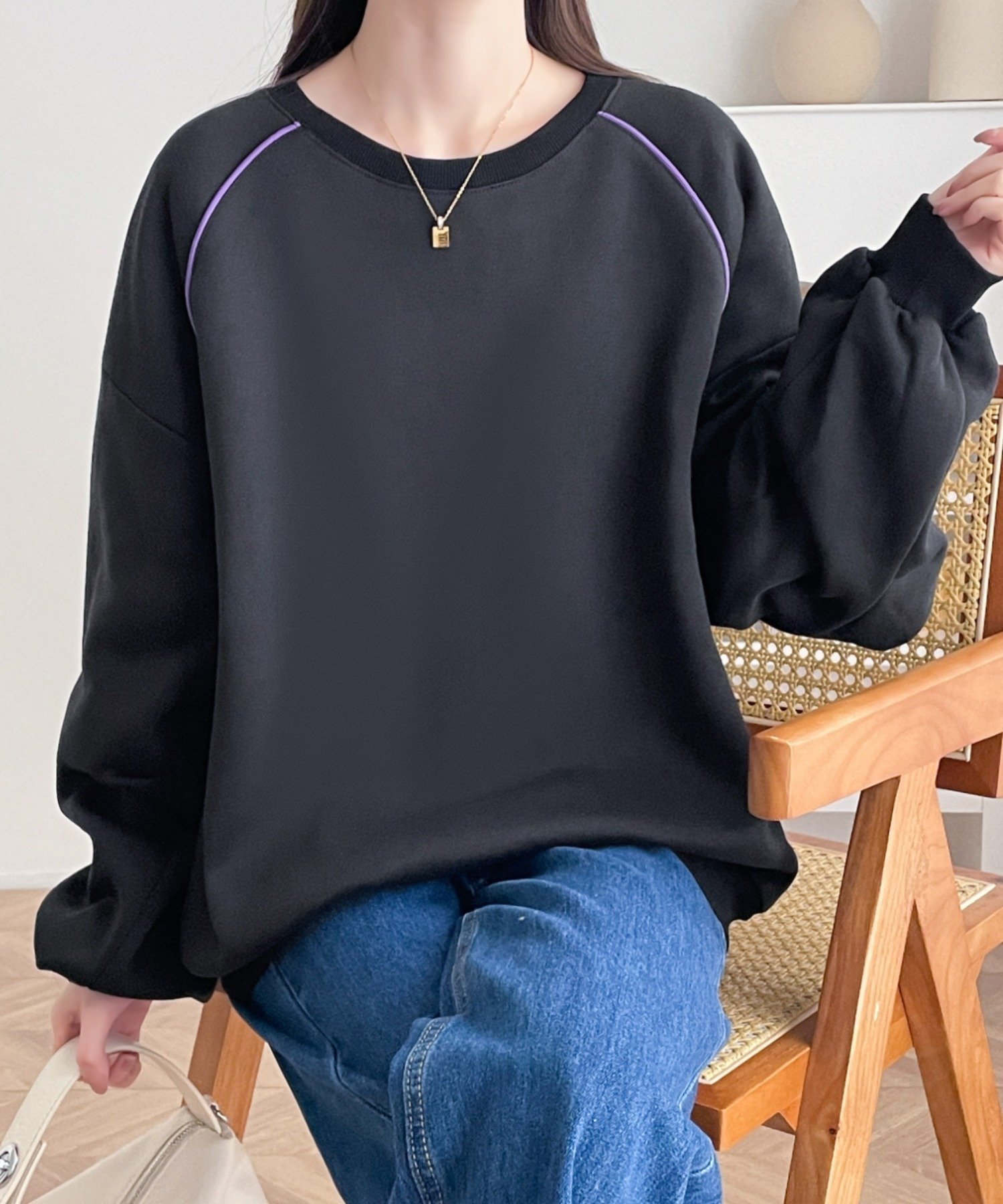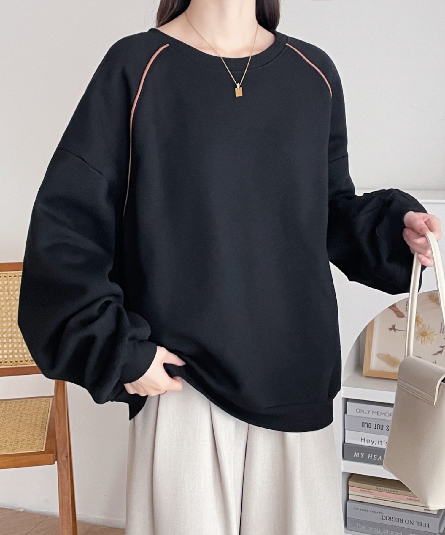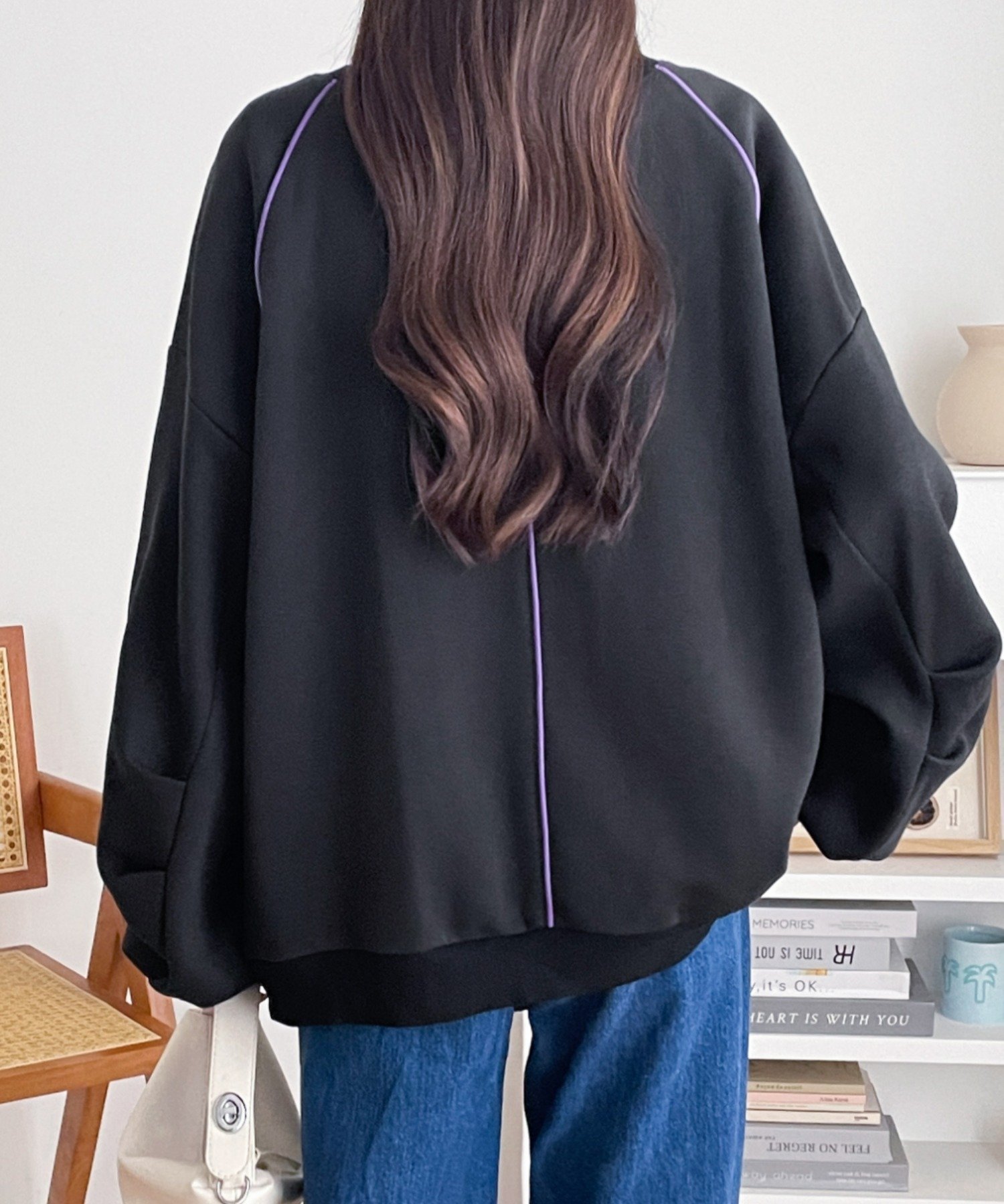 【SALE/21%OFF】ABITOKYO 配色パイピングBIGシルエット裏起毛スウェットプルオーバー アビトーキョー トップス スウェット・トレーナー ベージュ ブラウン パープル【送料無料】