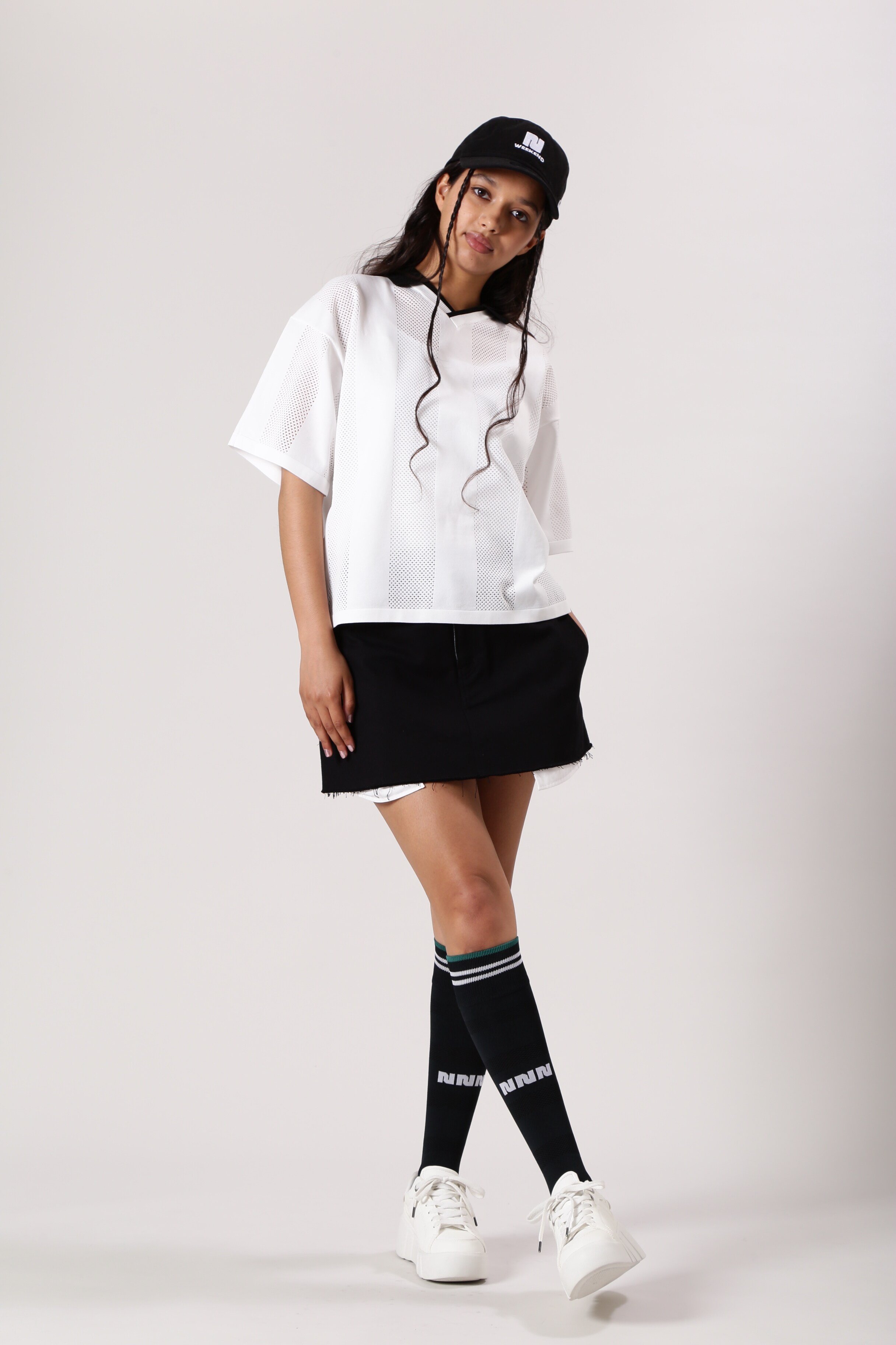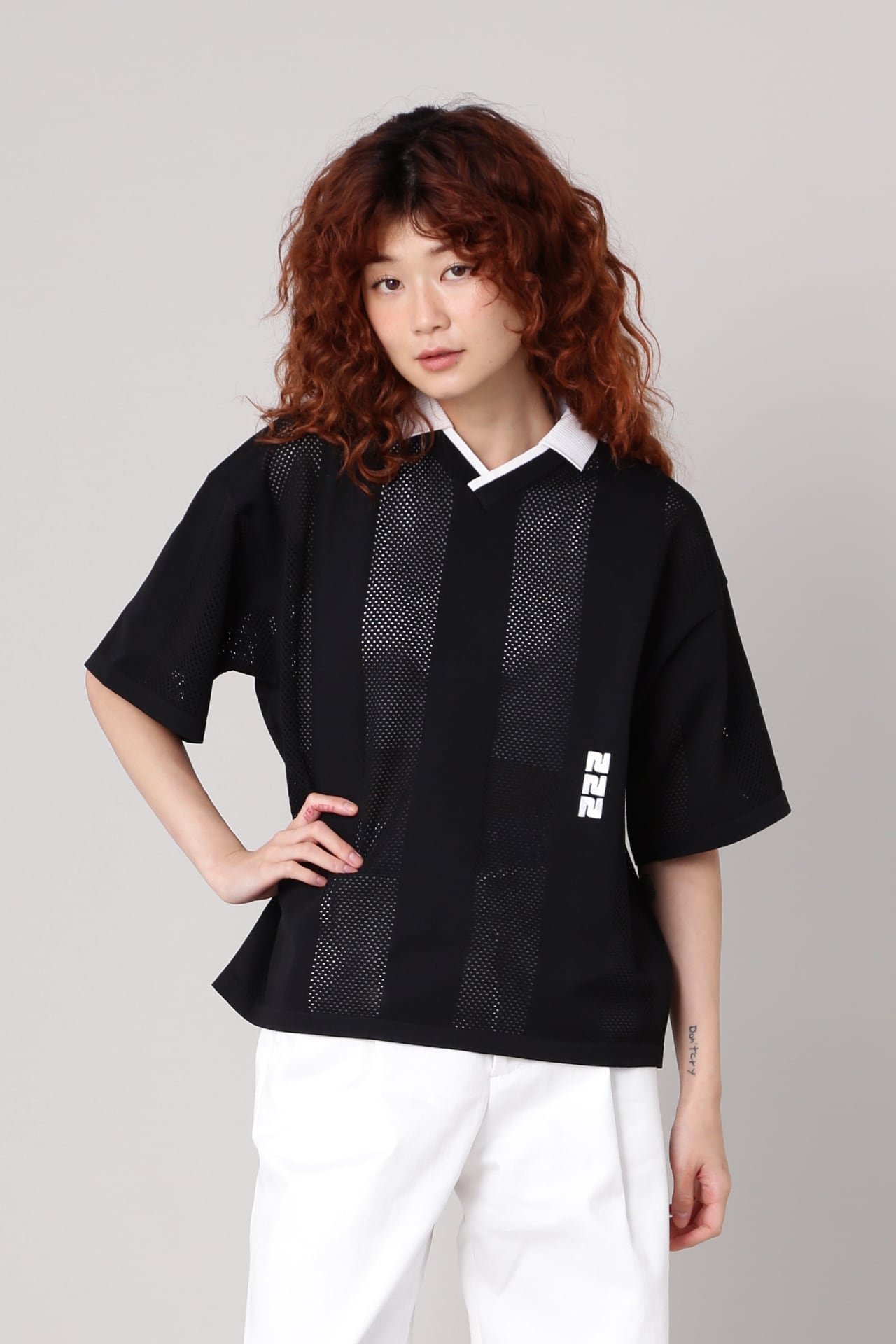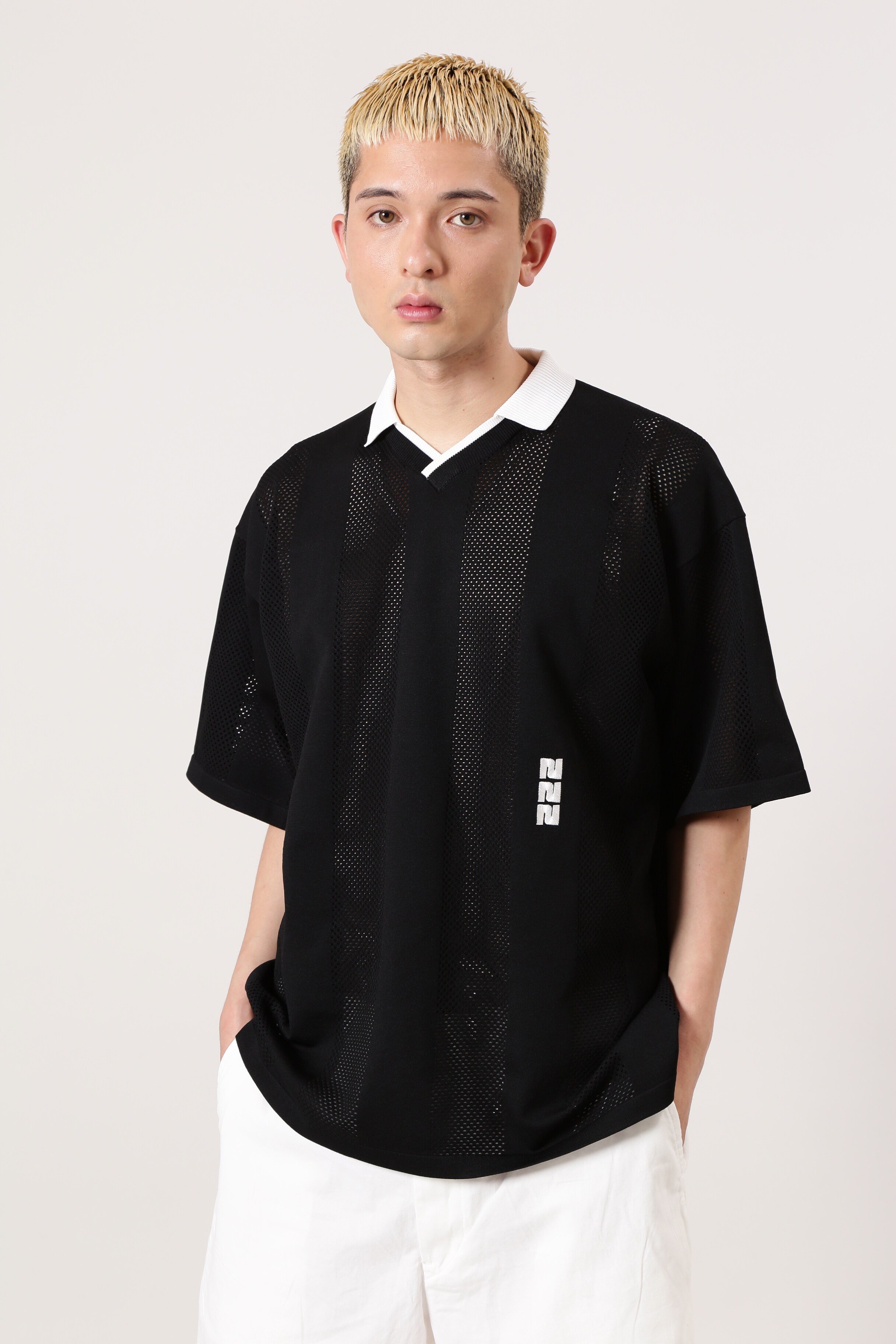 【SALE/90%OFF】NBB WEEKEND メッシュストライプ ニットポロ (UNISEX) エヌビービーウィークエンド トップス ニット ホワイト ブラック