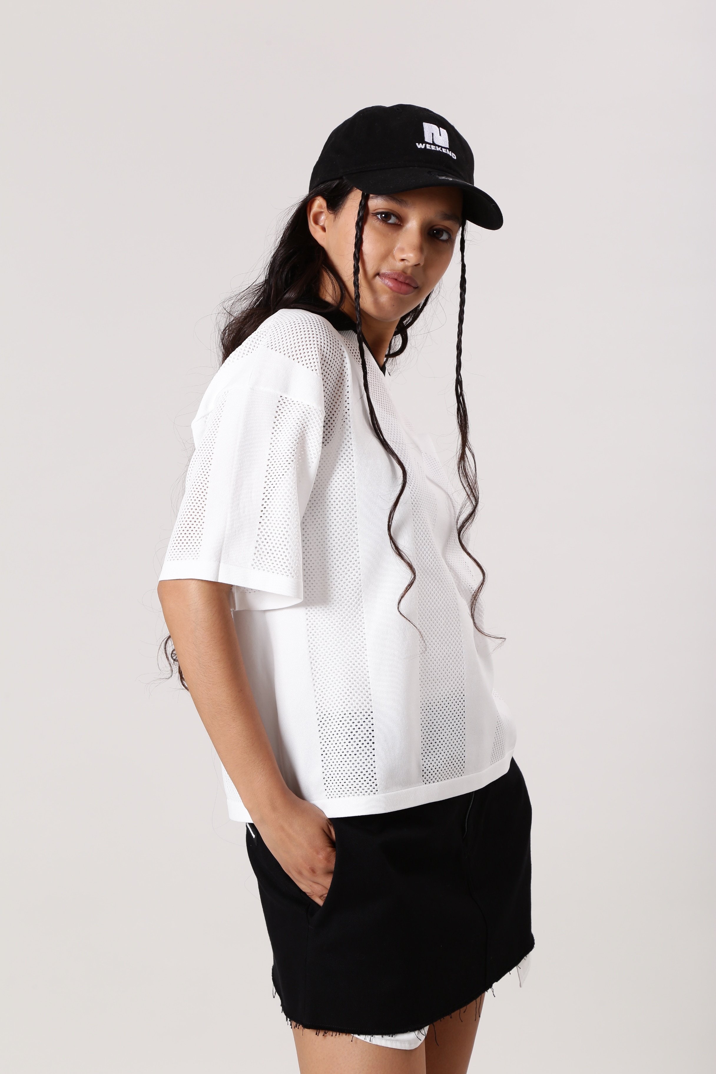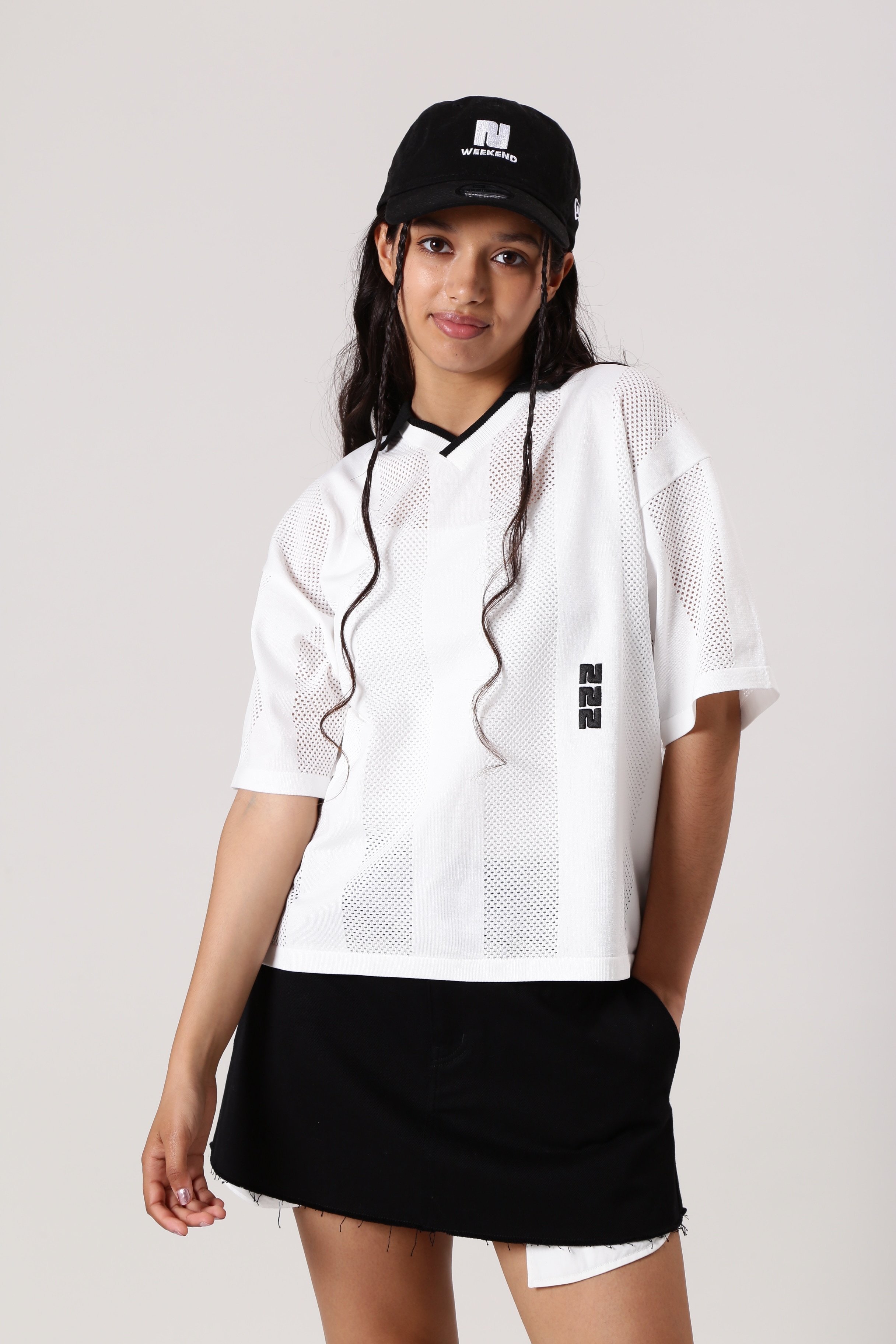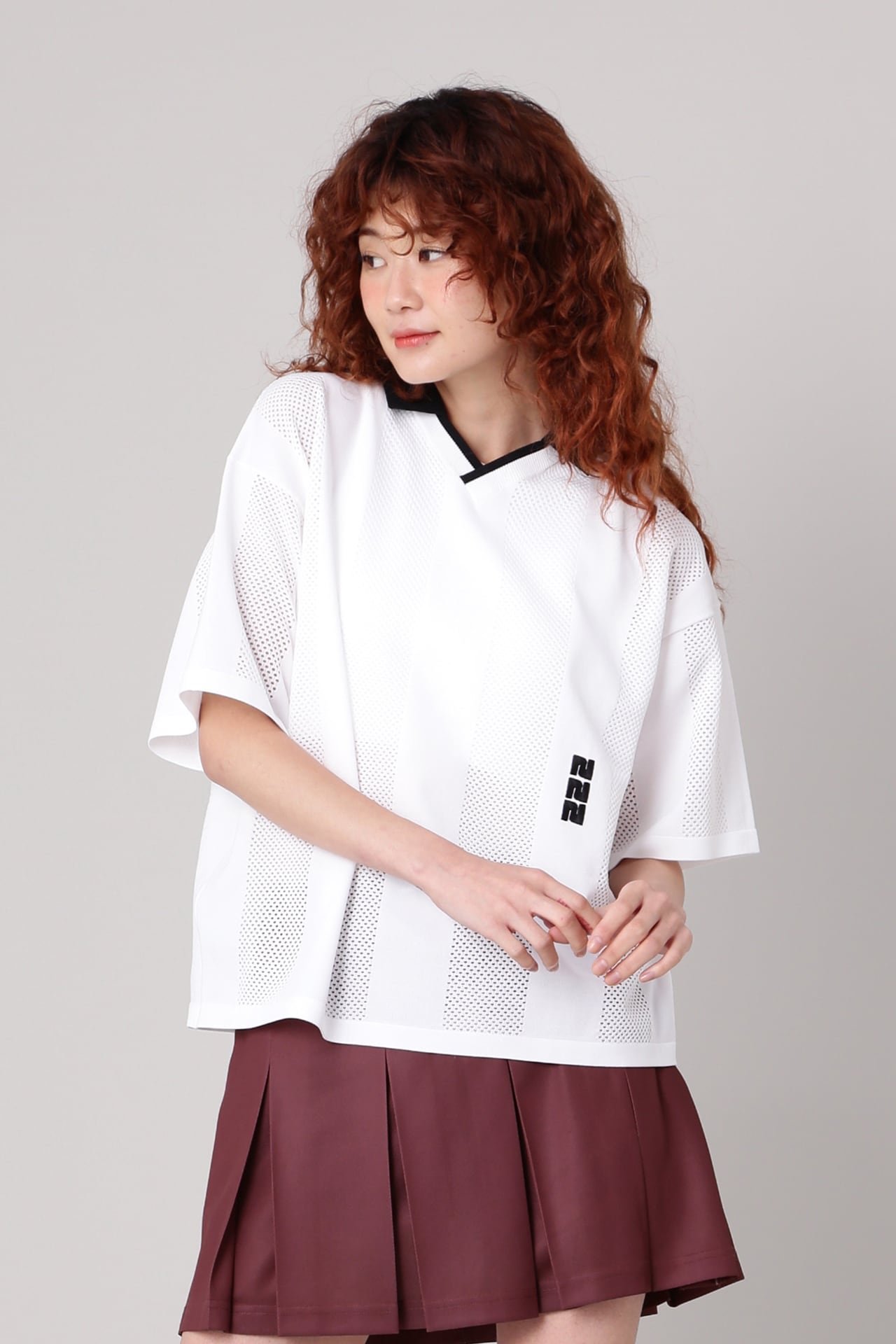 【SALE/90%OFF】NBB WEEKEND メッシュストライプ ニットポロ (UNISEX) エヌビービーウィークエンド トップス ニット ホワイト ブラック