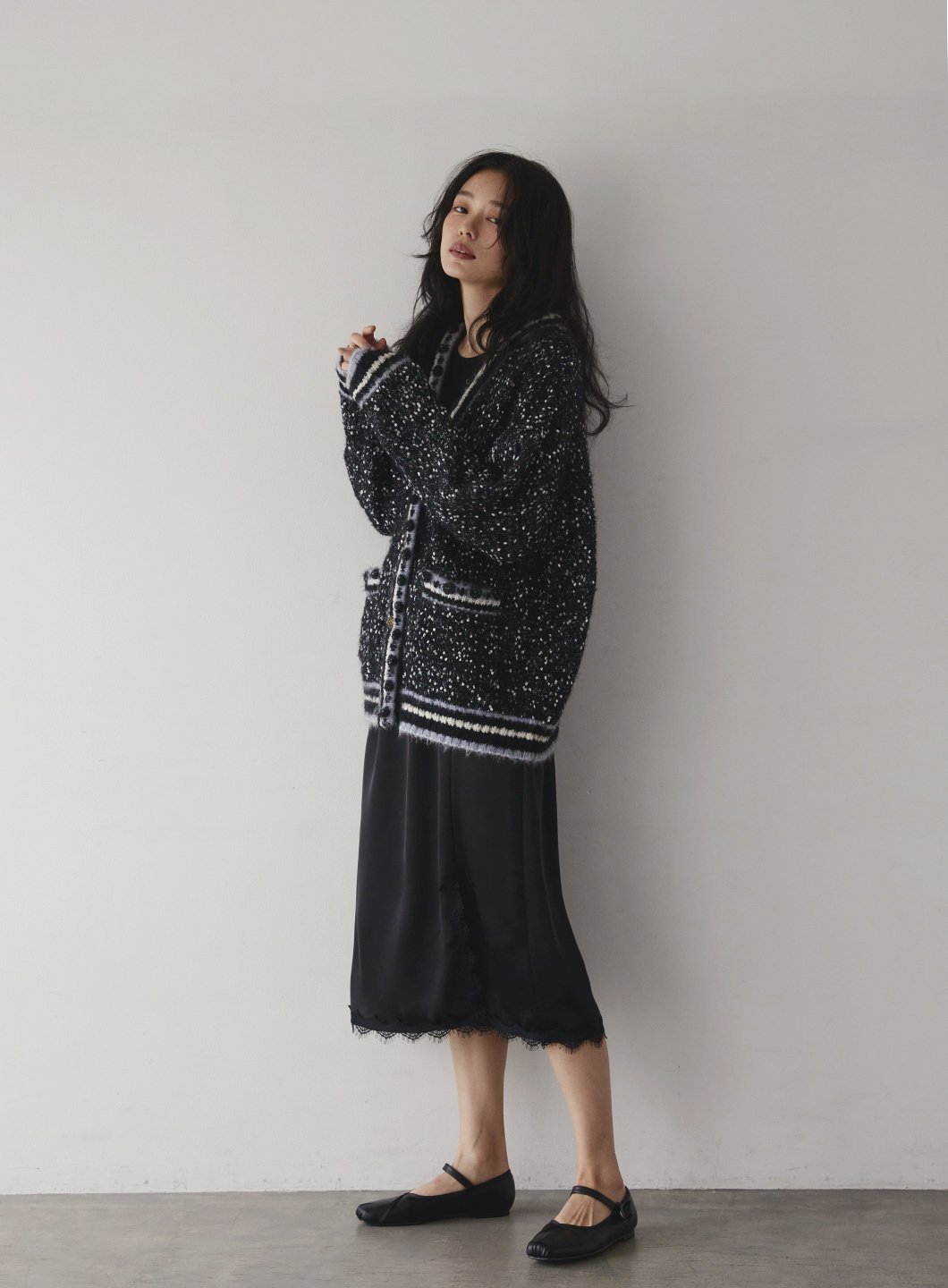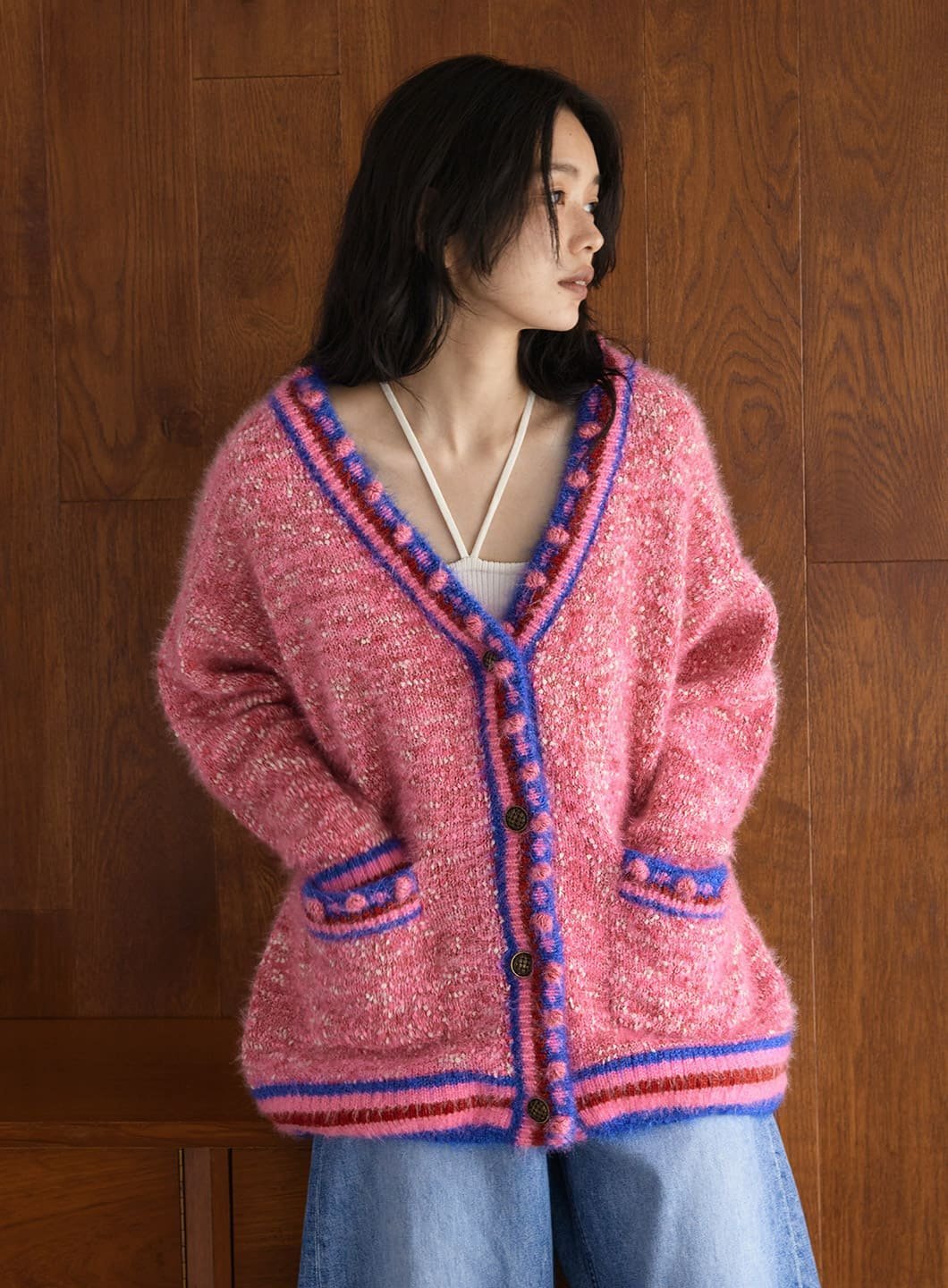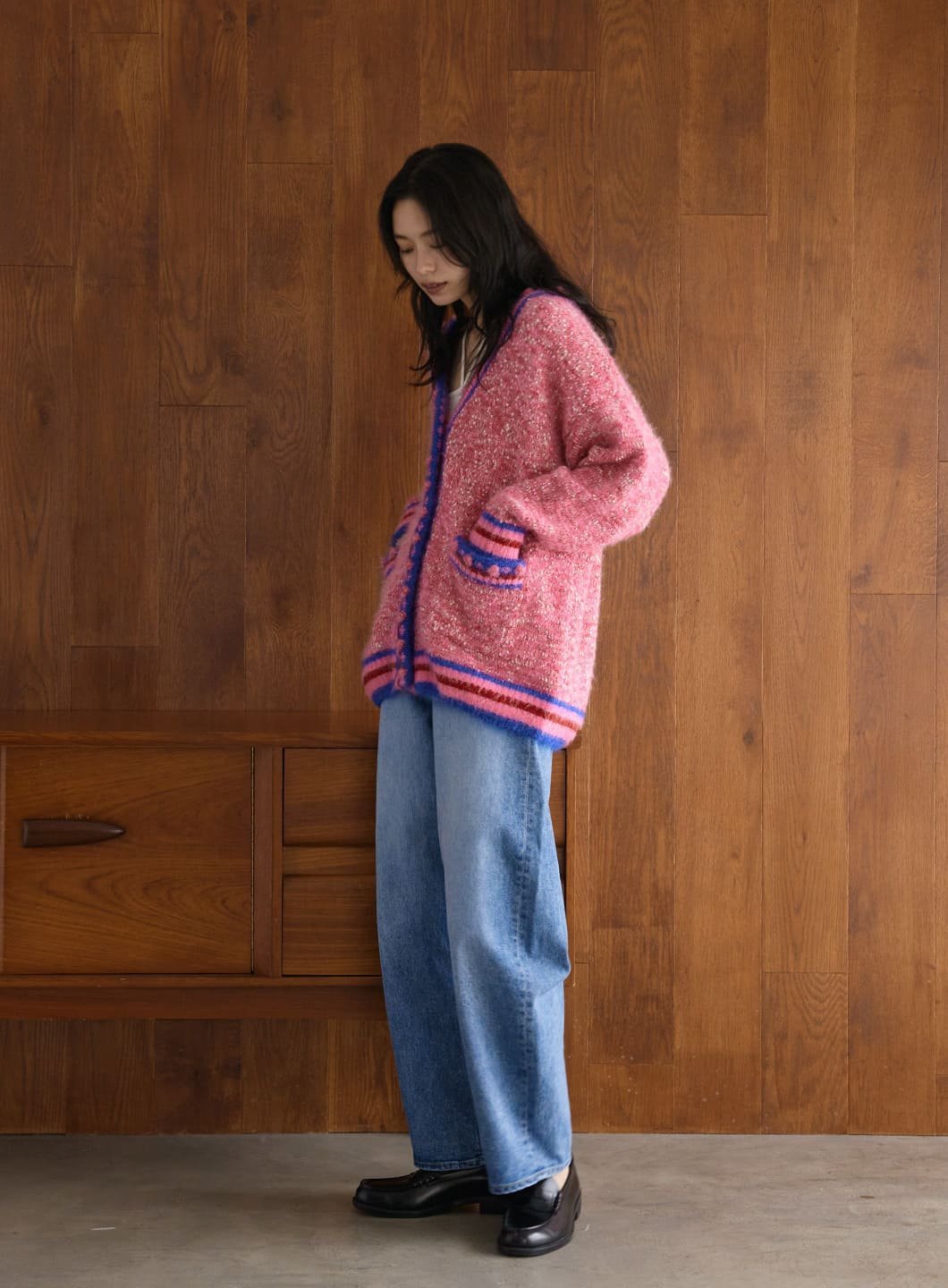 COEL ミックスシャギービッグカーディガン コエル トップス カーディガン ブラック ホワイト ピンク【送料無料】