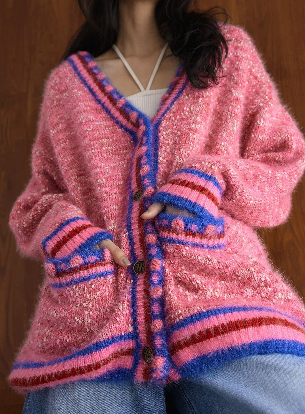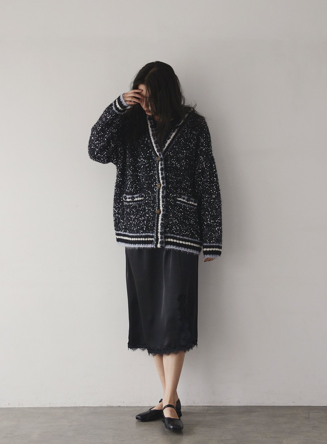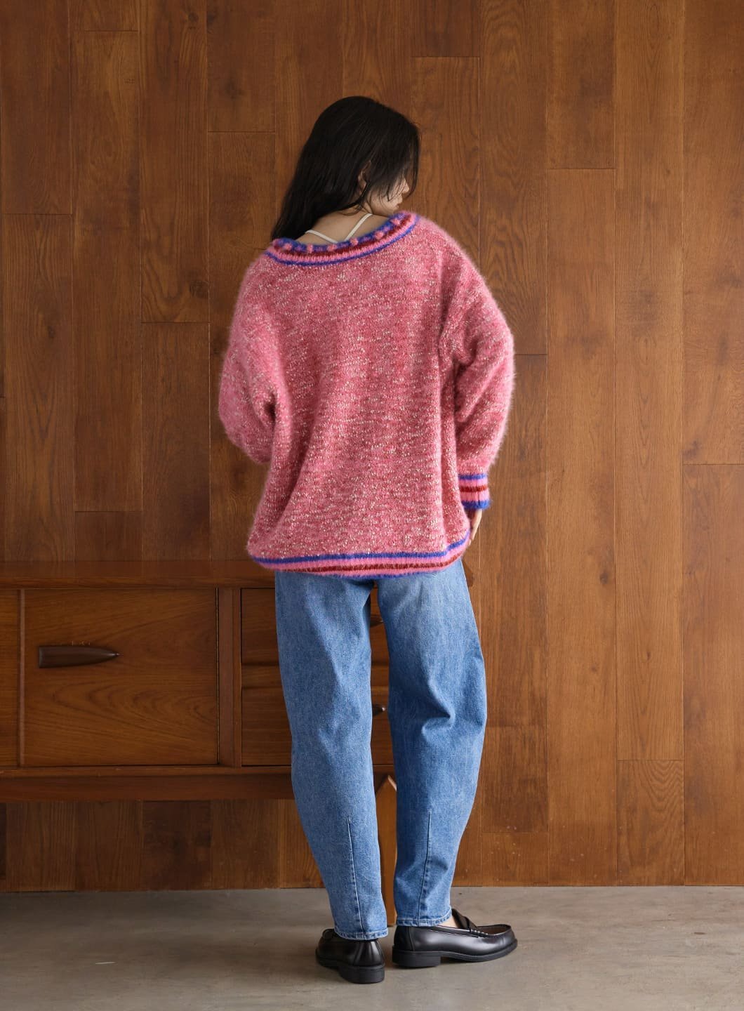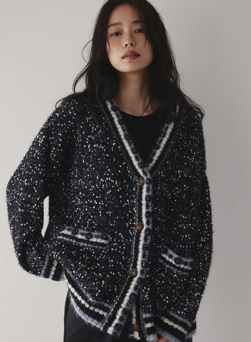 COEL ミックスシャギービッグカーディガン コエル トップス カーディガン ブラック ホワイト ピンク【送料無料】