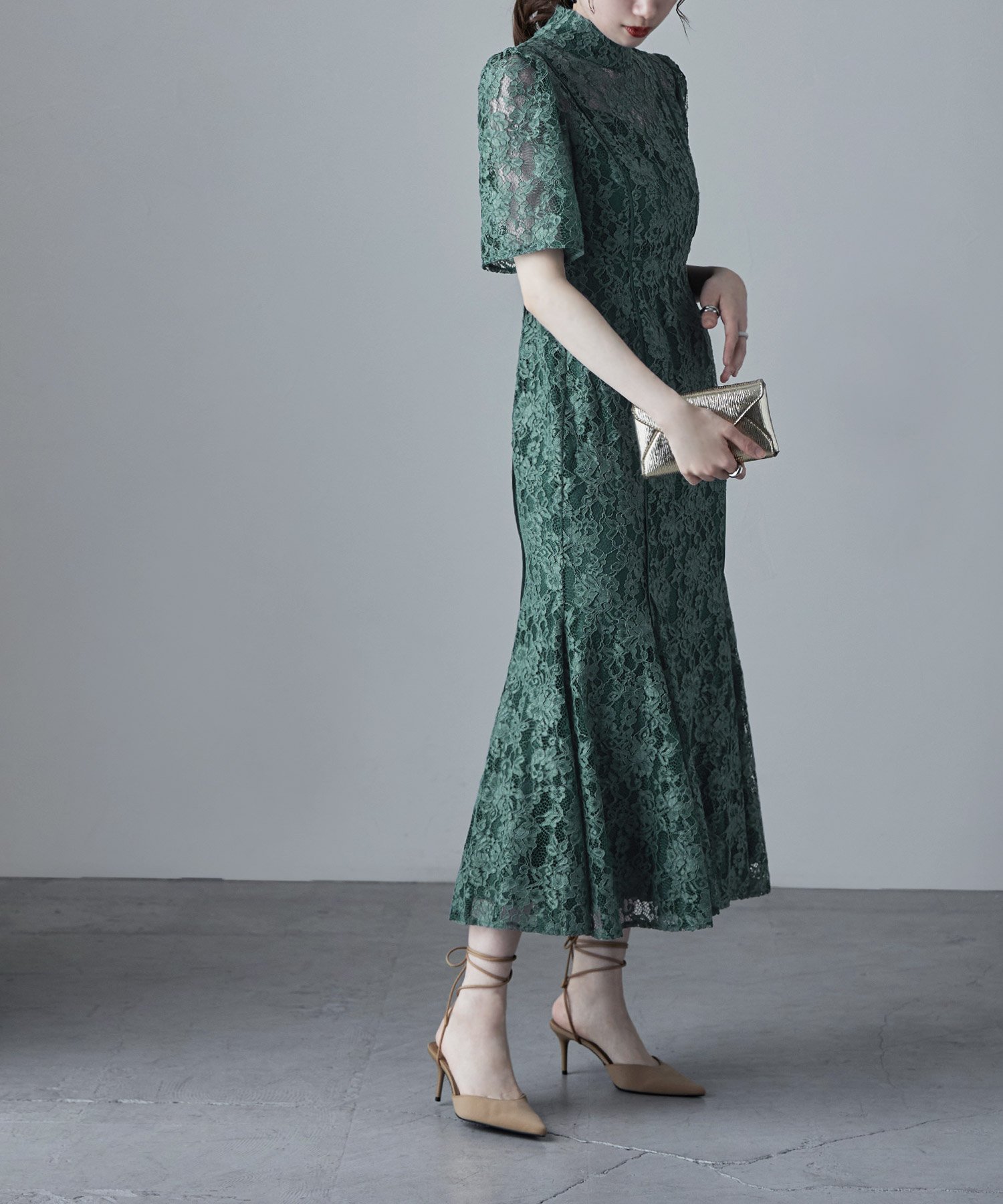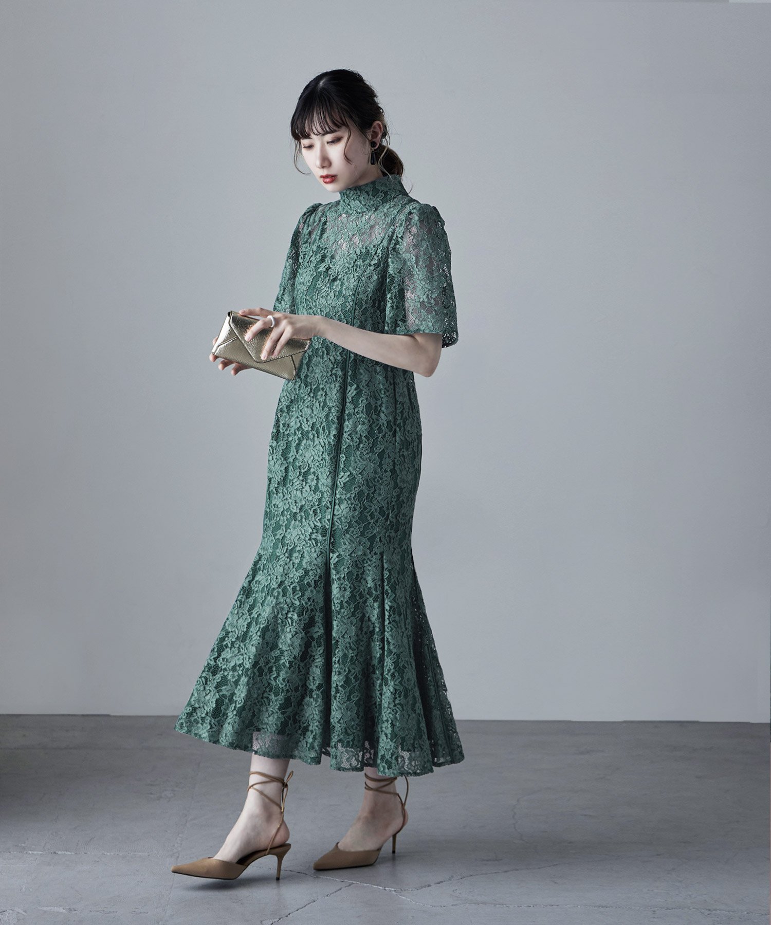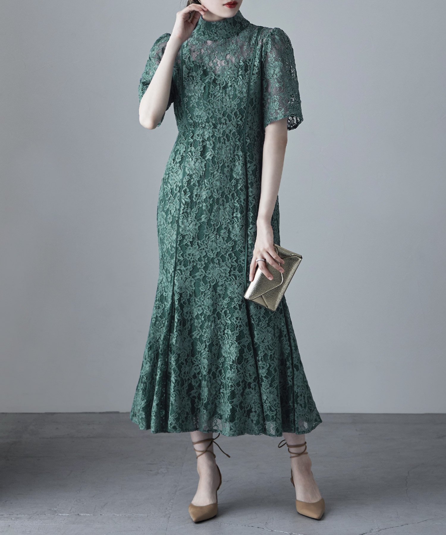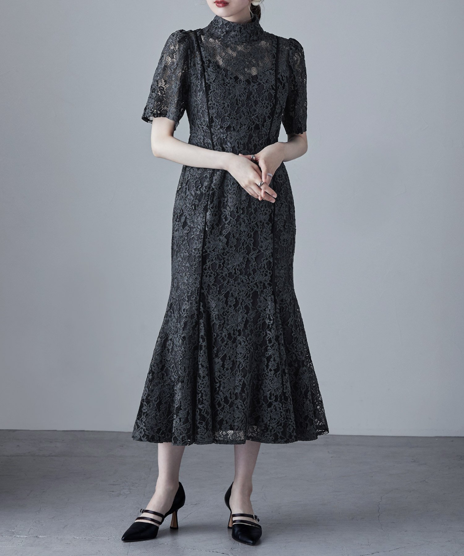 etoll. レースマーメイドラインドレス ビーフラット ワンピース・ドレス ドレス グリーン グレー ブラック【送料無料】