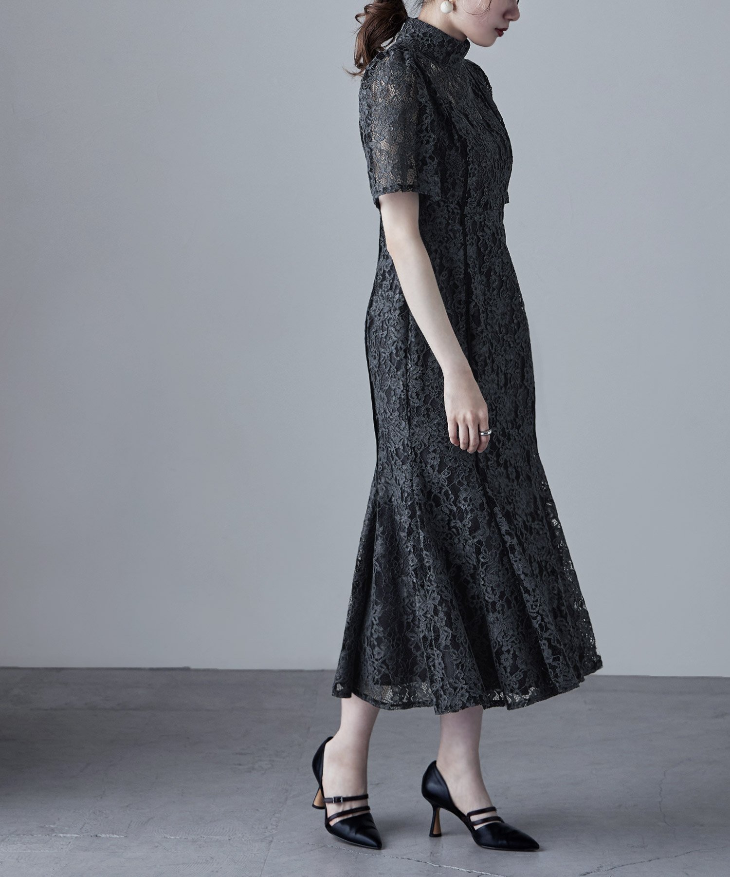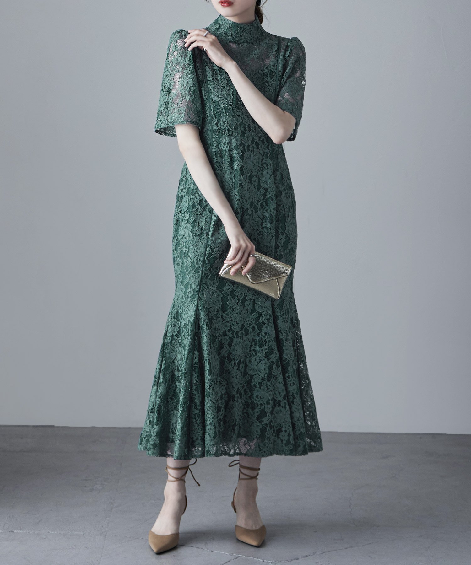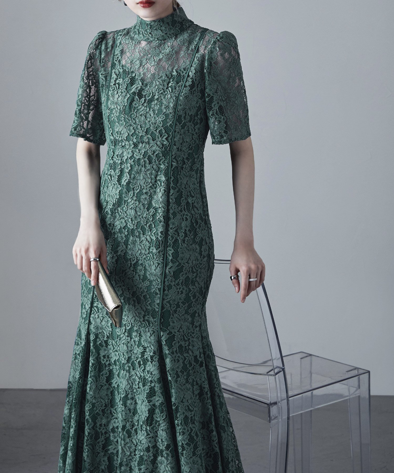 etoll. レースマーメイドラインドレス ビーフラット ワンピース・ドレス ドレス グリーン グレー ブラック【送料無料】