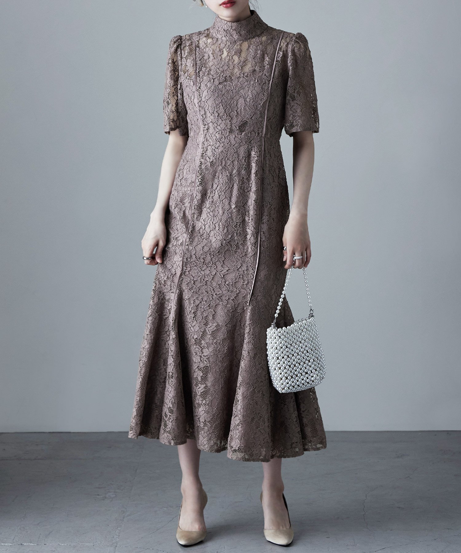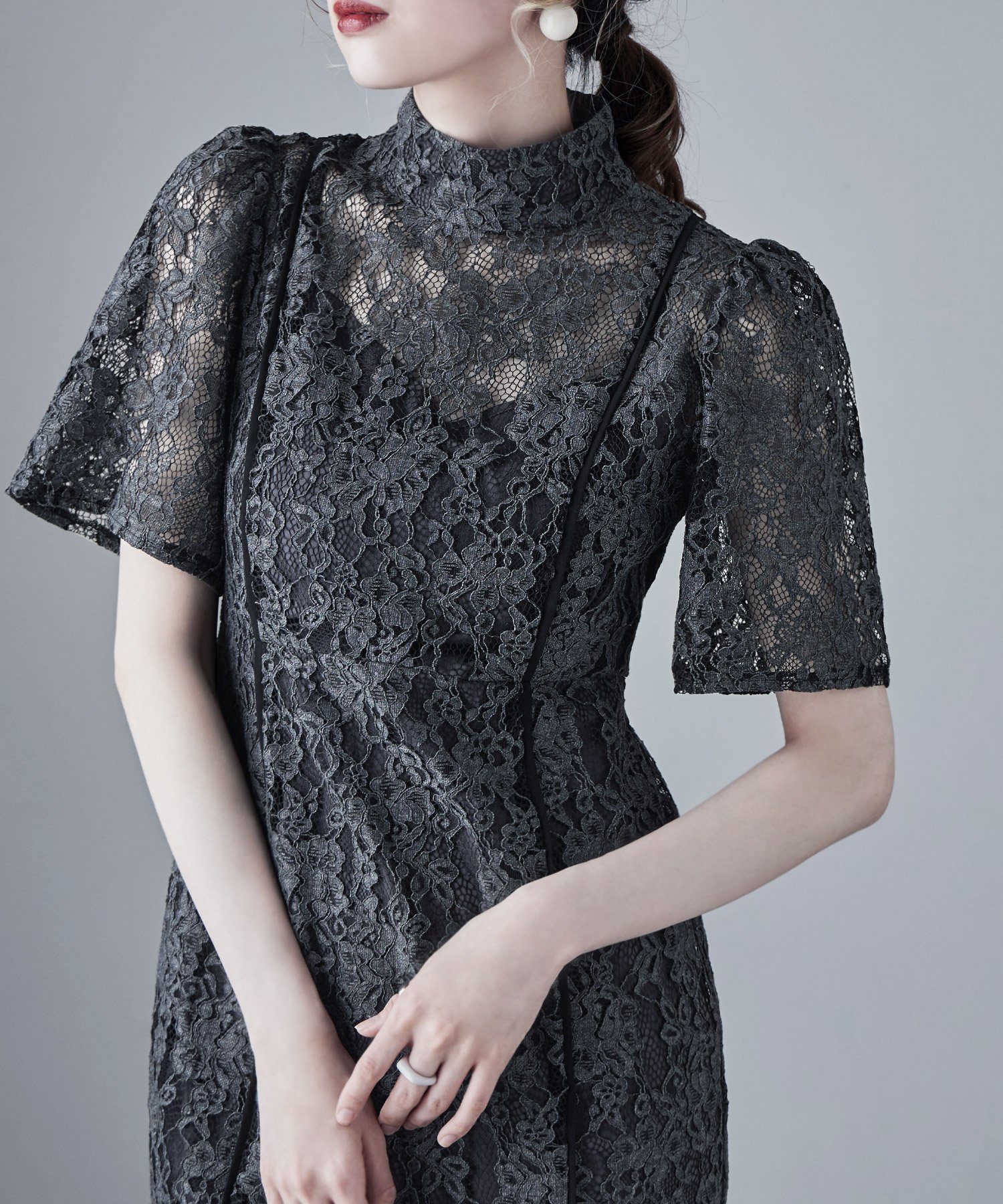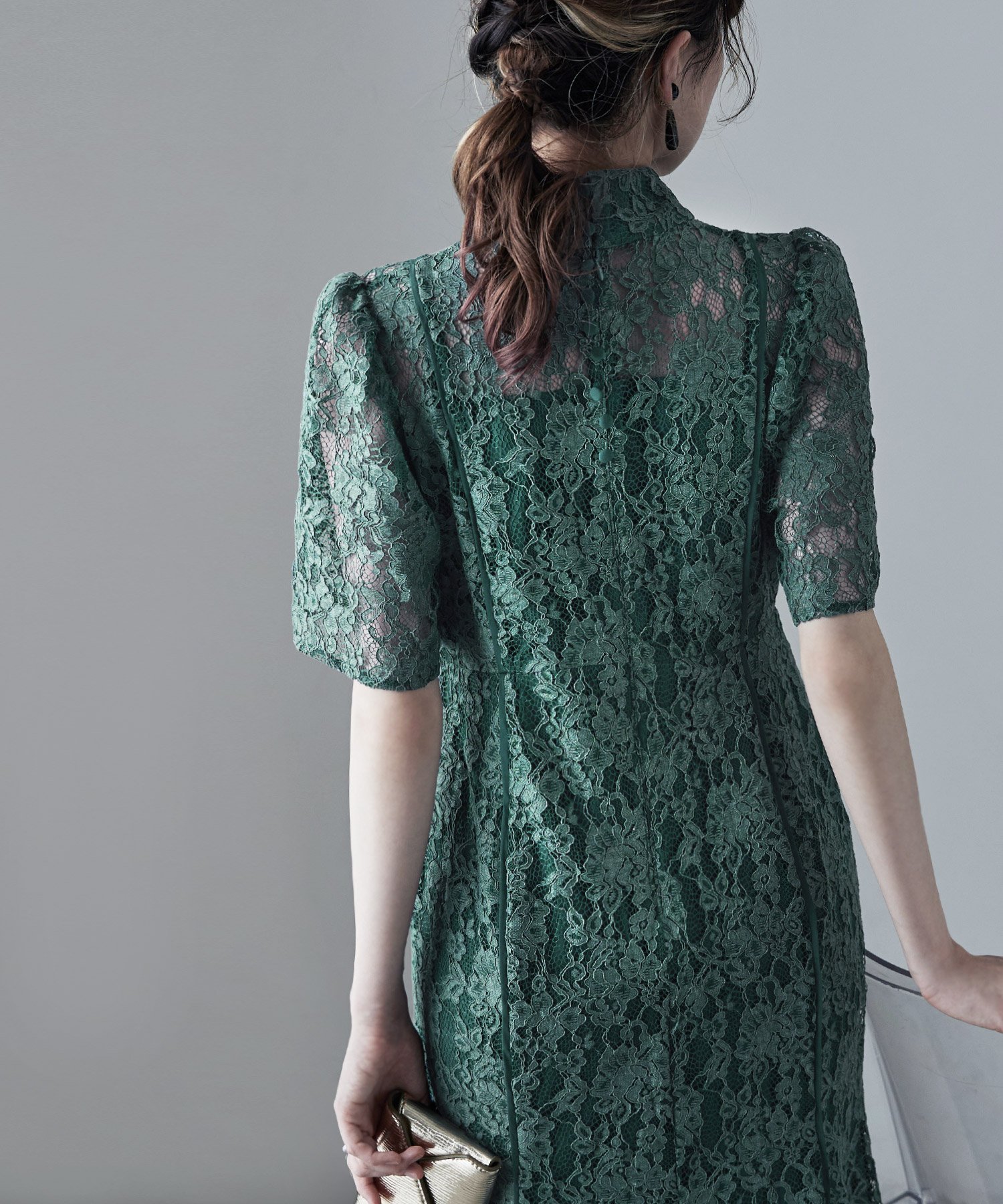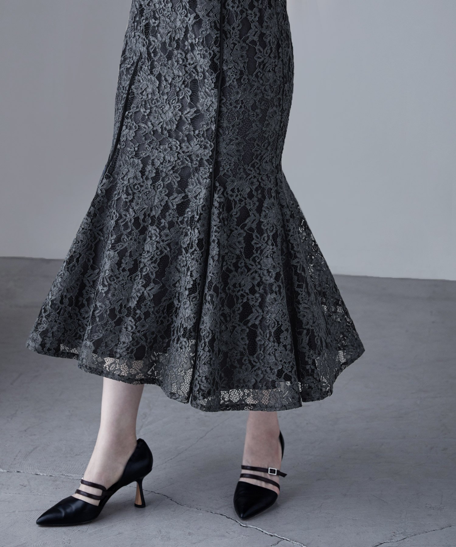 etoll. レースマーメイドラインドレス ビーフラット ワンピース・ドレス ドレス グリーン グレー ブラック【送料無料】