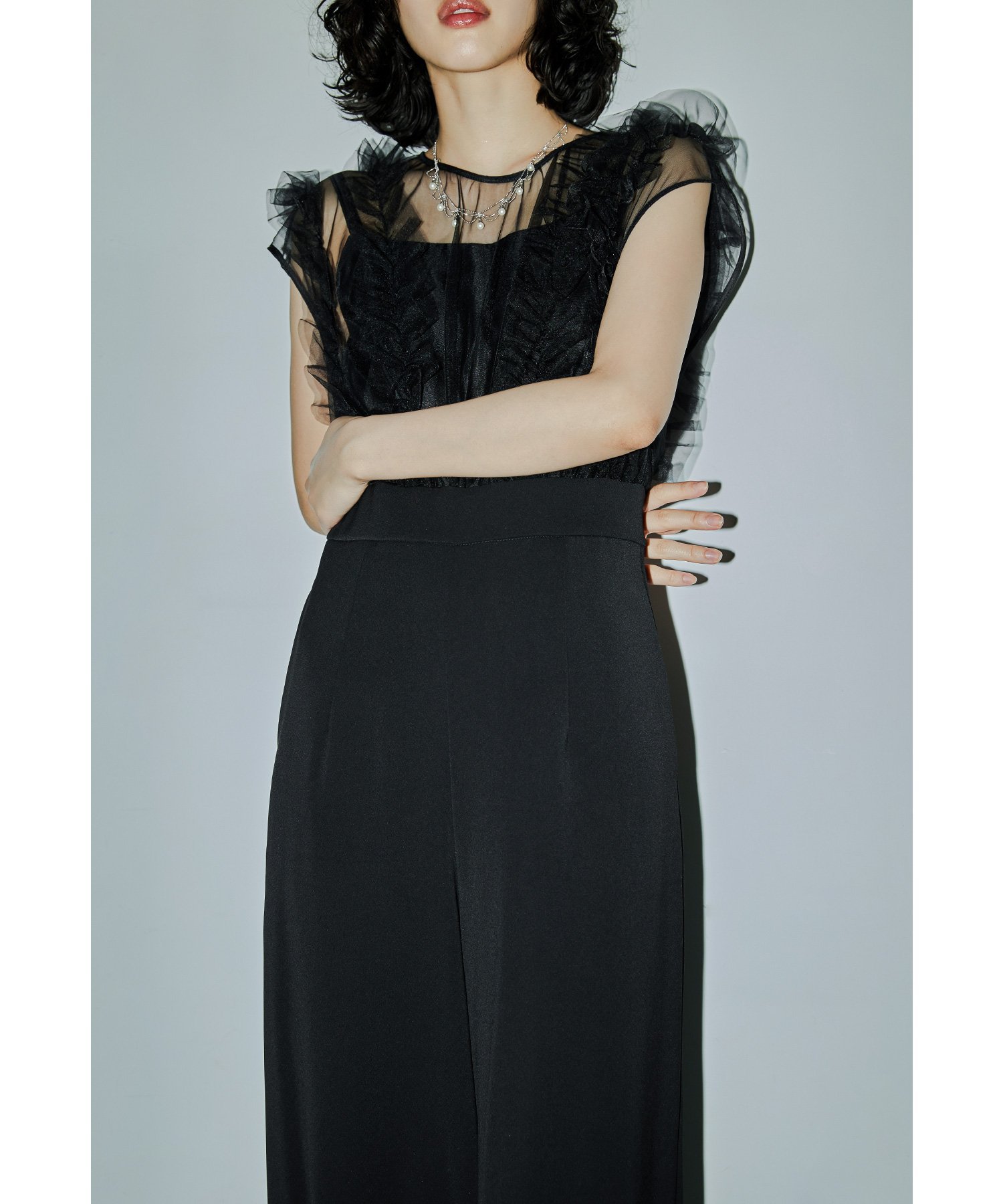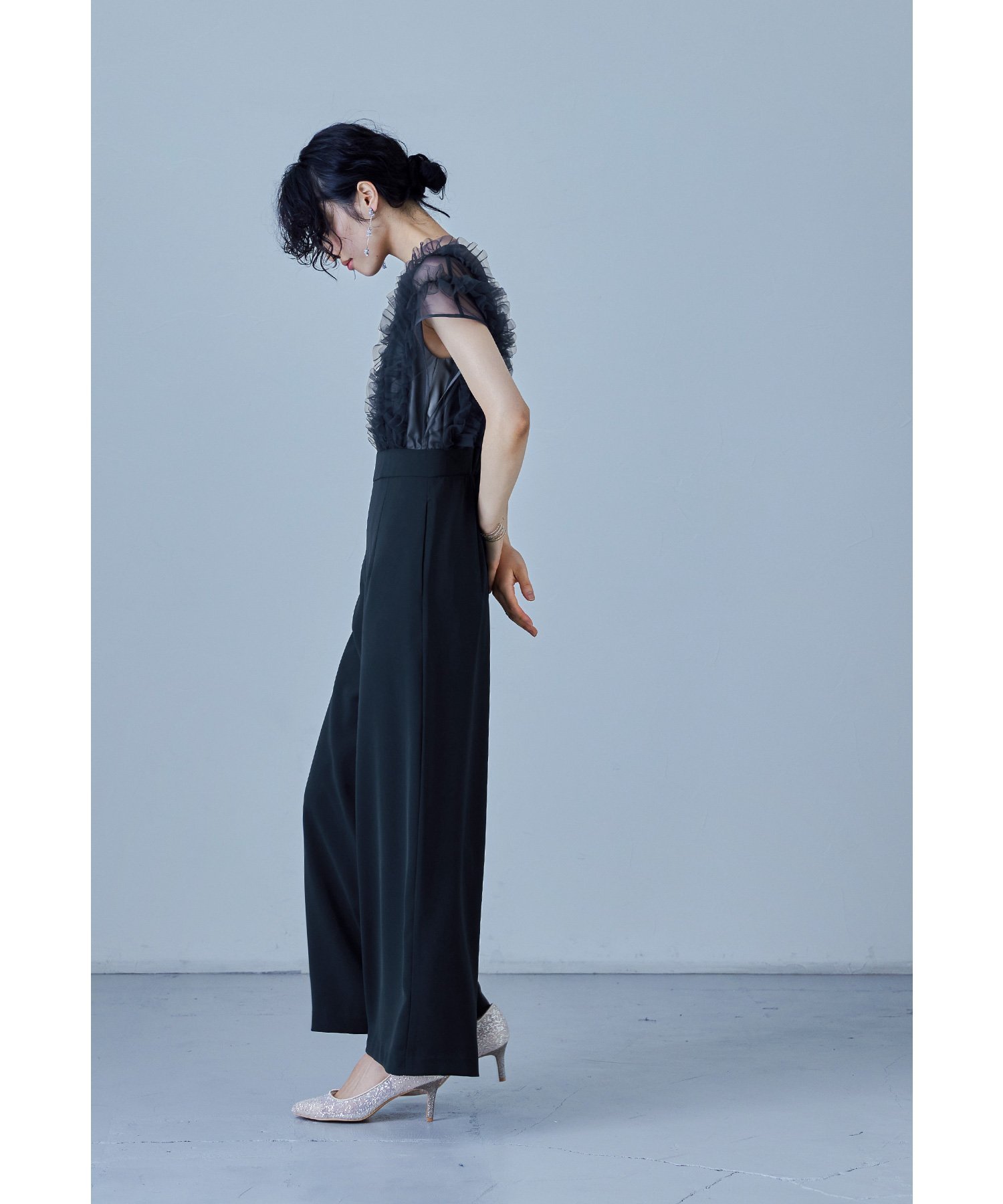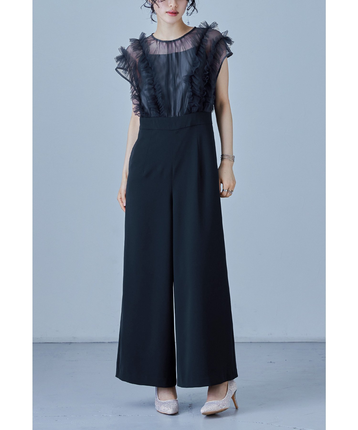 niana チュールドッキングパンツドレス オールインワン パーティードレス 結婚式 同窓会 ビーフラット ワンピース・ドレス ドレス ブラック ネイビー【送料無料】