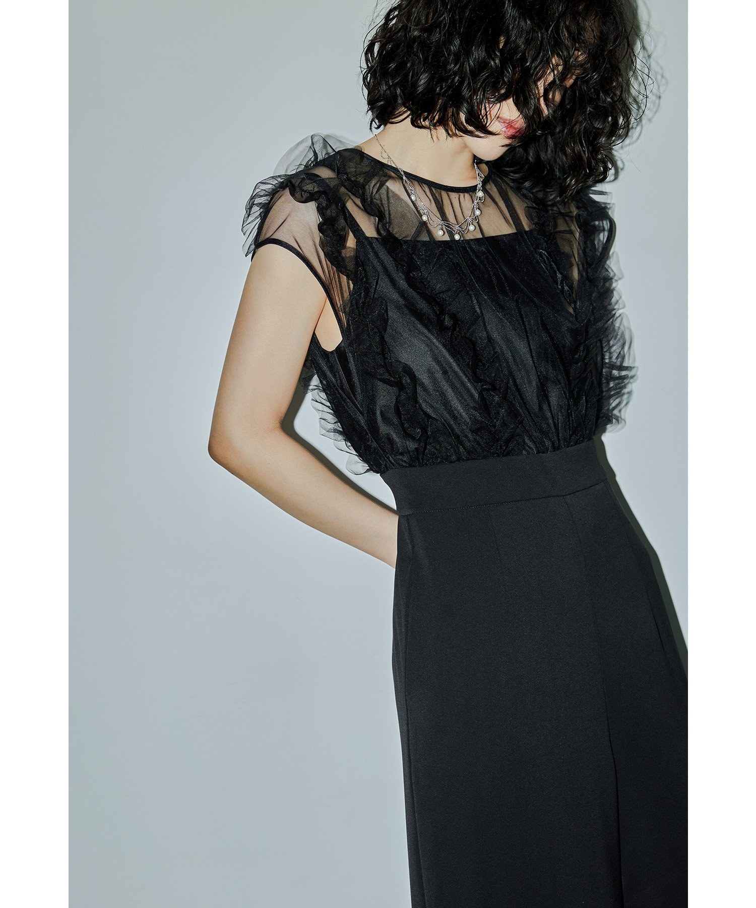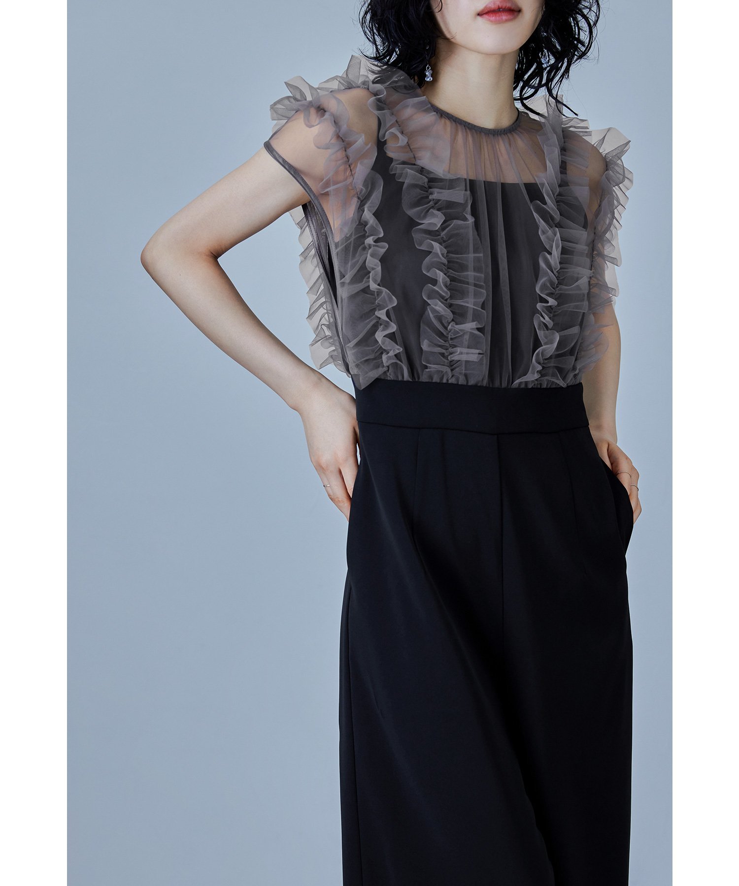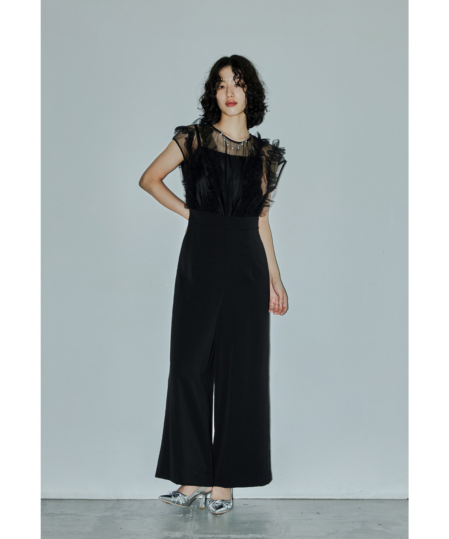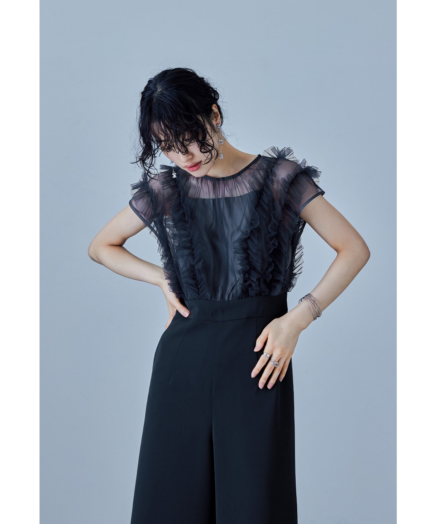 niana チュールドッキングパンツドレス オールインワン パーティードレス 結婚式 同窓会 ビーフラット ワンピース・ドレス ドレス ブラック ネイビー【送料無料】