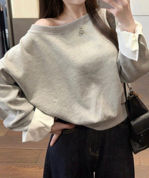 【SALE/34%OFF】ABITOKYO 袖異素材ドッキングオフショルスウェットプルオーバー アビトーキョー トップス スウェット・トレーナー グレー ブラック