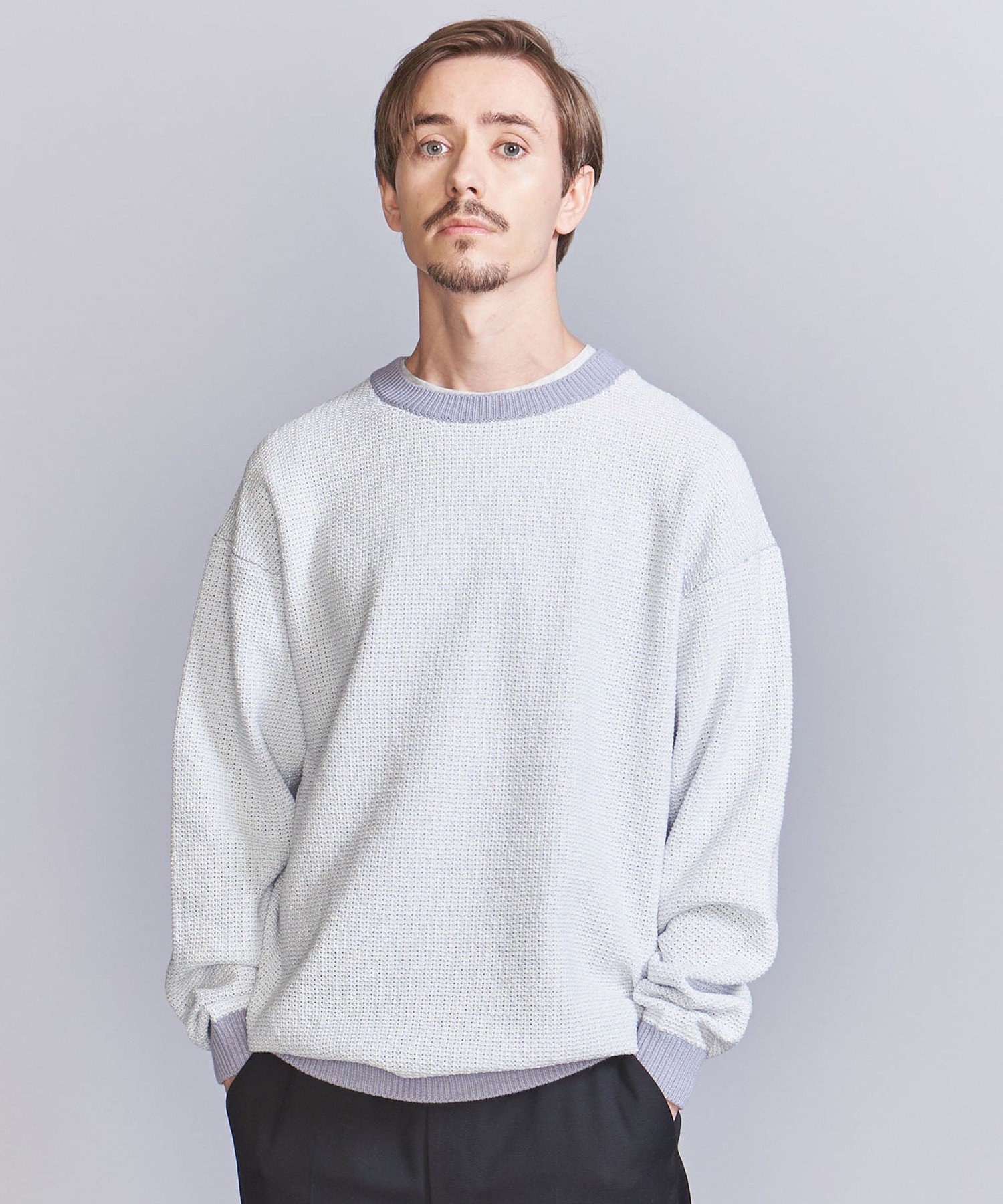【SALE/50%OFF】BEAUTY&YOUTH UNITED ARROWS PLAID パターン クルーネック ニット ユナイテッドアローズ アウトレット トップス ニット ブルー グレー ベージュ【送料無料】