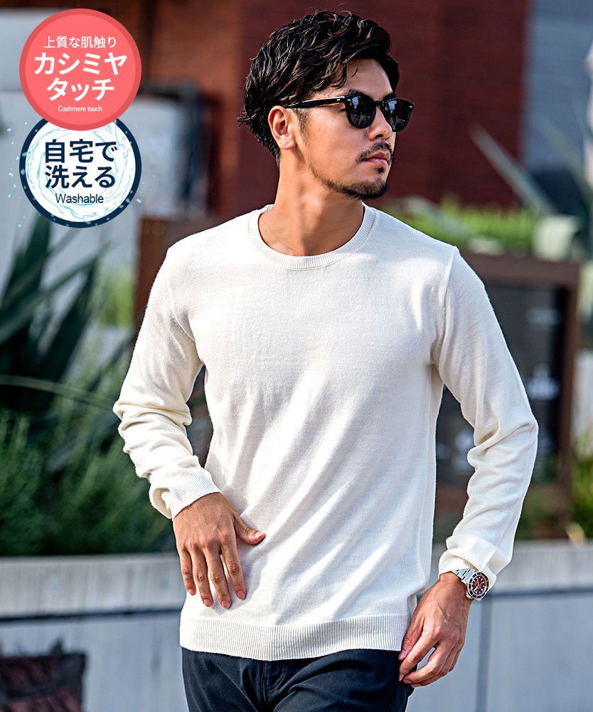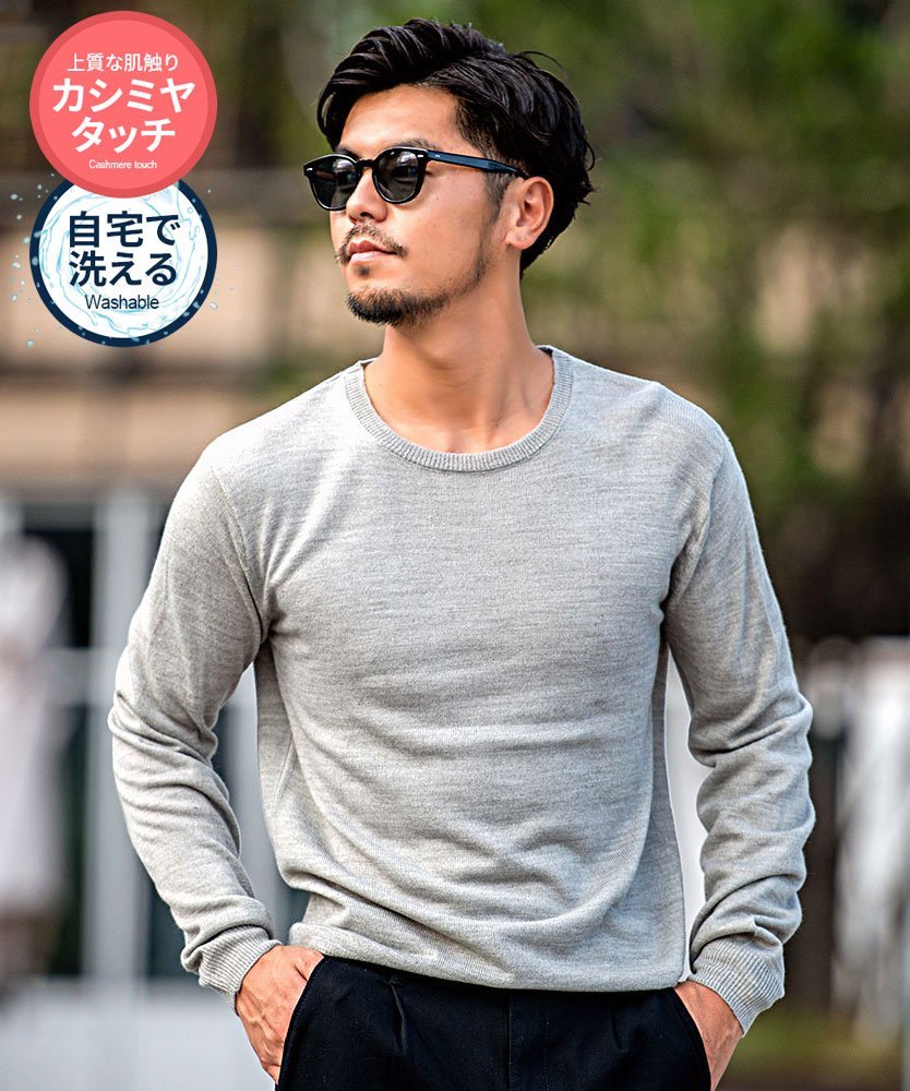 CavariA CavariA カシミアタッチクルーネック長袖ニット セーター シルバーバレット トップス ニット グレー ベージュ ブラック ネイビー ホワイト