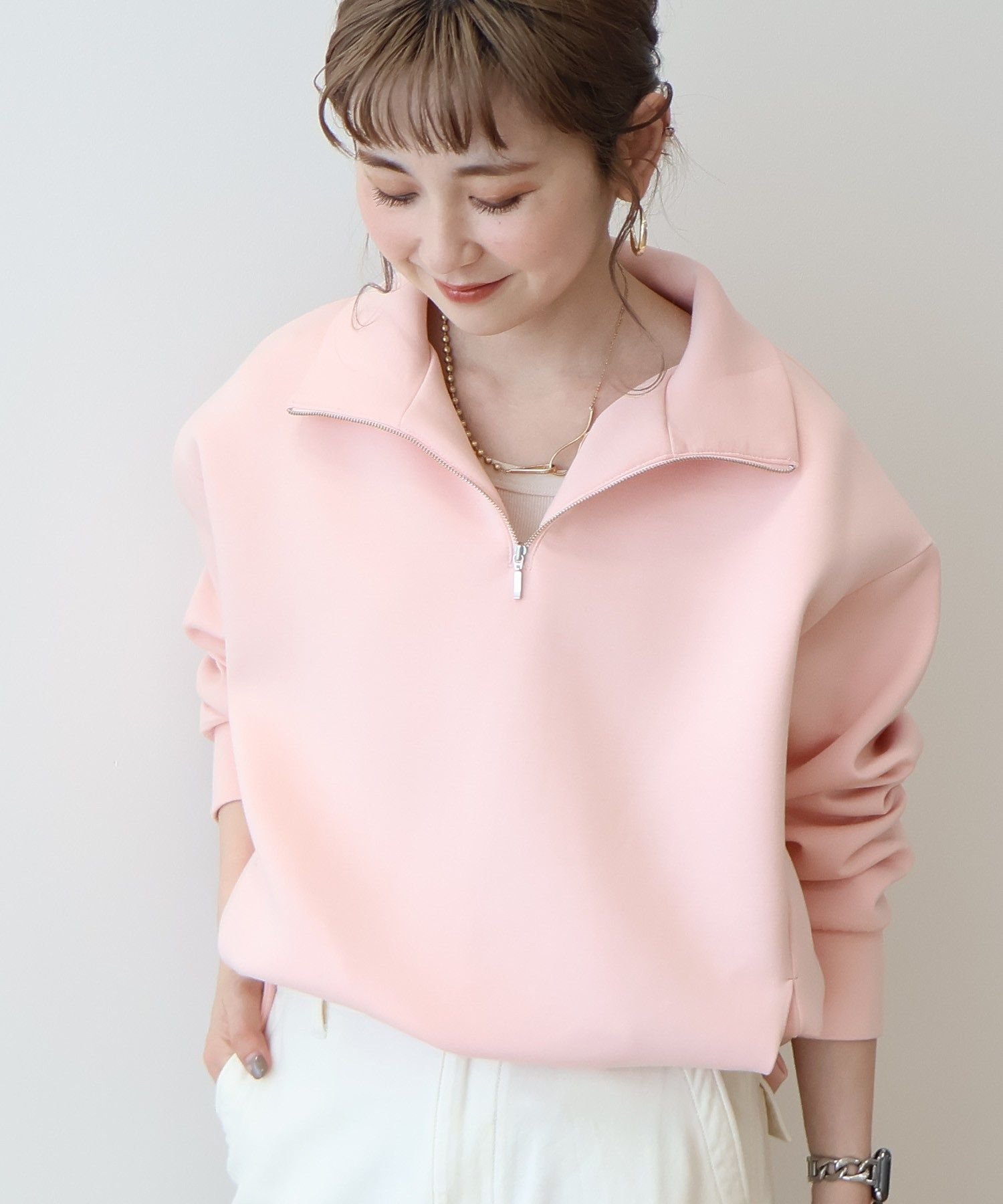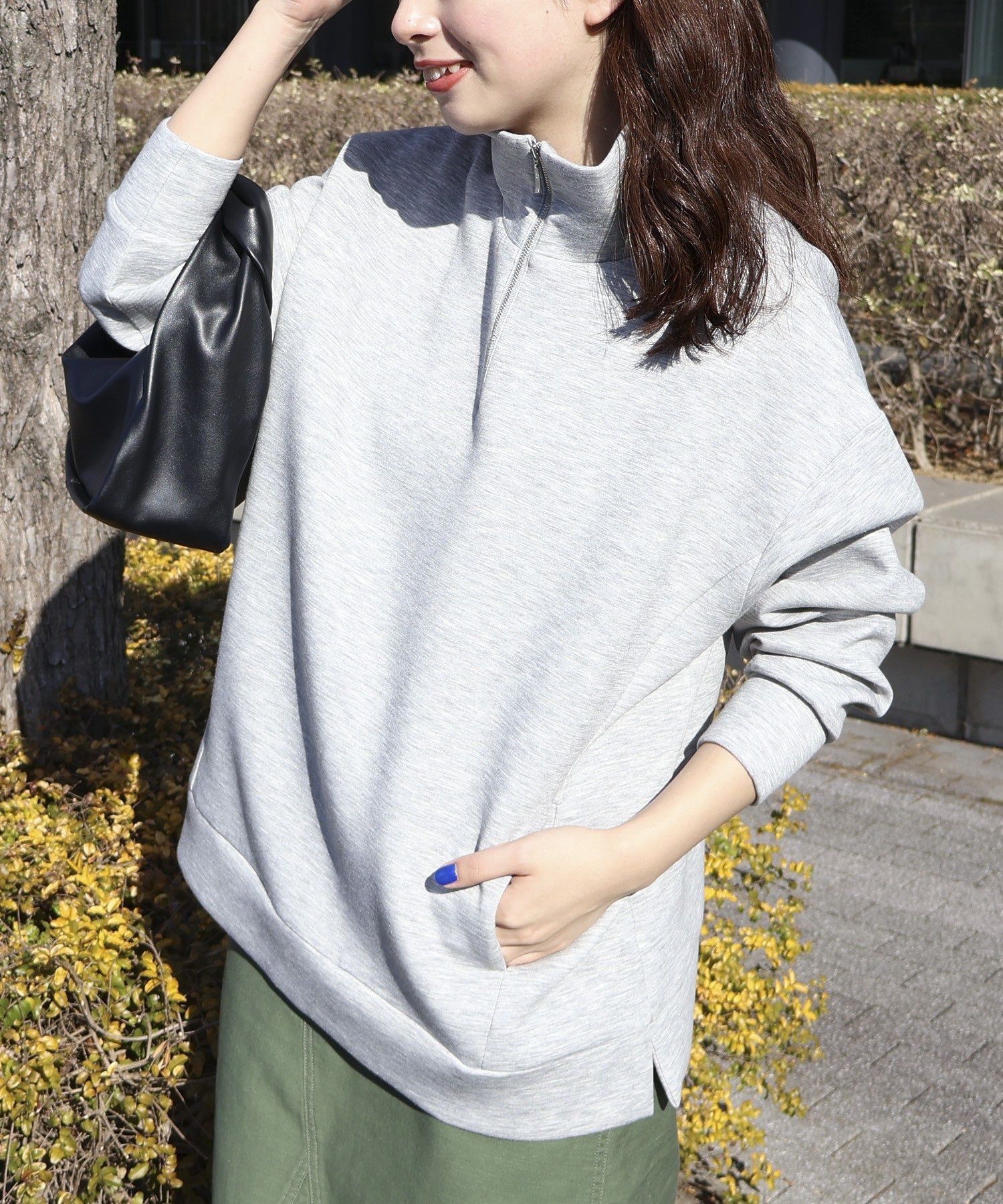 AMERICAN HOLIC ハーフZIPポンチプルオーバー アメリカン ホリック トップス スウェット・トレーナー ピンク グレー ホワイト ネイビー グリーン
