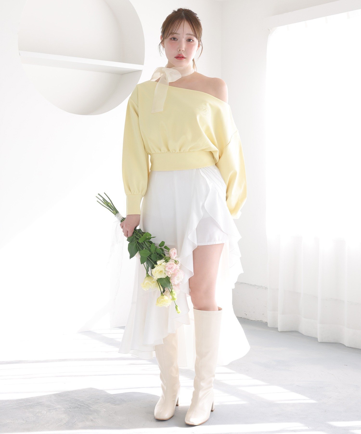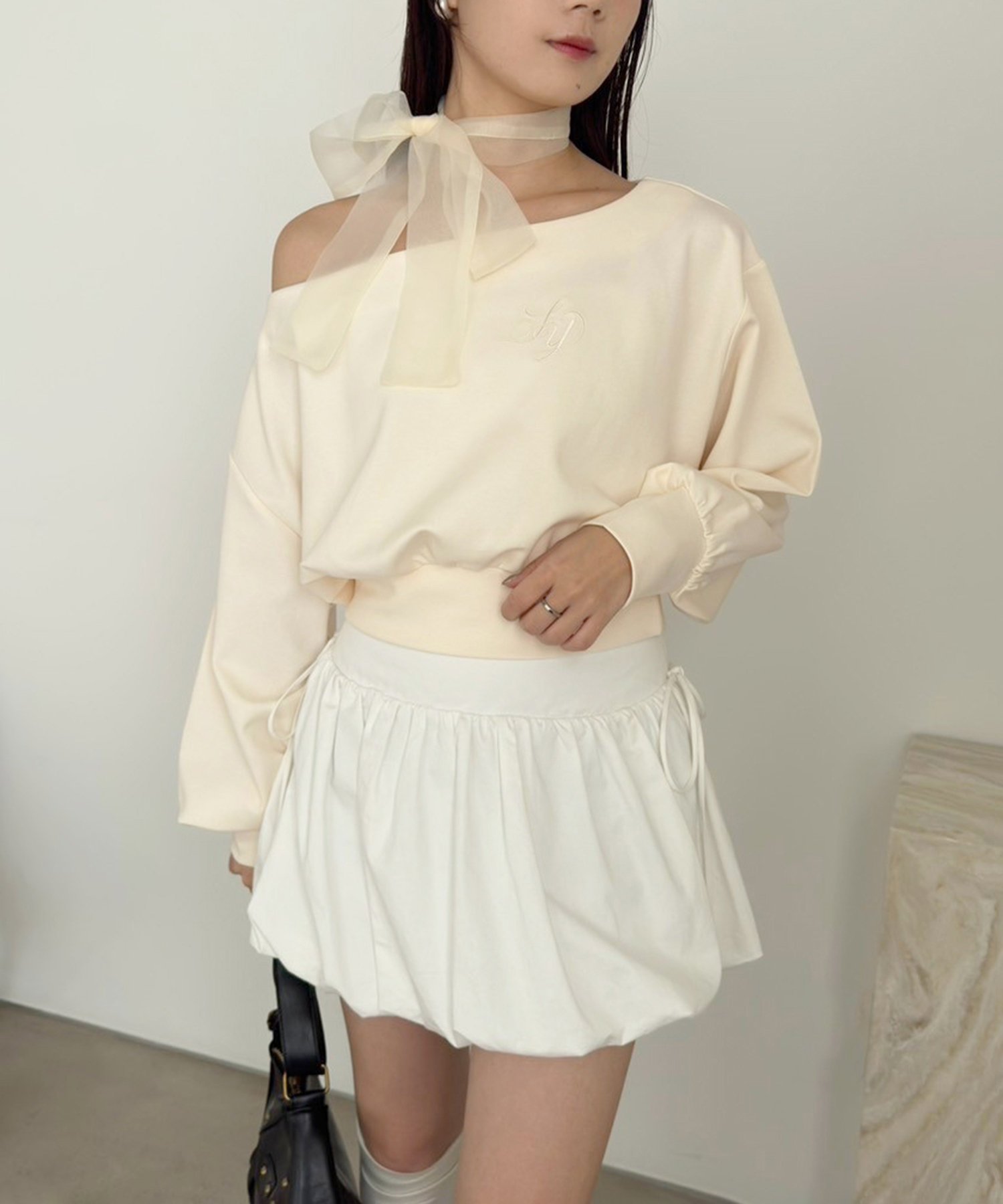 one after another NICE CLAUP スカーフ付きワンショルトップス ワンアフターアナザー ナイスクラップ トップス その他のトップス ホワイト グレー ネイビー イエロー ベージュ【送料無料】