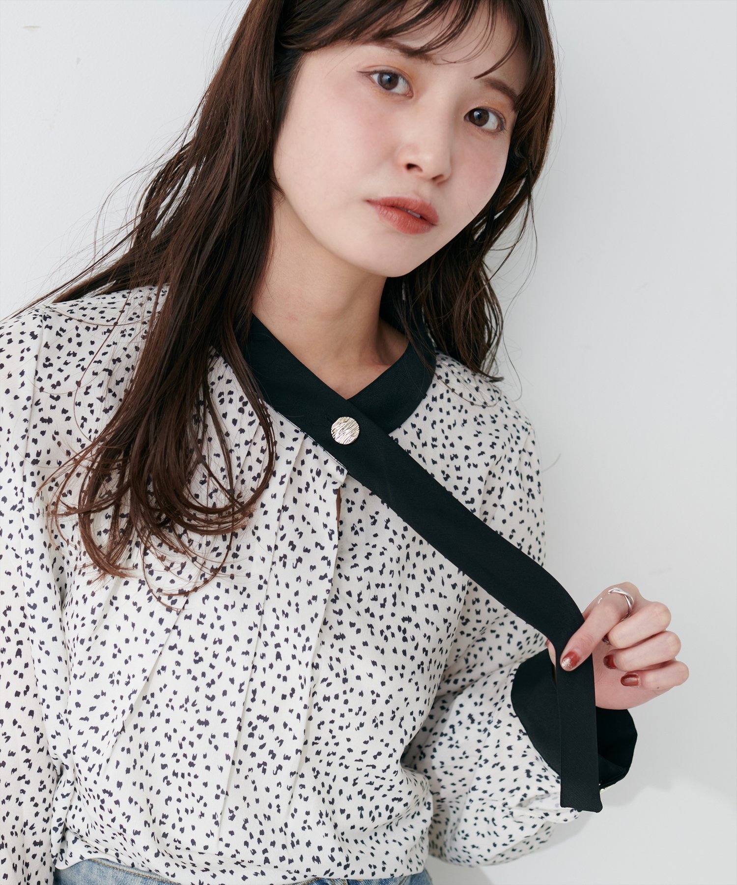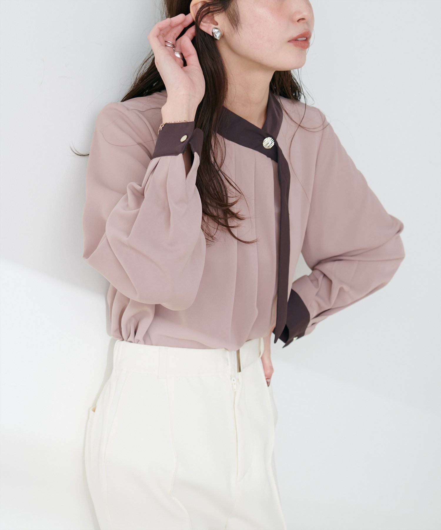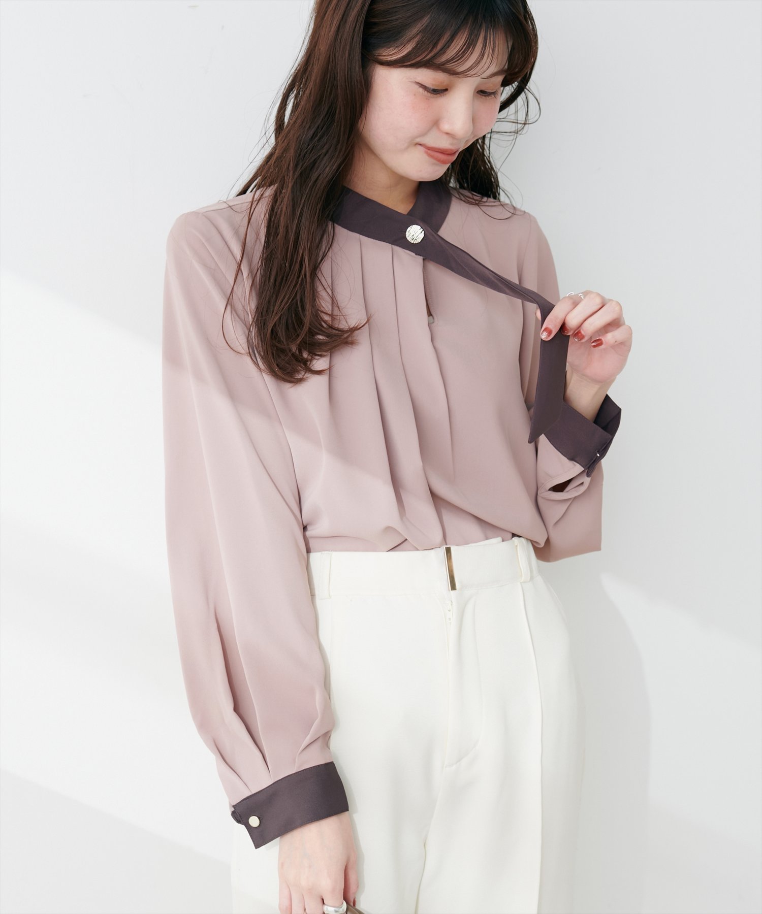 natural couture 金釦アシメネックボータイブラウス ナチュラルクチュール トップス シャツ・ブラウス ピンク ホワイト ネイビー【送料無料】