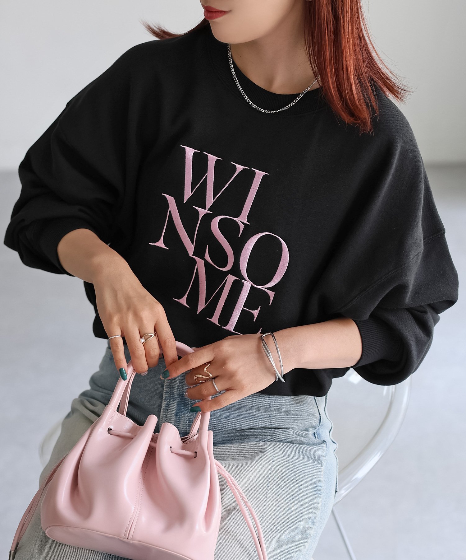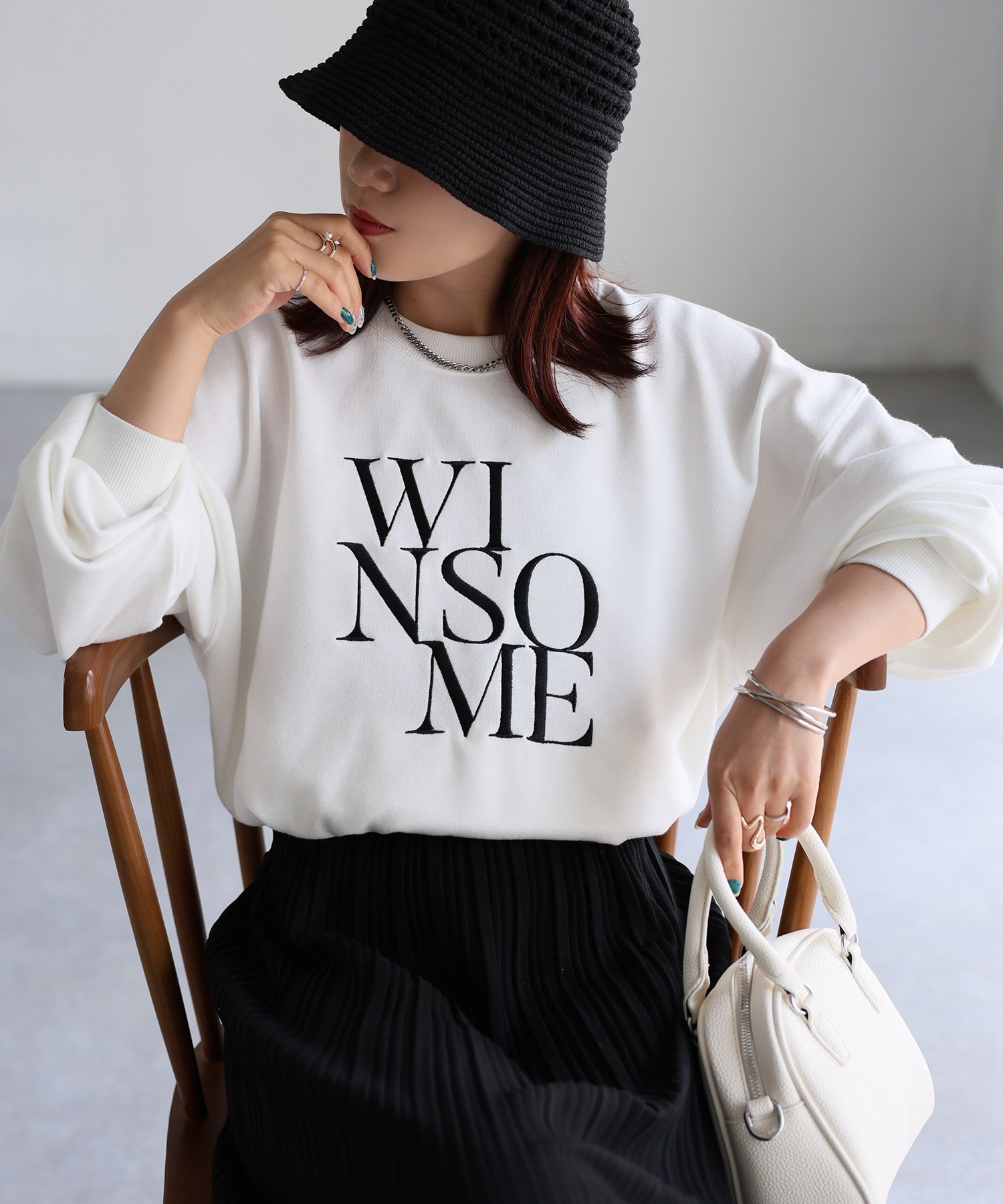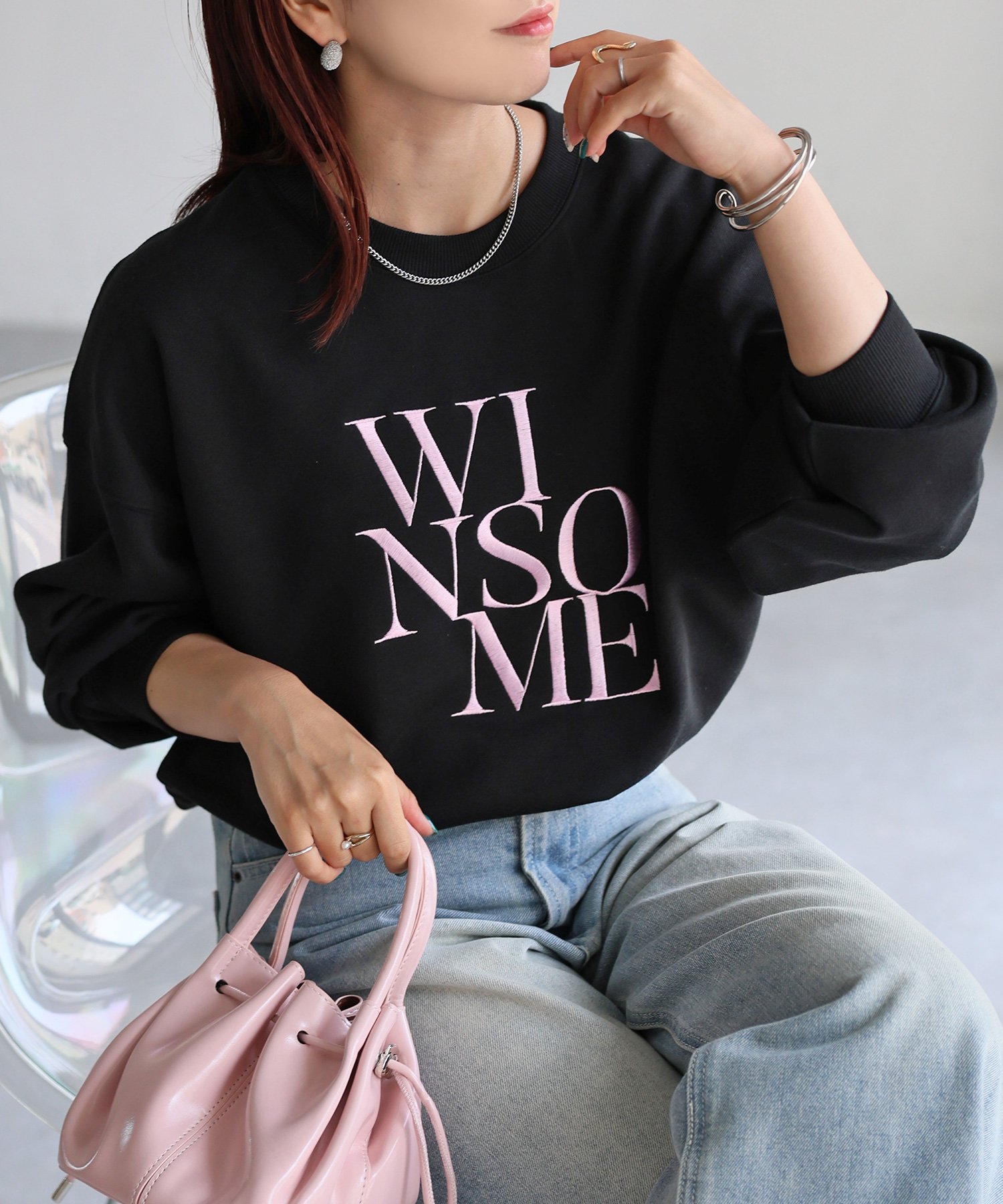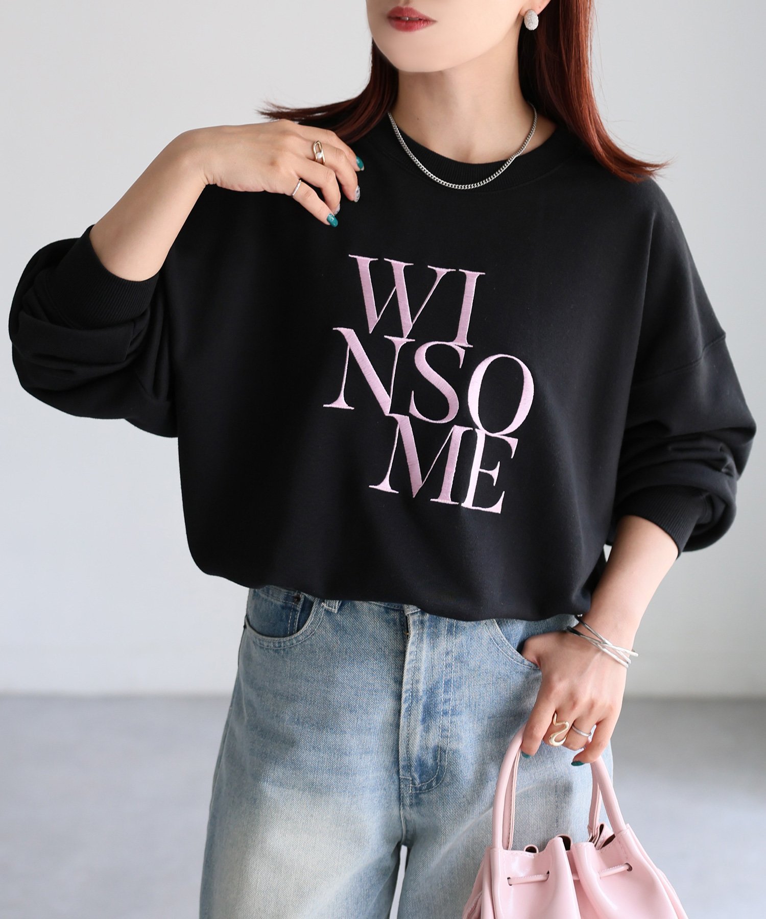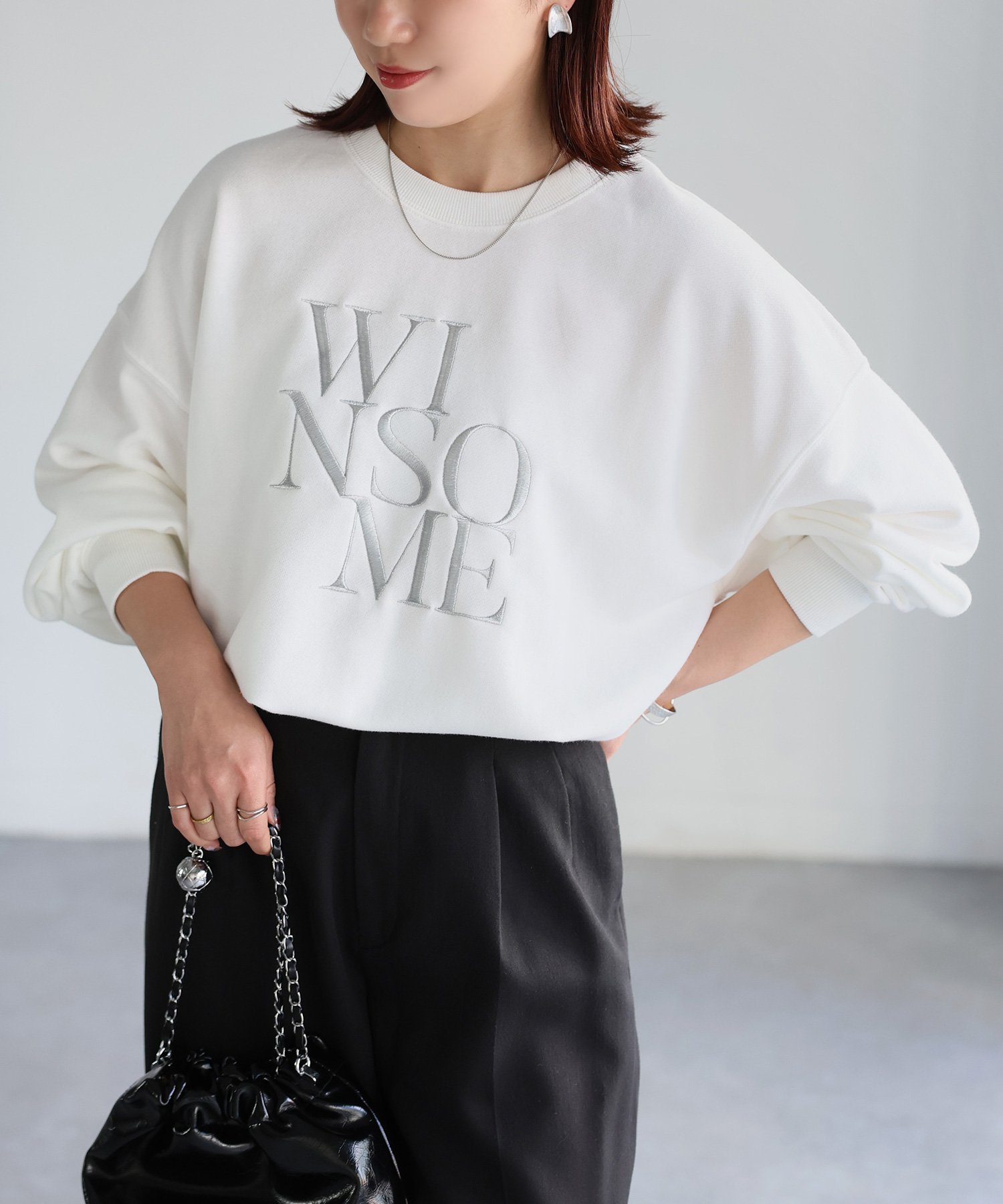 【SALE/55%OFF】Riberry WINSOME刺繍レタリングロゴスウェット リベリー トップス スウェット・トレーナー ホワイト ネイビー グレー ブラック