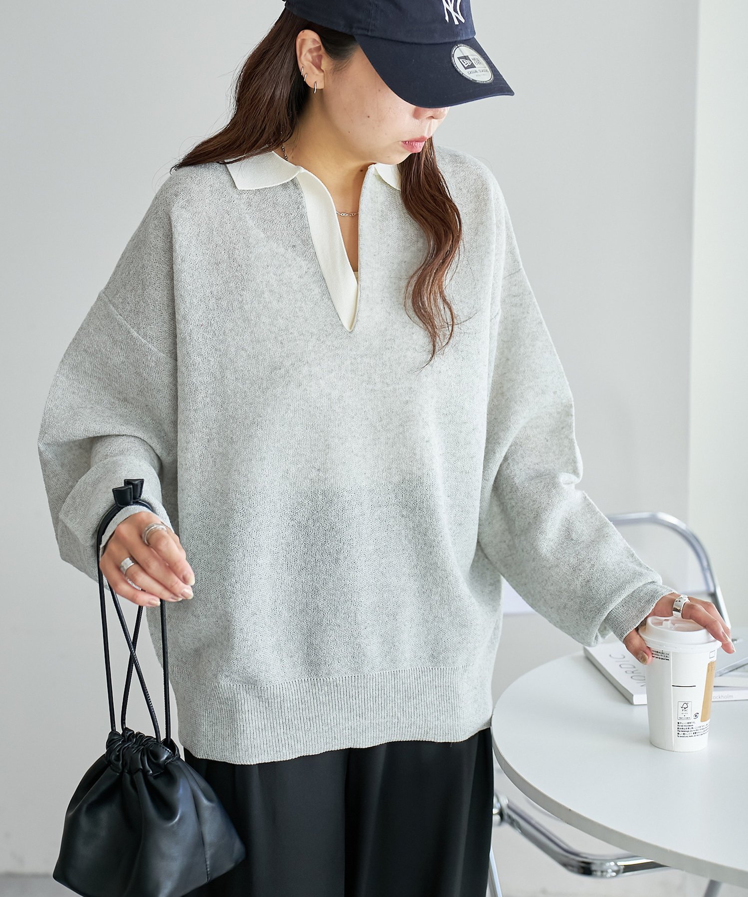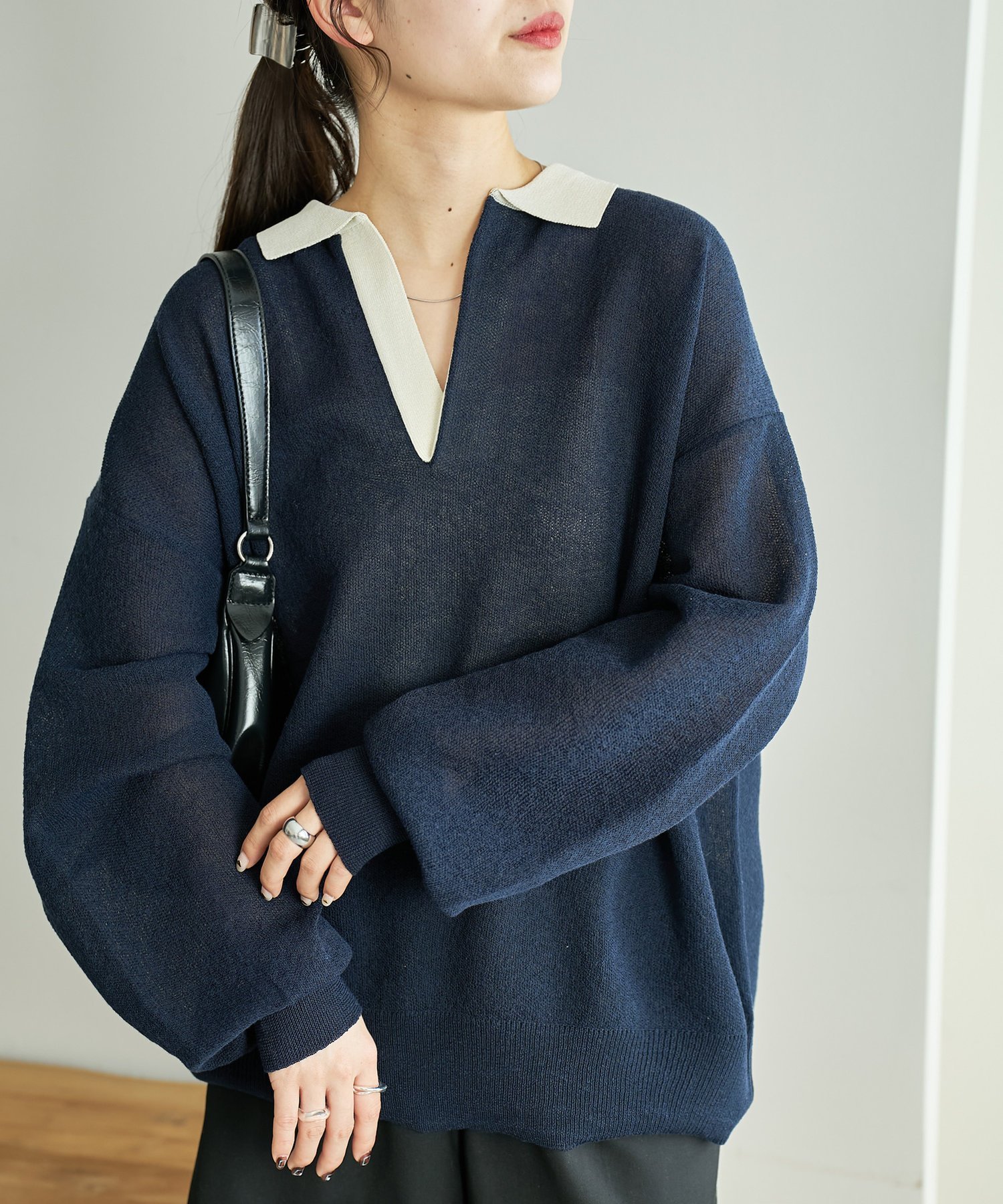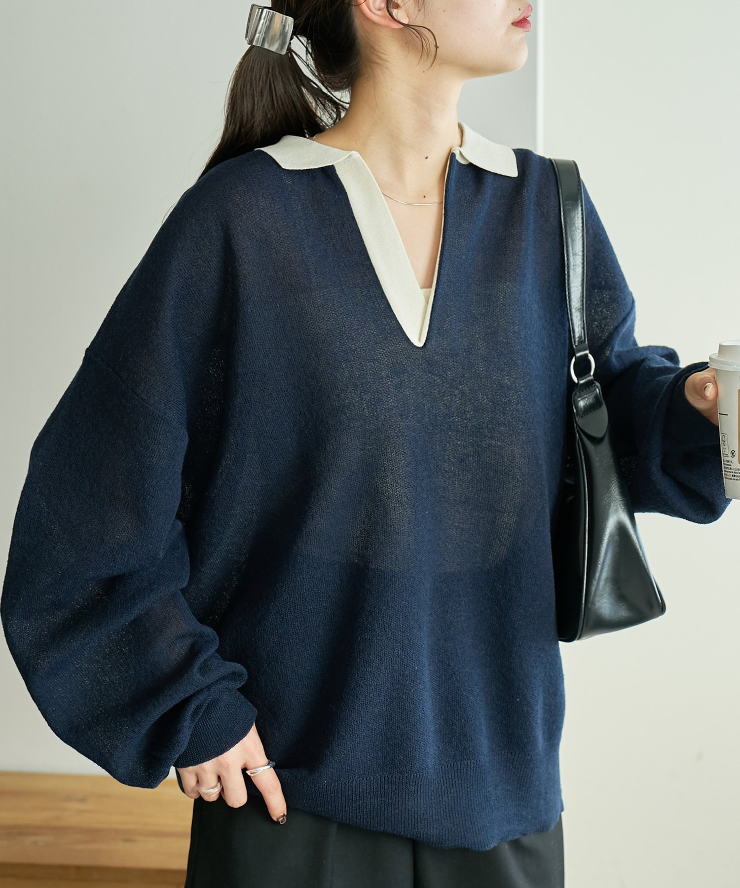 Discoat 【SS先行予約】リネンタッチスキッパーニット《ユニセックス》 ディスコート トップス ニット ネイビー グレー【送料無料】