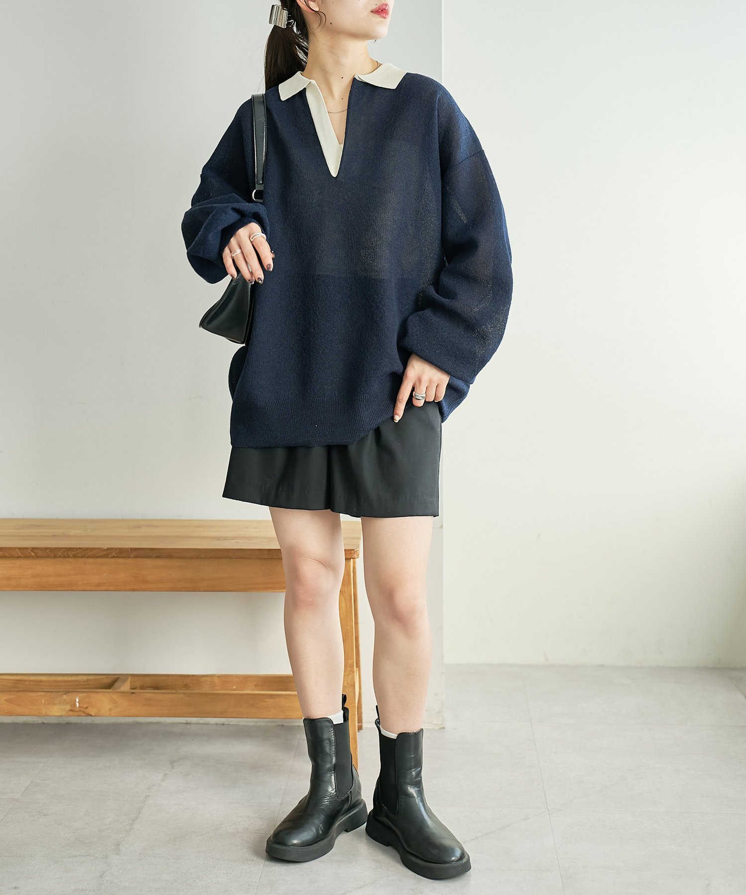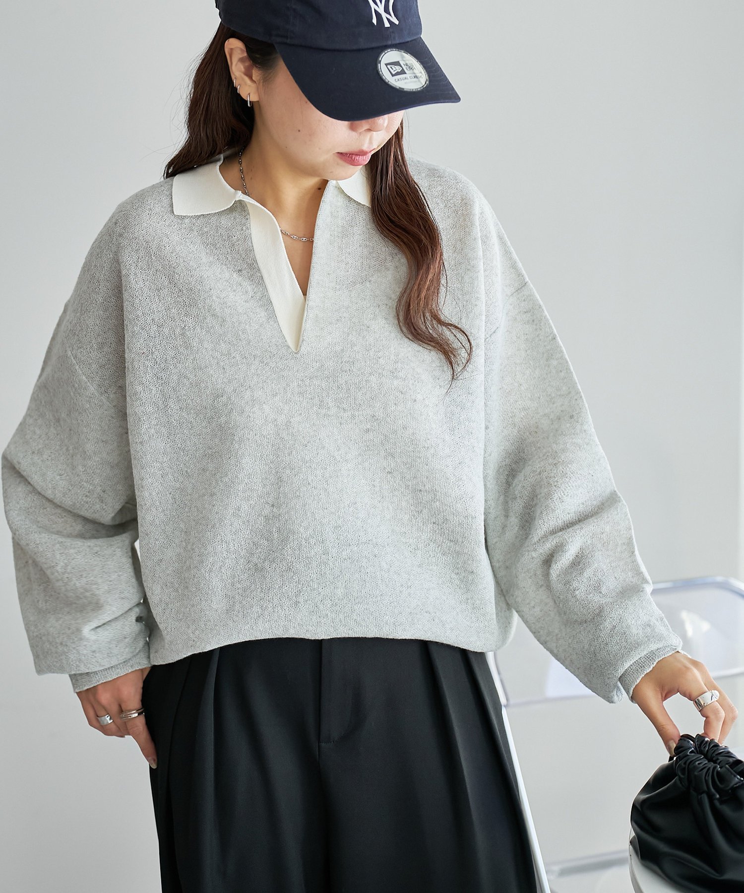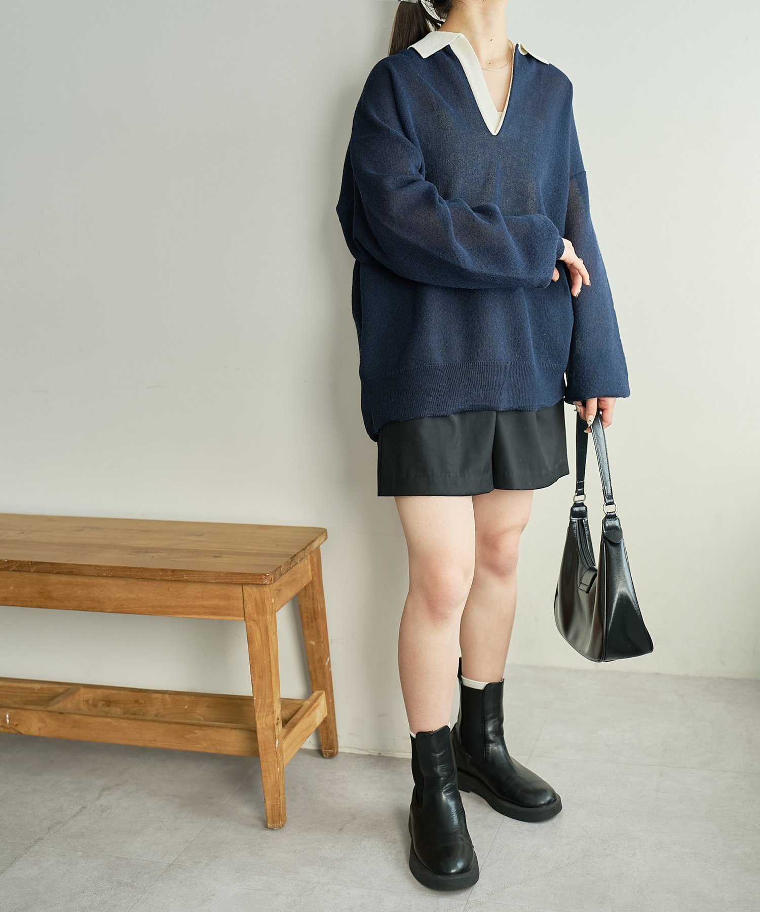 Discoat 【SS先行予約】リネンタッチスキッパーニット《ユニセックス》 ディスコート トップス ニット ネイビー グレー【送料無料】