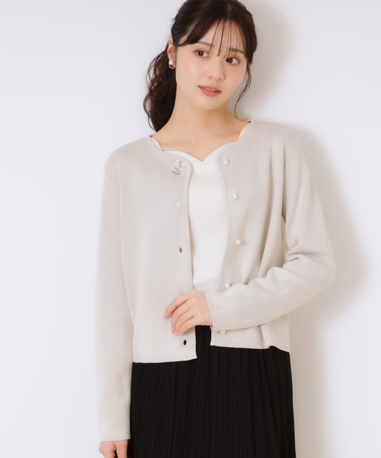 Couture Brooch 【一枚で着映えする】ビジュー釦ニットジャケット クチュールブローチ トップス カーディガン ブラック ブルー【送料無料】