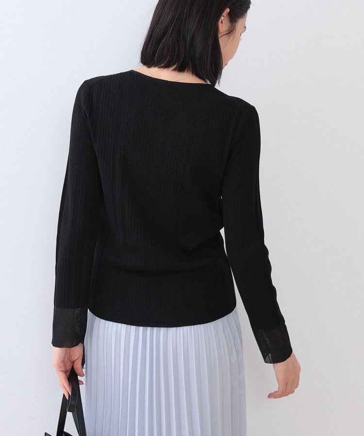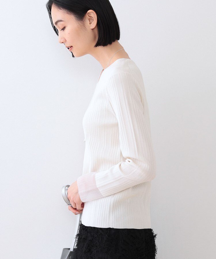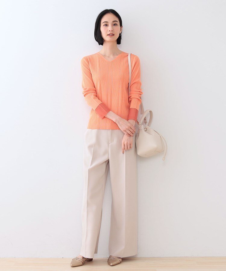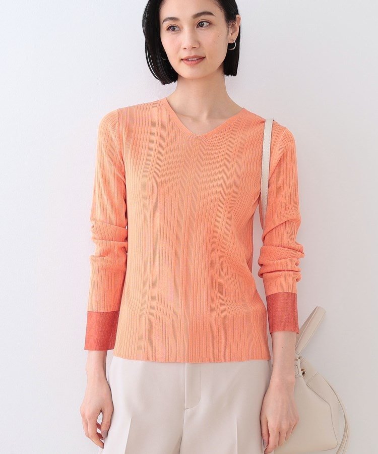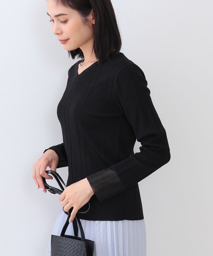INDIVI 【洗える/袖口シアー】コンパクトVネックニット インディヴィ トップス ニット ホワイト オレンジ グリーン ブラック【送料無料】