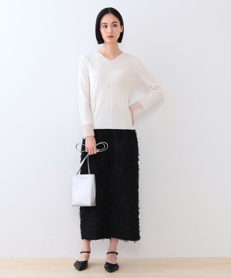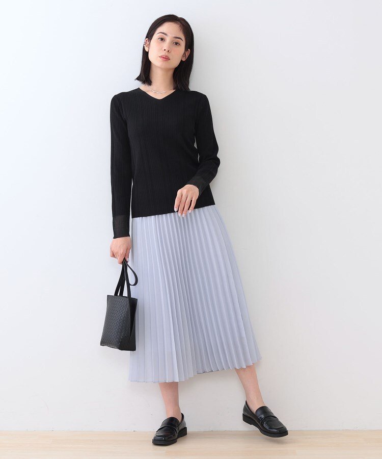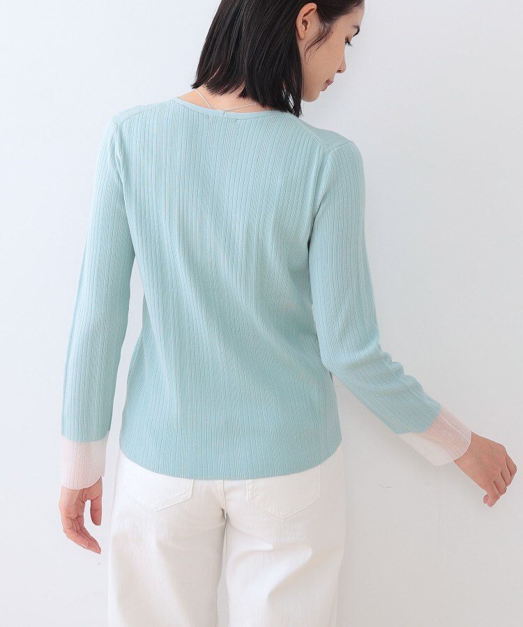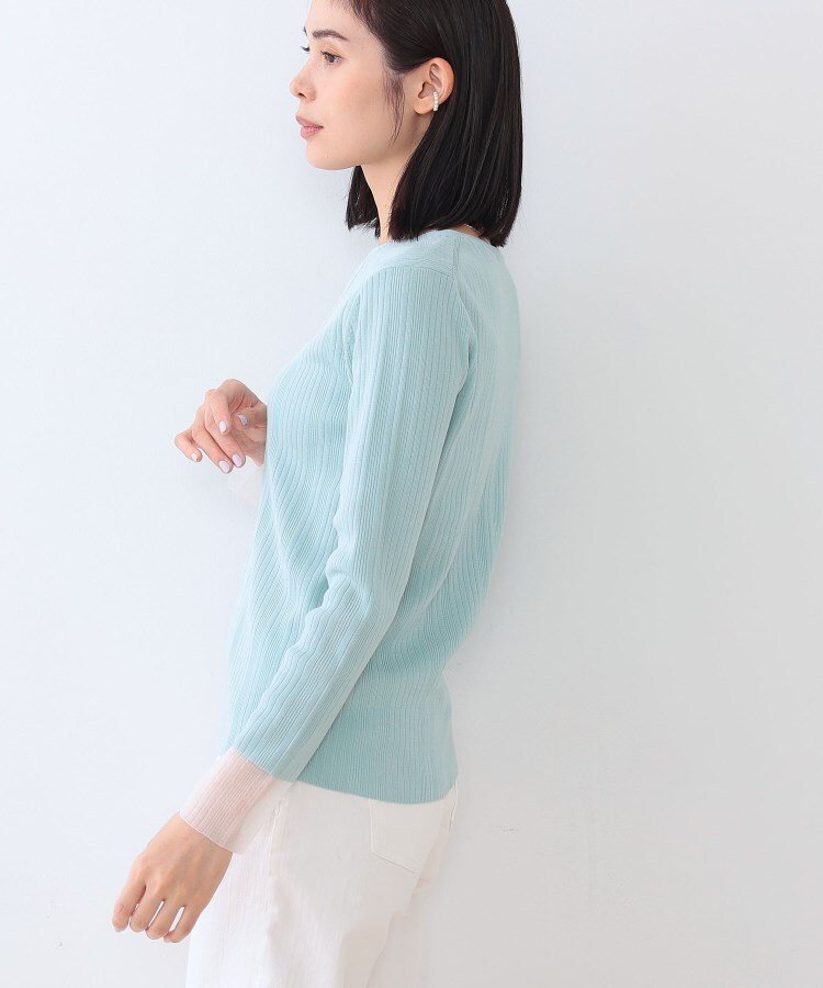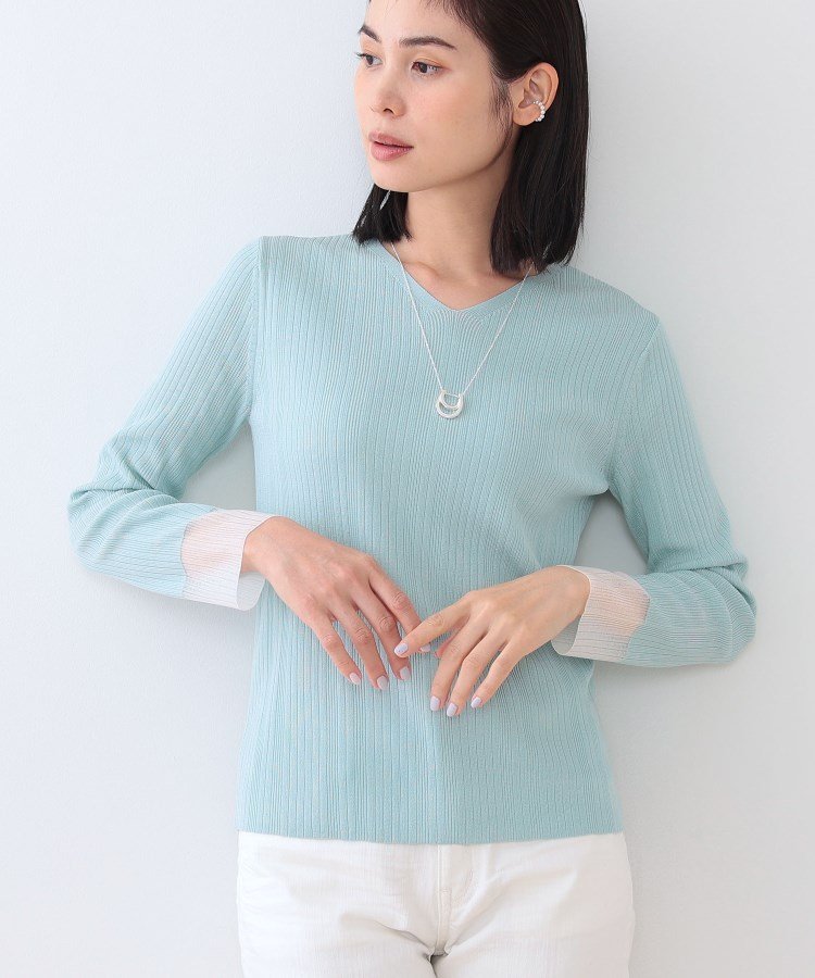 INDIVI 【洗える/袖口シアー】コンパクトVネックニット インディヴィ トップス ニット ホワイト オレンジ グリーン ブラック【送料無料】