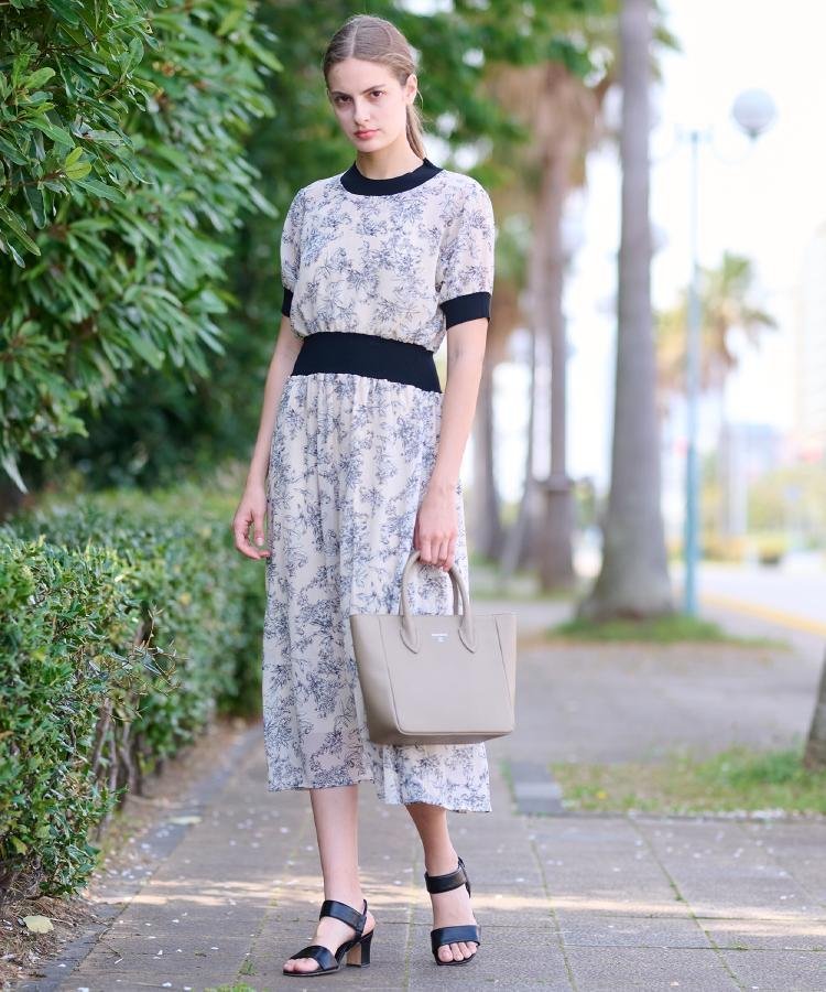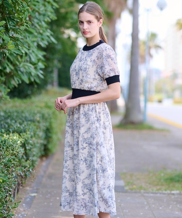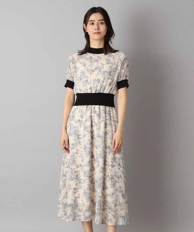DRESSTERIOR 【大人百花春号掲載 モデル美香さん着用】シアーフラワープリントハーフスリーブワンピース ドレステリア ワンピース・ドレス その他のワンピース・ドレス ブラック ベージュ【送料無料】
