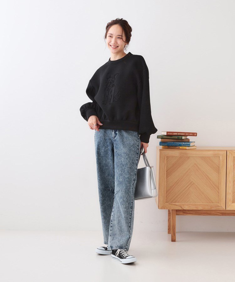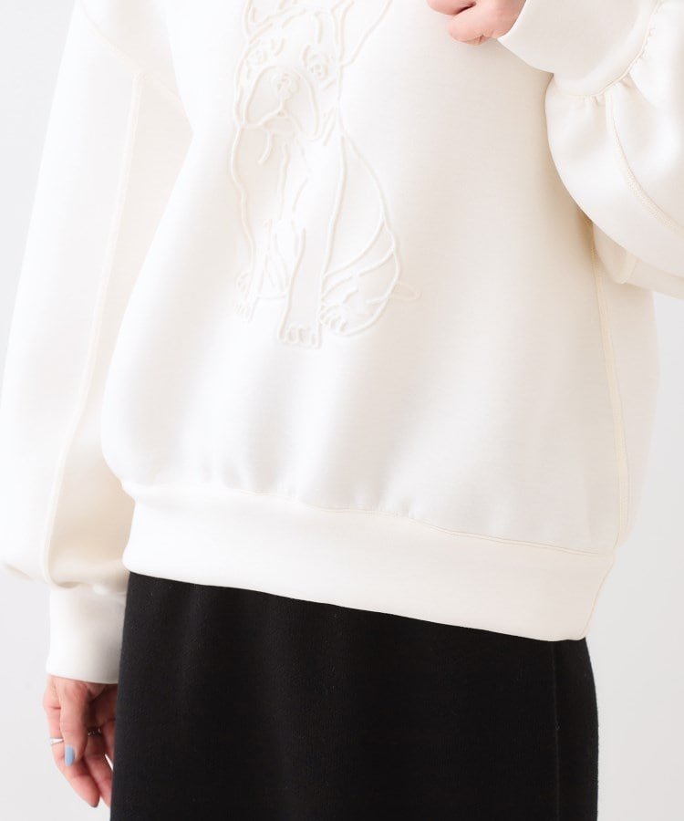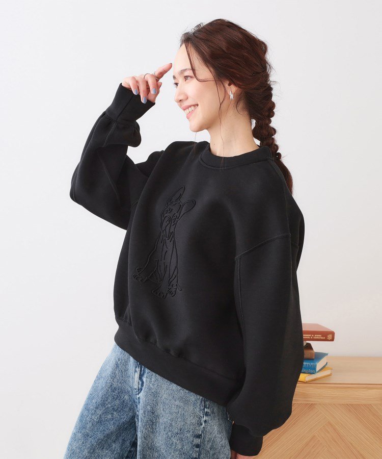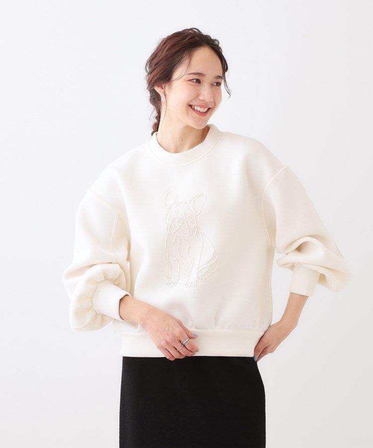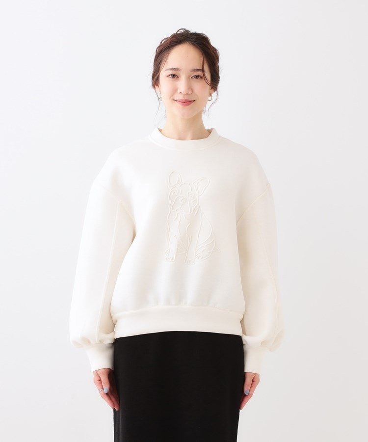 【SALE/30%OFF】SHOO・LA・RUE ドッグモチーフにこころ惹かれる やわらかスウェット シューラルー トップス スウェット・トレーナー ホワイト ブラック