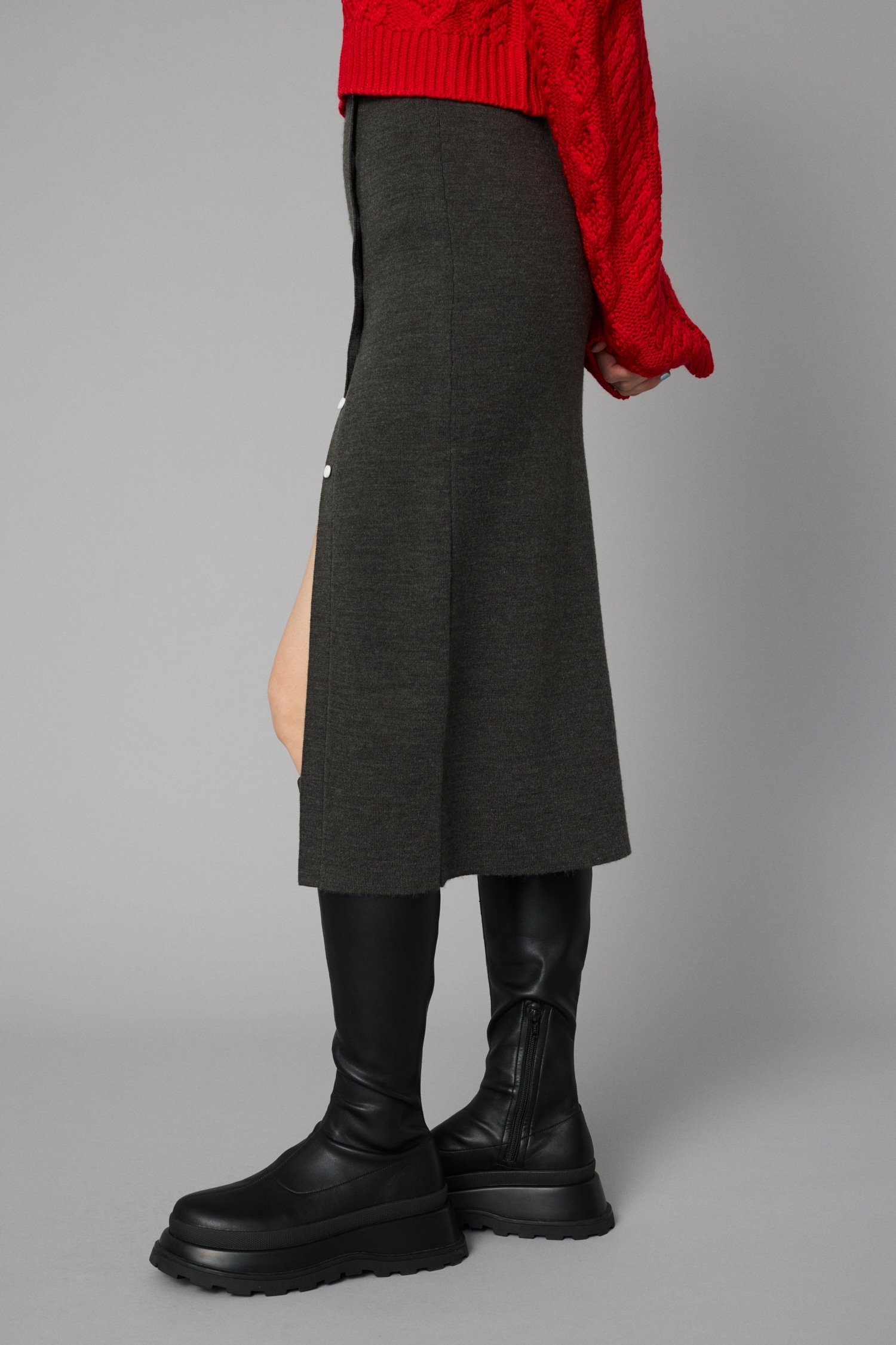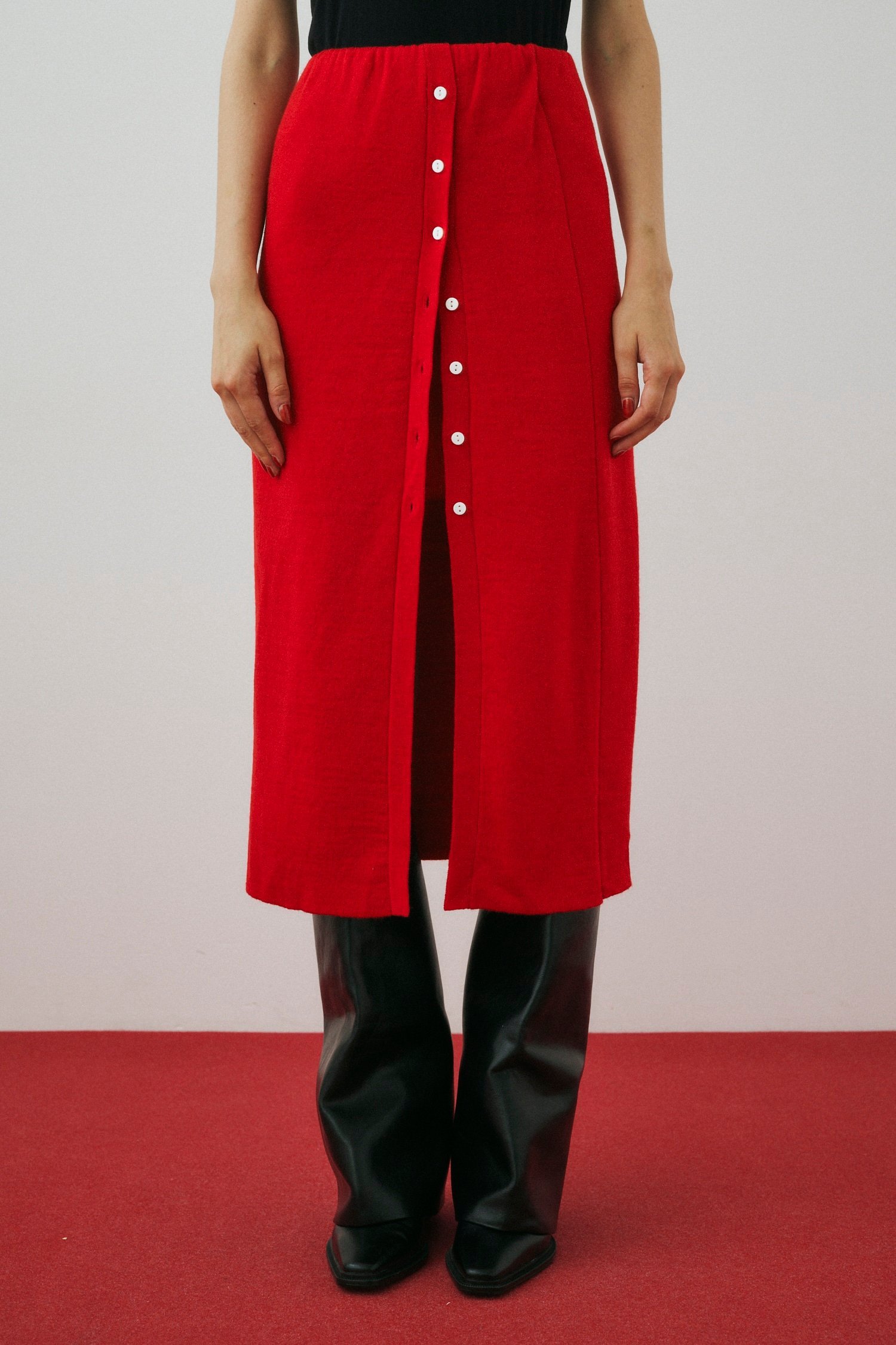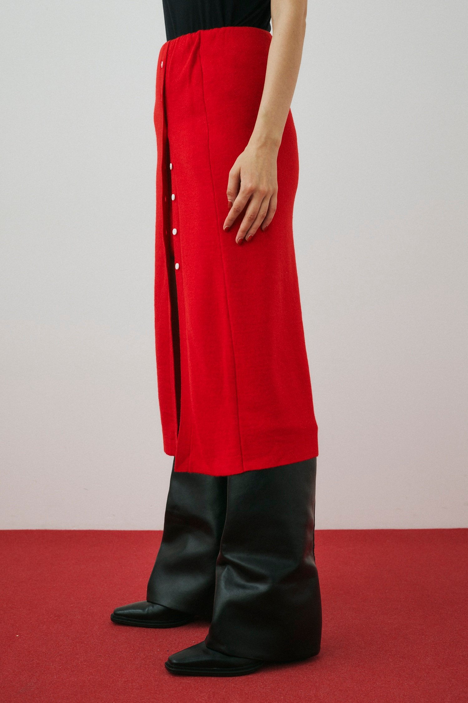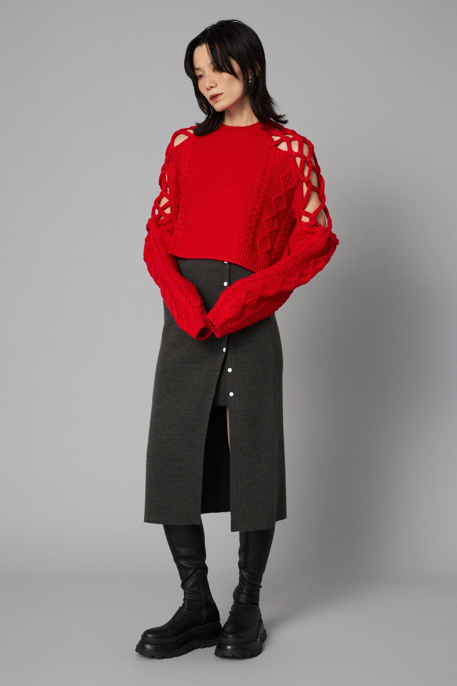 HeRIN.CYE Layered knit skirt ヘリンドットサイ スカート ロング・マキシスカート レッド ブラック グレー【送料無料】